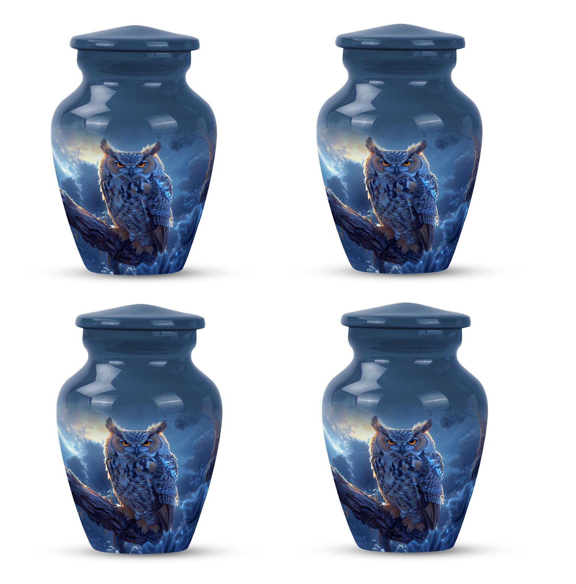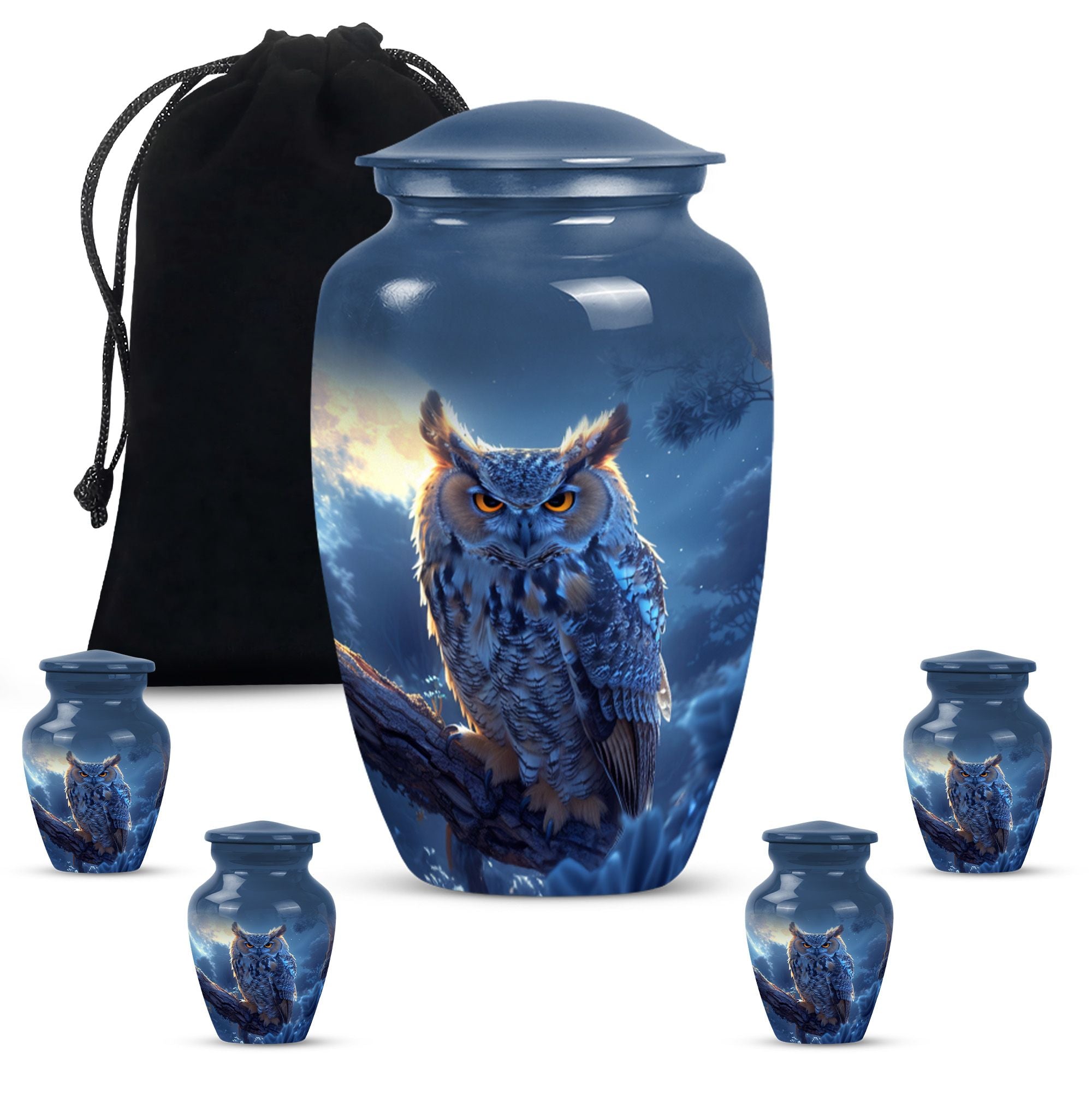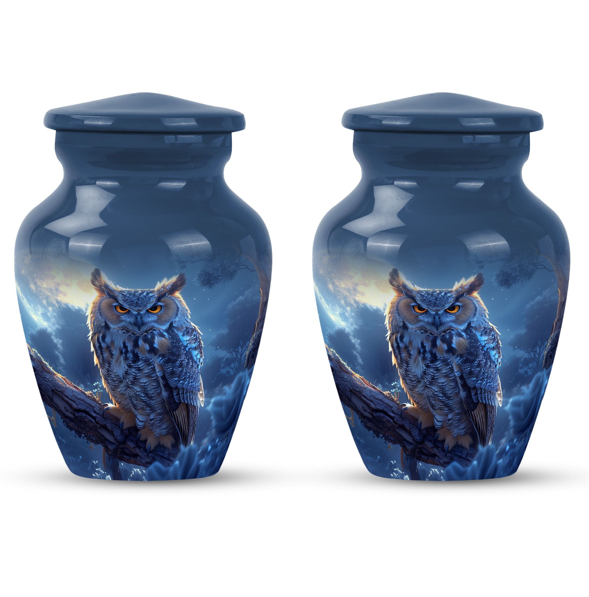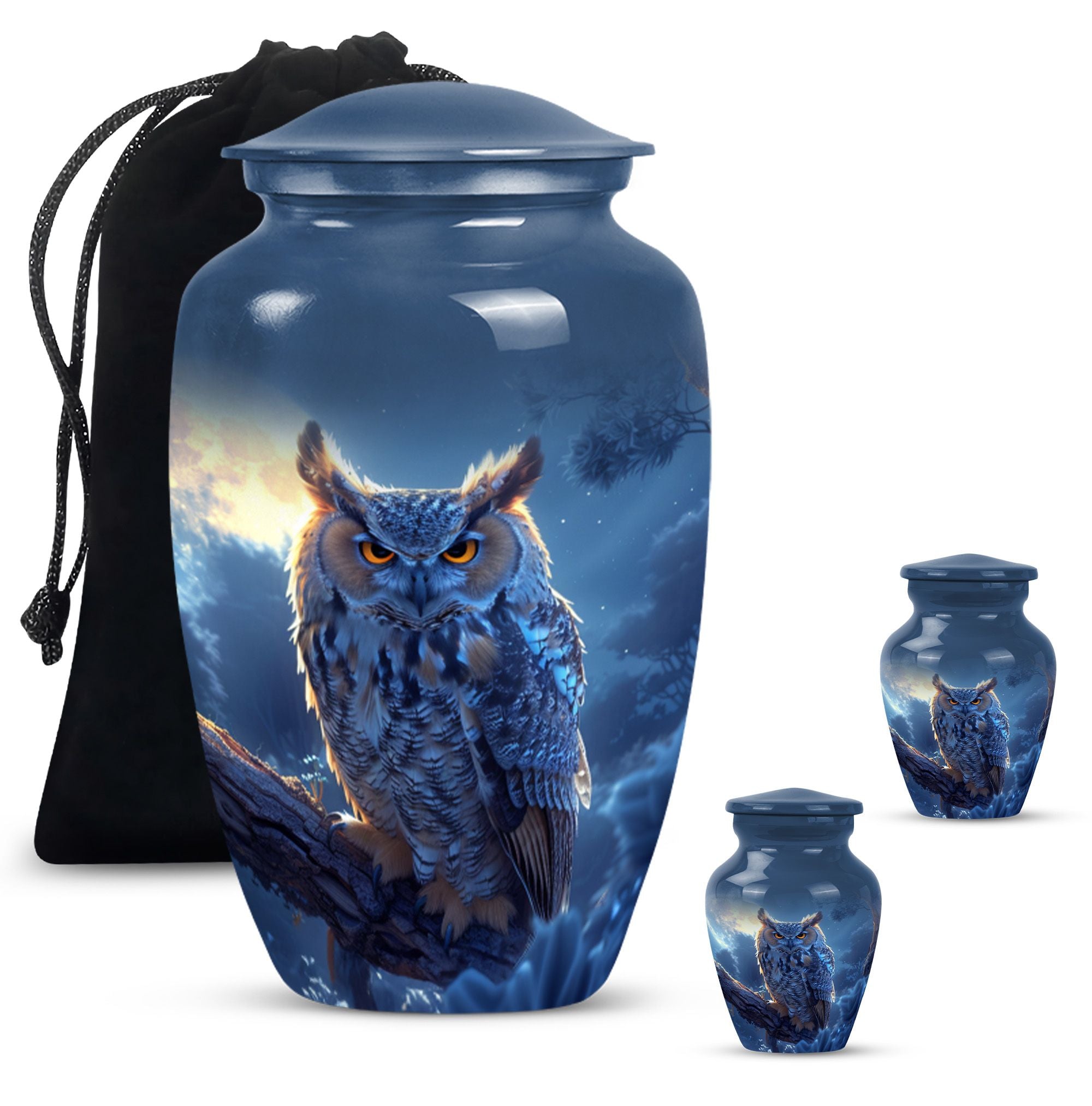 Exuding a tasteful blend of abstract theme and subtle intricacy, this 10-inch large owl urn seamlessly captures the essence of a lost loved one. Crafted with expert precision using premium aluminium, the urn weighs a solid 3.3 pounds and is characterized by exceptional durability. With a capacity to hold up to 200 cubic inches of ashes, it's perfectly suited for both adult male and female needs. What sets this funeral urn apart is the unique customization feature, allowing for personalized engraved names, giving a heartfelt nod to the departed's legacy. Should you need to transport, it comes complete with a velvet pouch guaranteeing safe containment of the ashes. This cremation urn is more than just a box; it's a poignant homely abode celebrating the memory of loved ones in the most respectful, dignified manner. Whether you seek an urn for mom, or looking for a burial urn infused with profound symbolism, this large owl urn stands as a testimony to undying remembrance.