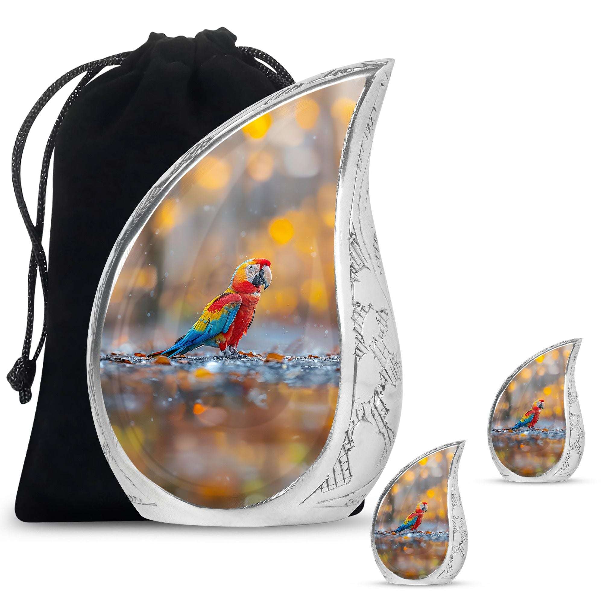 The Macaw Parrot Cremation Small Size Urn is a vibrant and meaningful way to honor a loved one’s life. Its colorful parrot motif symbolizes beauty, joy, and remembrance. Ideal as a female urn or a fancy urn for human ashes, it offers families a comforting and dignified resting place. Perfect for cremation memorial keepsakes, it preserves cherished memories with elegance and care.