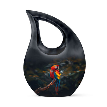 Honor the memory and life of your loved ones with our stunning Macaw Parrot Urn. Designed as a beautiful tribute, this cremation box is perfect for adult commemorations. Standing at 10 inches in height, the urn adds a subtle, comforting presence in your home or crematorium. Made from robust aluminum, the urn exhibits a remarkable durability and comes with a weight of 3.3 pounds. It has a large capacity, consisting of 200 cubic inches, ideal for preserving significant amounts of ashes. The cross drop theme adds a touch of reverence, bringing a serene, peaceful atmosphere. We also offer the option to personalize it with engraved names. Furthermore, this package includes a velvet pouch for containment of ashes, providing an elegant solution for storage. Augment your memorial ceremonies with our Macaw Parrot large urns, a symbol of eternal love and respect. In search for 'memorial urns,' 'unique urns for dad,' or 'large urns for ashes?' Look no further. Our Macaw Parrot Urn is the ideal solution, combining functionality and sentimentality in perfect harmony.