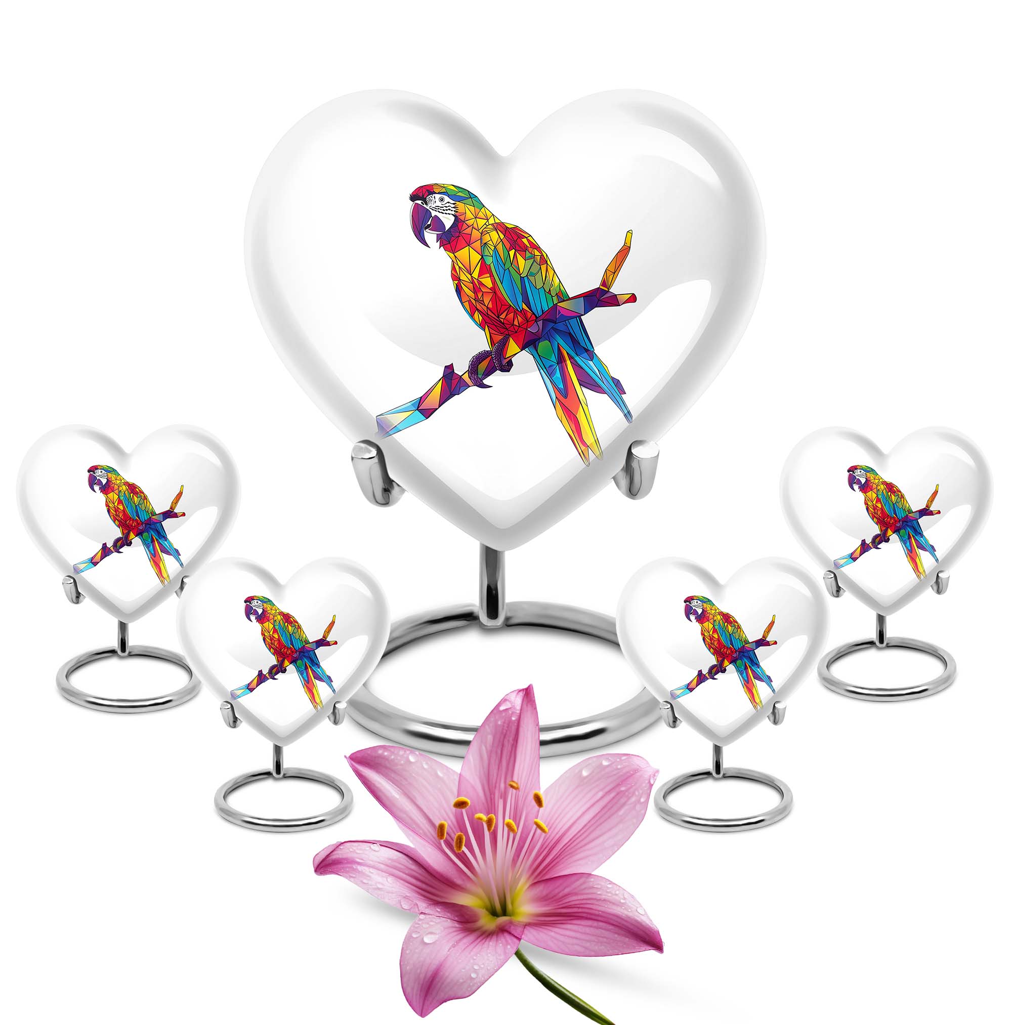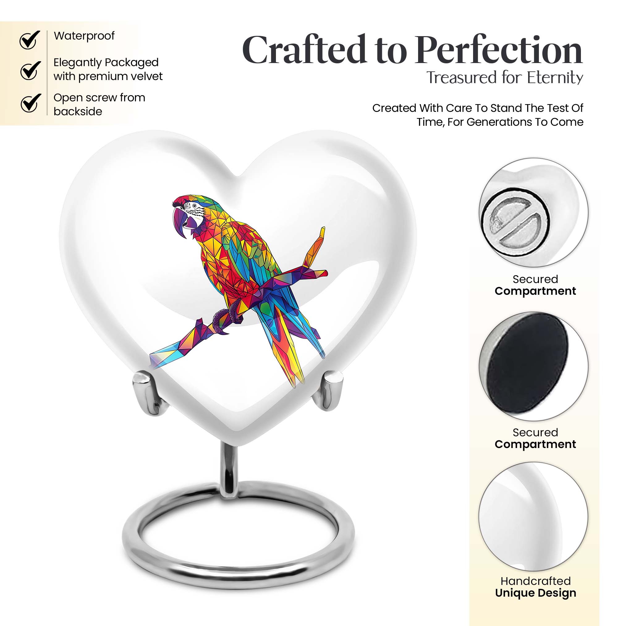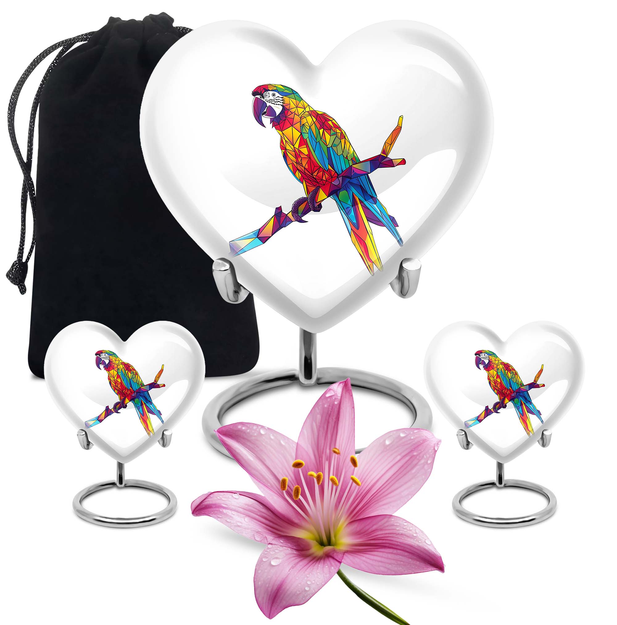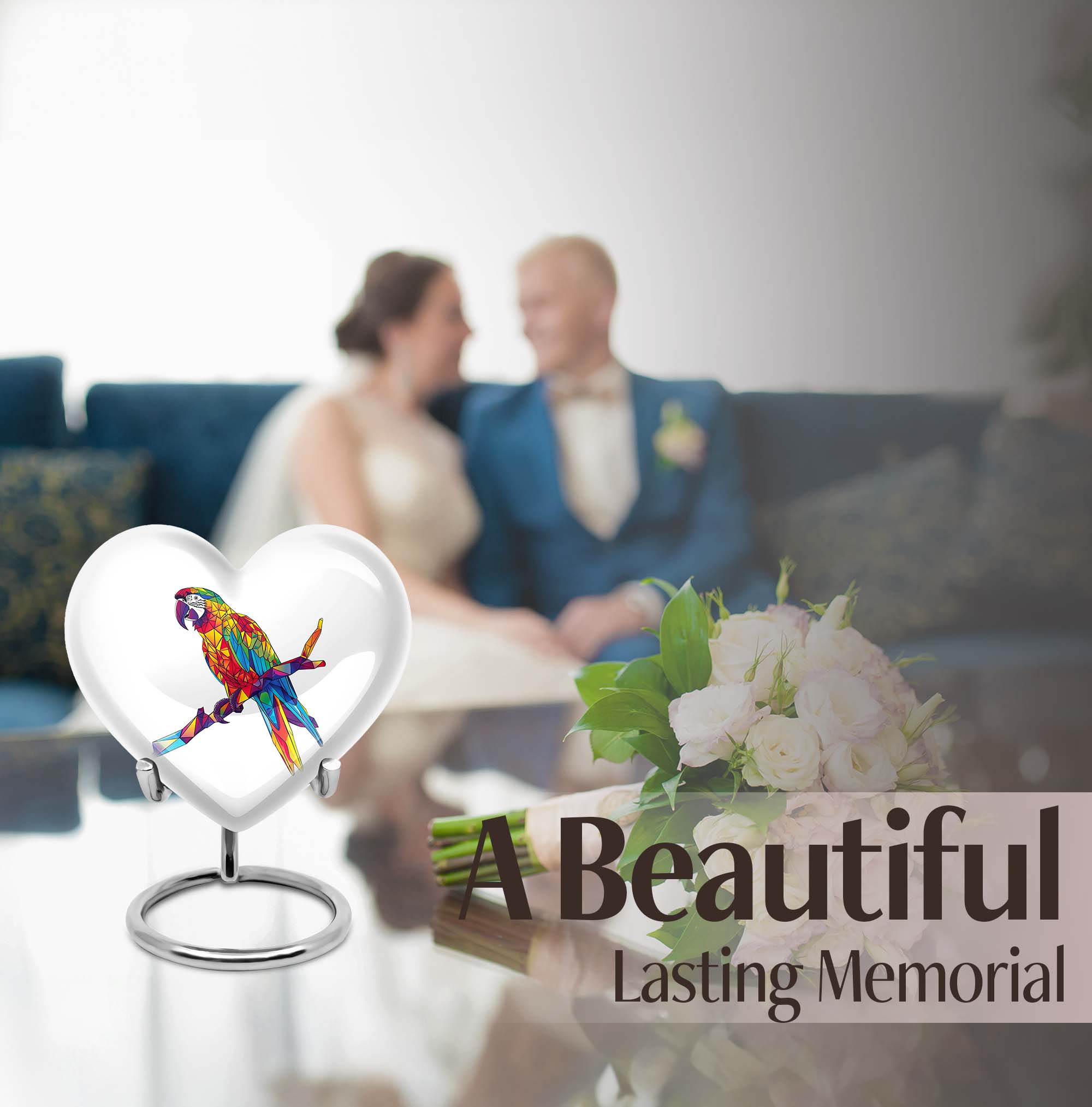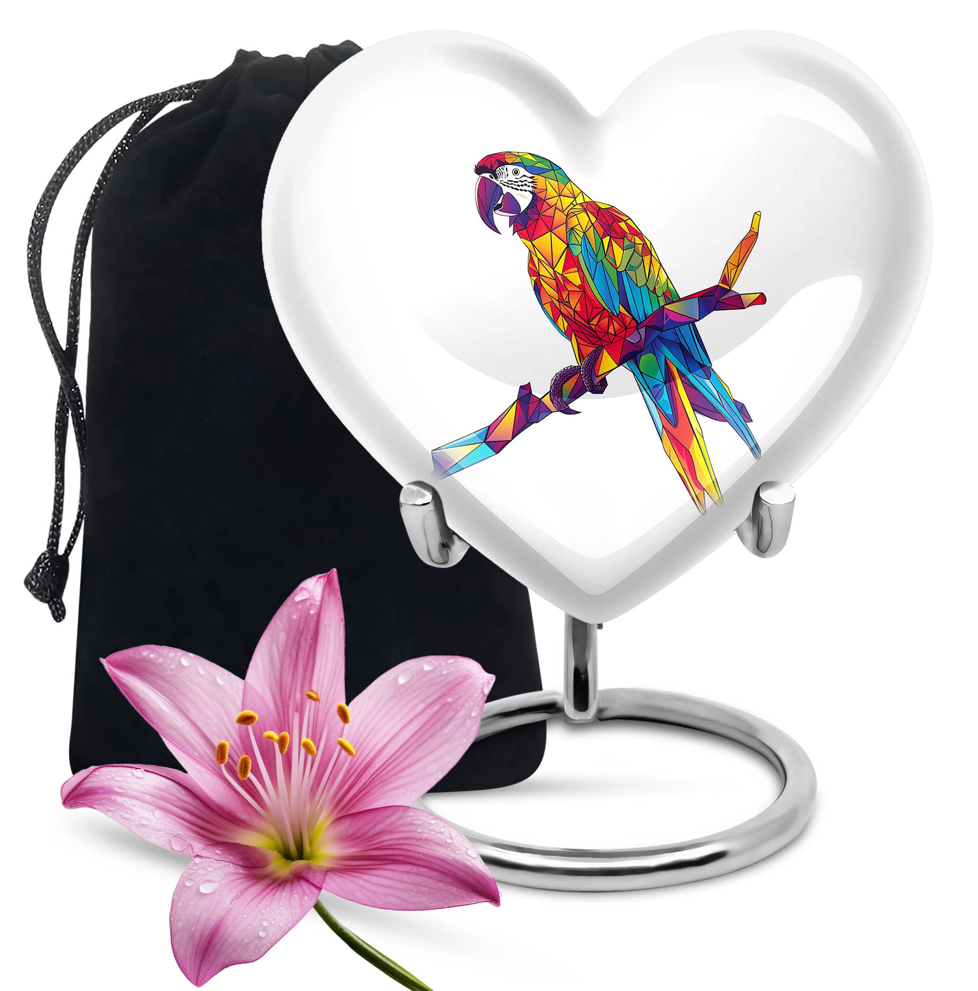 Celebrate the memory of a loved one with our sophisticated and dignified Macaw Parrot Urn. Perfectly sized at a height of 10 inches, this substantial yet delicately weighted at 3.3 pounds, cremation funeral urn carefully stores ashes in a respectful and honorable way. Rendered in a durable aluminium material, the Wolf Howling theme expresses reverence and admiration. The urn comes with a soft velvet pouch for the safekeeping and transportation of the ashes. This cremation urn has a sizable capacity of 200 cubic inches, making it suitable as a large urn for ashes. Complement the urn with your personal touch, as it can be customized with engraved names, adding a personalized token of remembrance. Our Macaw Parrot Urn is a fitting tribute for remembering and honouring a cherished individual. It's more than just a funeral decorative urn, it is a symbol of lasting love and remembrance.