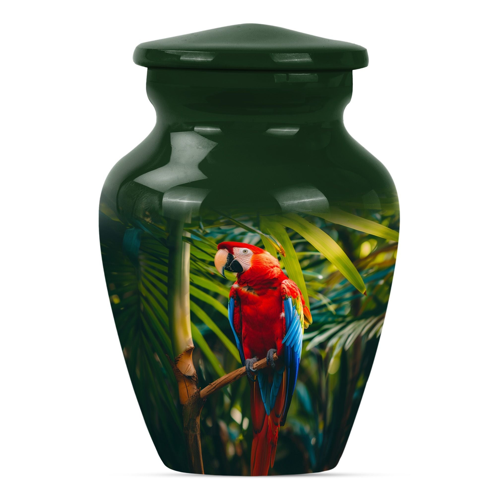 Render your loved one the ultimate homage with our unique 'Macaw Parrot Urn', an exquisitely crafted burial urn for cremation ashes. Made with superior aluminium material, this elegantly designed cremation urn is apt for preserving the precious ashes within its 200 cubic inches capacity. It weighs a modest 3.3 pounds and stands tall at 10 inches, reflecting a sense of dignity and solemnity. Our urn is themed with a 'Wolf Howling' aspect, invoking an air of spirituality and tranquility. Further, it furnishes a 'velvet pouch' for considerate containment of the ashes. As an additional feature, we offer customization options. You have the unique privilege to personalize this burial urn with engraved names, lending it a profound intimacy and significance. This Large Urn is especially apt for adult human ashes. Note that this Macaw Parrot Urn is a must-have among cremation urns for burial. Invest in this remembrance piece and let the legacy of your loved one glow in the sanctity it deserves.
