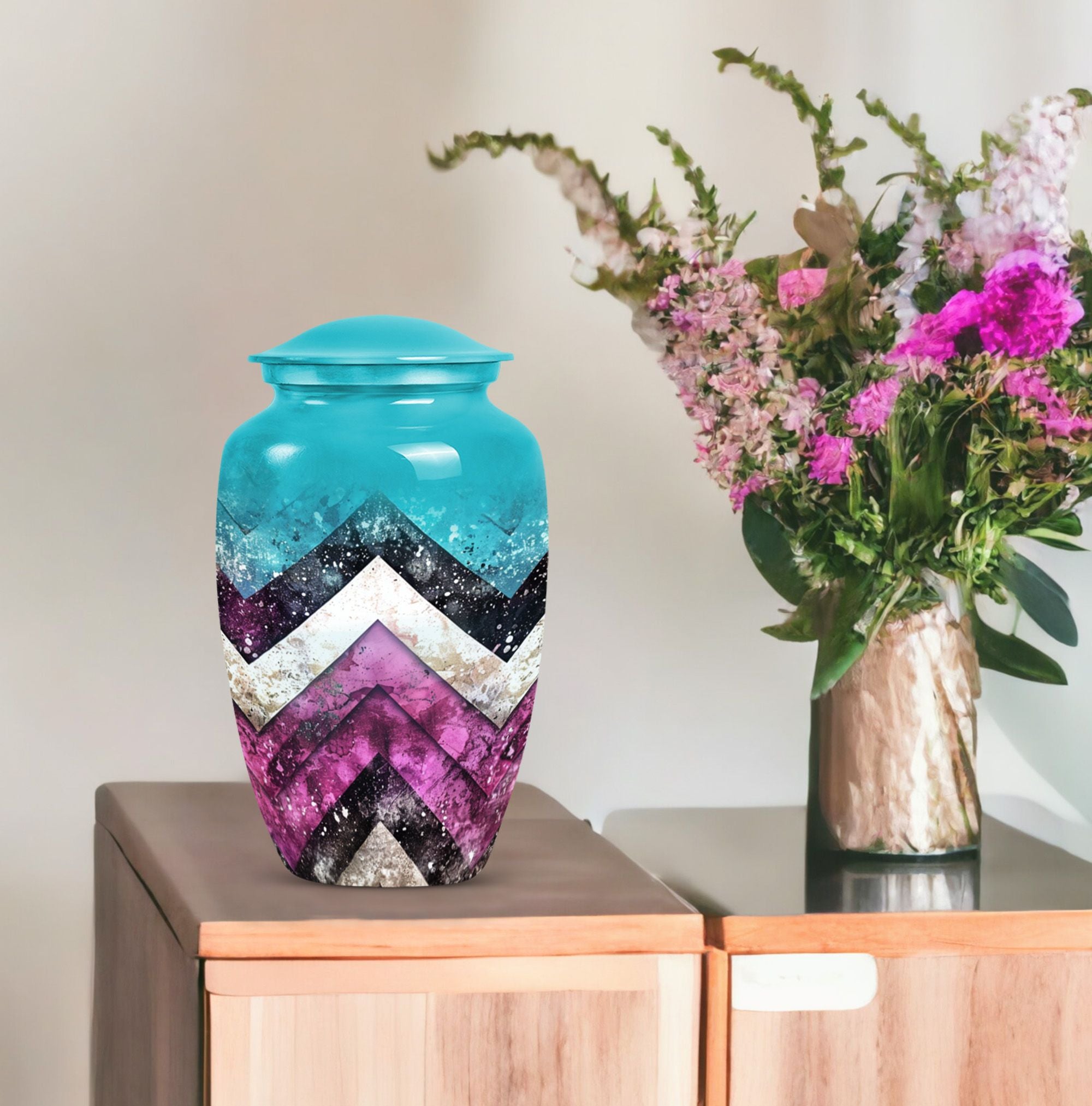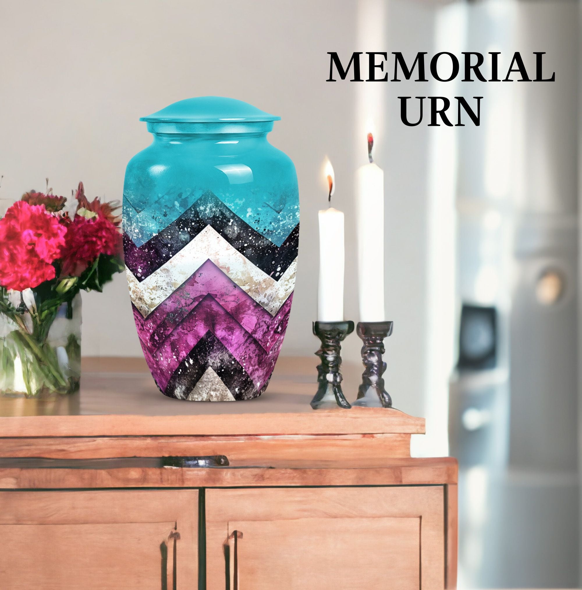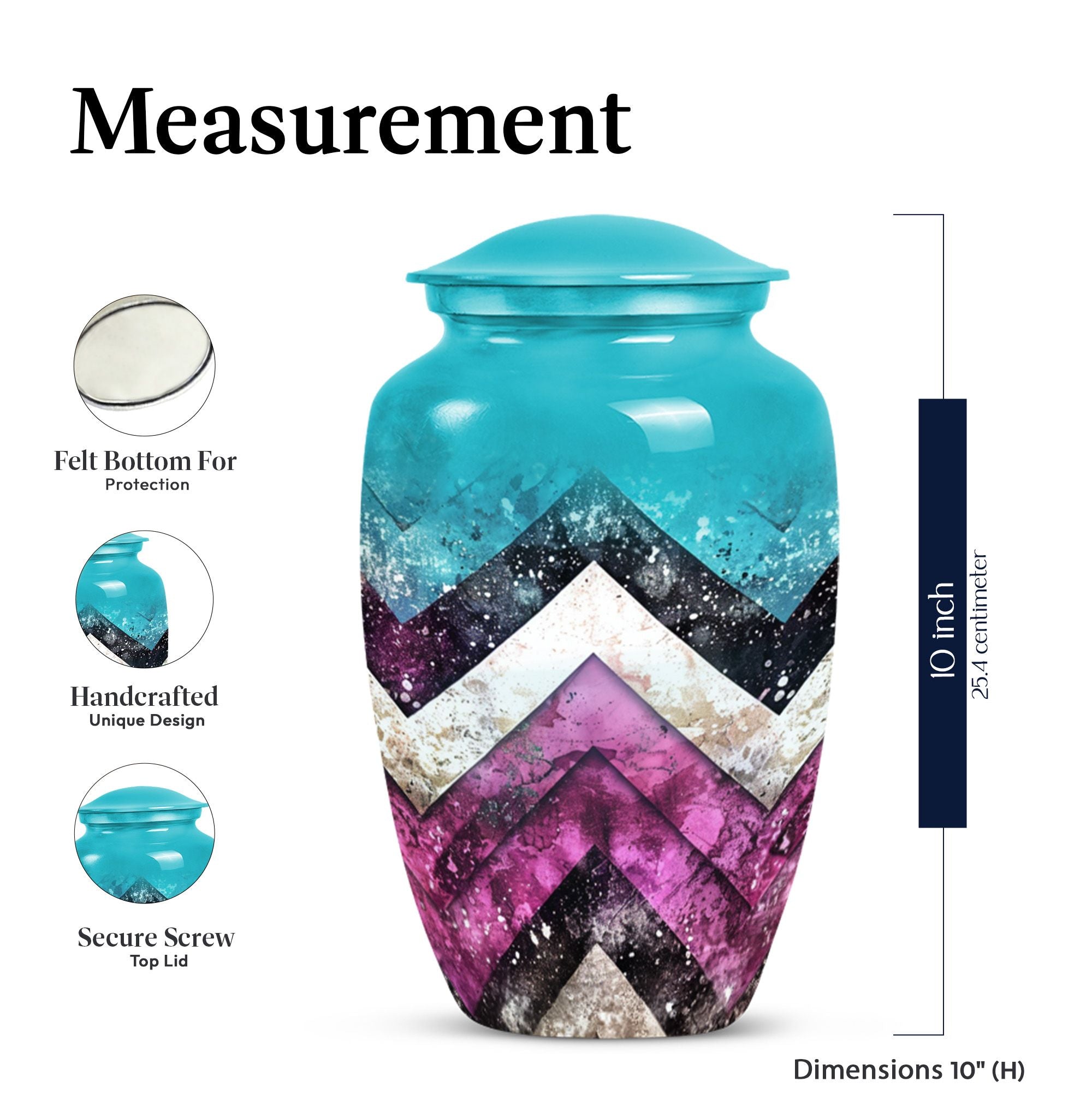 For those seeking a dignified way to commemorate their loved ones, our Pattern Urn serves as a fitting tribute. As a large urn, its dimensions are imposing and elegant, standing proud at a formidable 10 inches in height. The abstract theme adds an artistic touch to this ceremonial item, making it more than just an urn but a work of art. Its sturdiness is underscored by its substantial weight of 3.3 pounds, ensuring it holds its place as a steadfast reminder of the cherished memories of your loved one. The material basis for this urn is solid aluminium, guaranteeing durability over time. Capable of containing 200 cubic inches of ashes comfortably, this burial urn offers sufficient space for adult ashes. The convenience of the package content is an additional benefit for buyers–a velvet pouch is included for the containment of ashes. Personalized engravings can be carved into the urn, allowing for a finishing touch that speaks to the heart. For anyone seeking memorial urns or cremation urns for a parent, this Pattern Urn is a delicate combination of style, resilience, and sentiment. Indeed, dives deep into the realms of adult burial elements in its conceptualization.