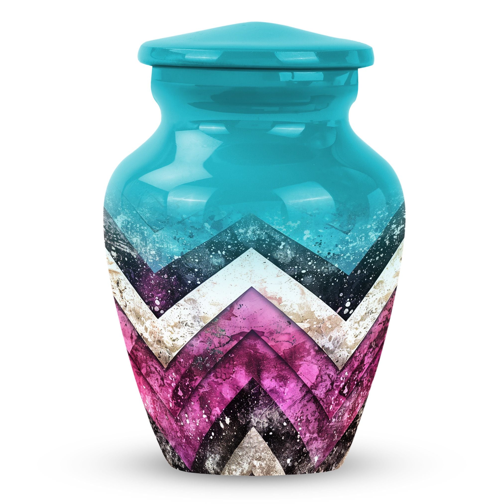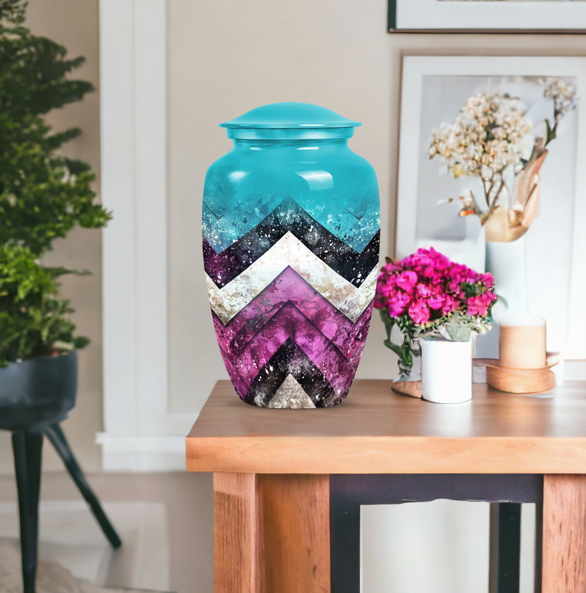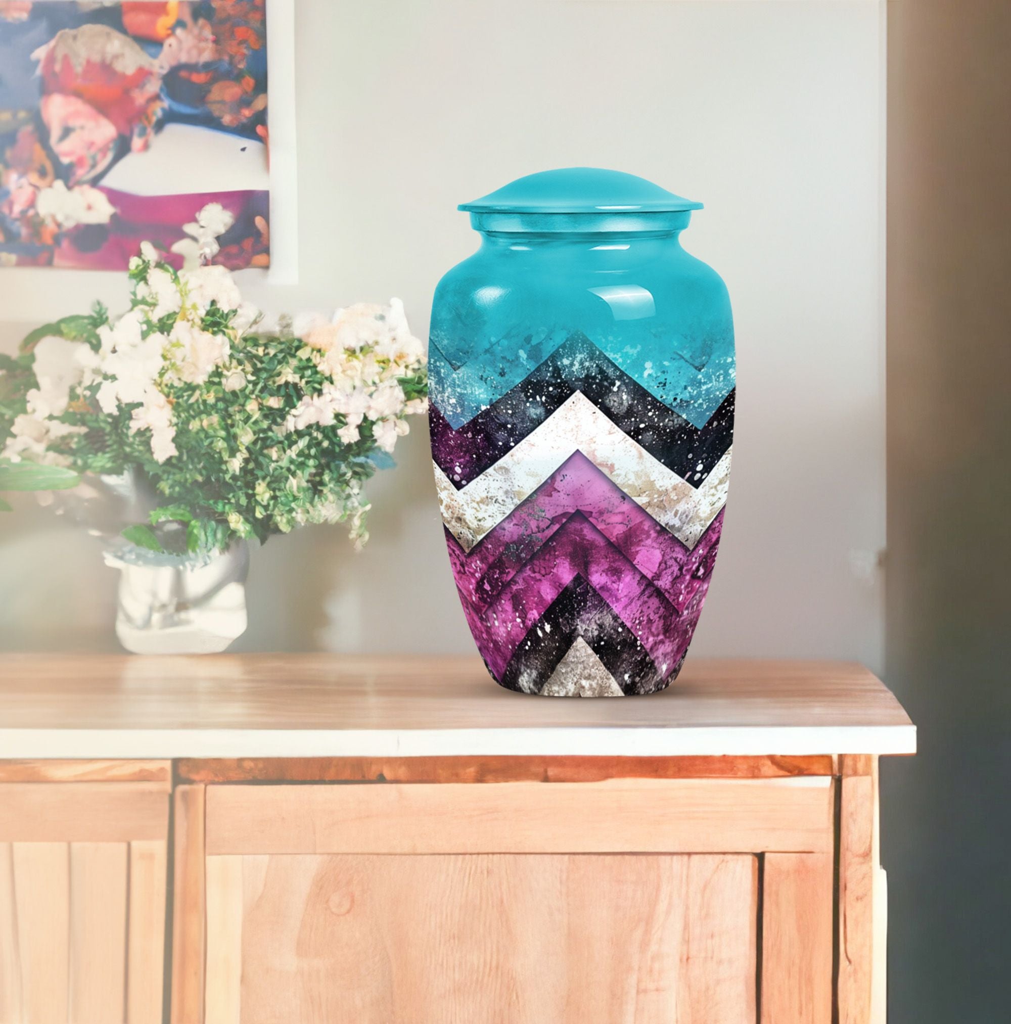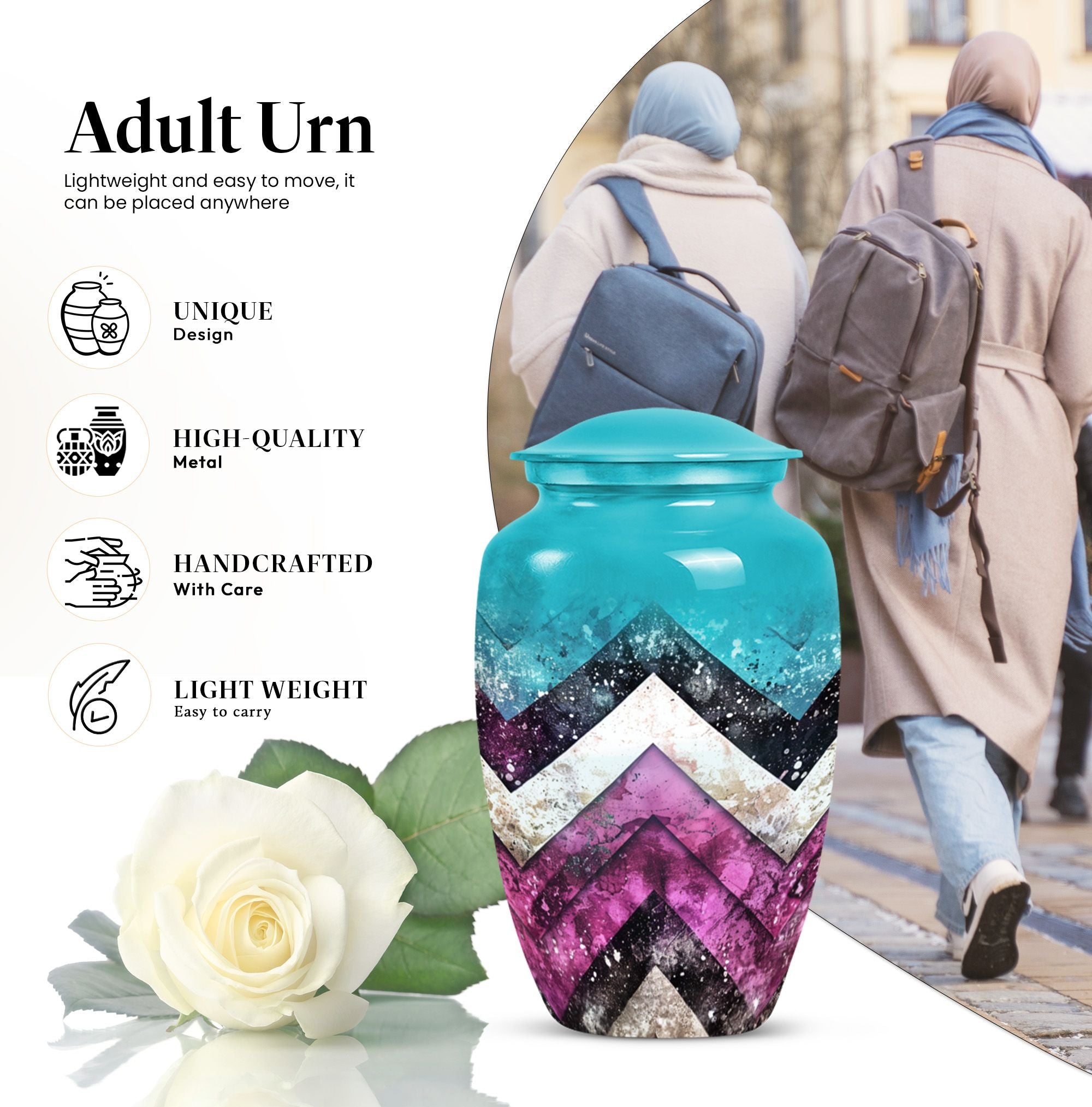 For those seeking a dignified way to commemorate their loved ones, our Pattern Urn serves as a fitting tribute. As a large urn, its dimensions are imposing and elegant, standing proud at a formidable 10 inches in height. The abstract theme adds an artistic touch to this ceremonial item, making it more than just an urn but a work of art. Its sturdiness is underscored by its substantial weight of 3.3 pounds, ensuring it holds its place as a steadfast reminder of the cherished memories of your loved one. The material basis for this urn is solid aluminium, guaranteeing durability over time. Capable of containing 200 cubic inches of ashes comfortably, this burial urn offers sufficient space for adult ashes. The convenience of the package content is an additional benefit for buyers–a velvet pouch is included for the containment of ashes. Personalized engravings can be carved into the urn, allowing for a finishing touch that speaks to the heart. For anyone seeking memorial urns or cremation urns for a parent, this Pattern Urn is a delicate combination of style, resilience, and sentiment. Indeed, dives deep into the realms of adult burial elements in its conceptualization.