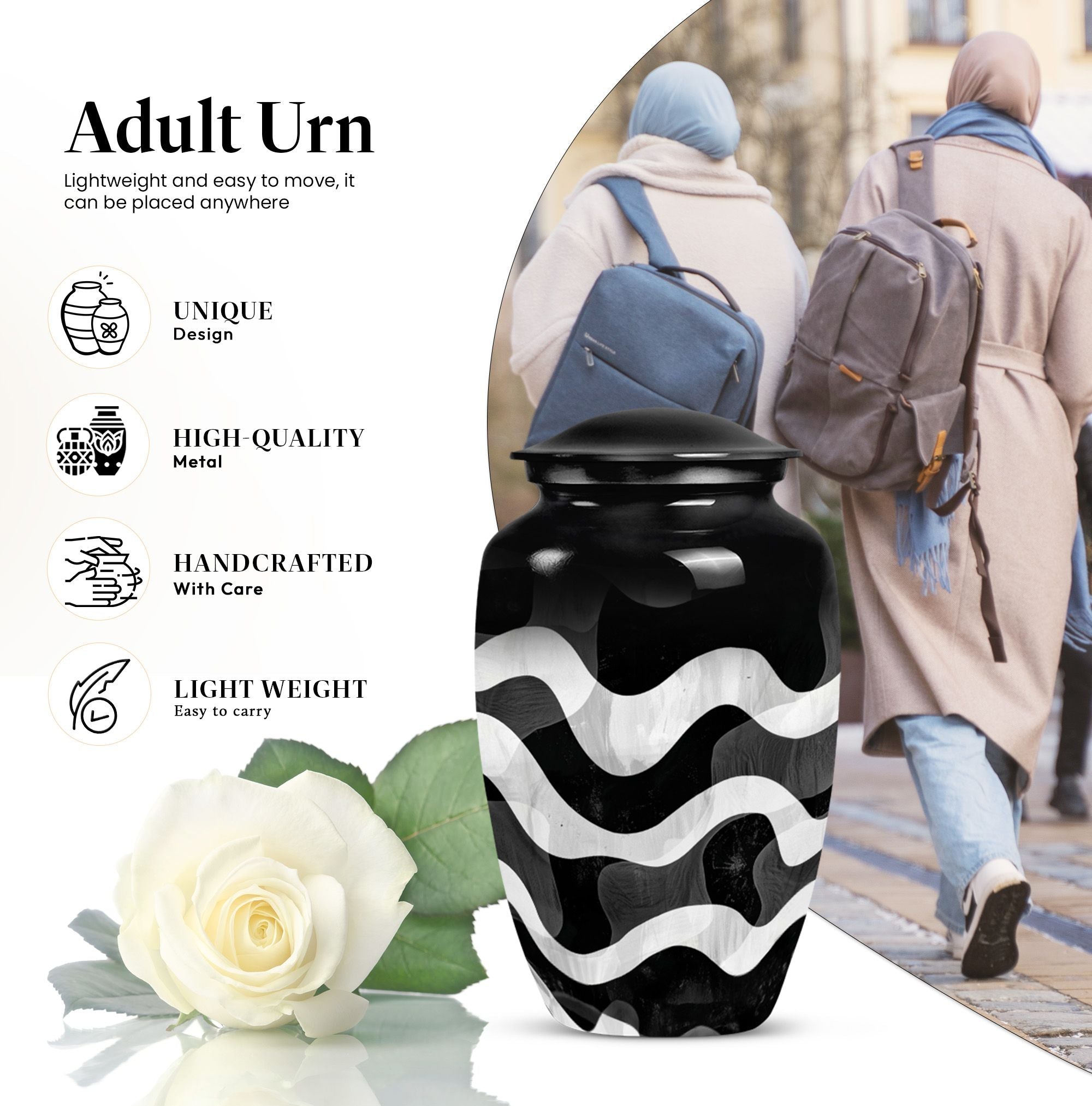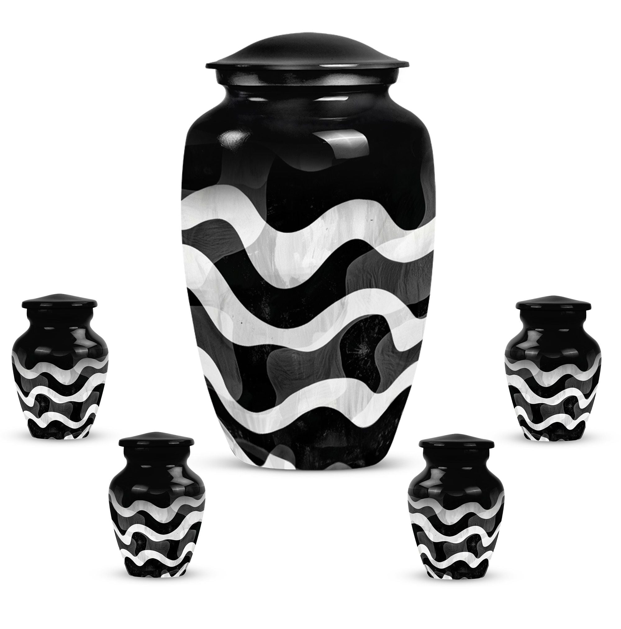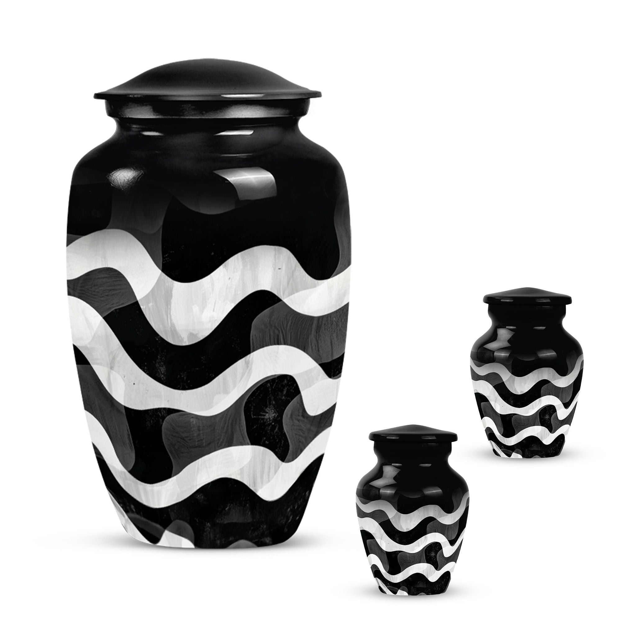 For those wishing to honor their loved ones in a heartfelt and distinctive way, look no further than this uniquely patterned urn. This large urn, with its 10-inch stature, combines artistry and functionality. It is constructed from top-notch aluminium, ensuring long-lasting durability and preserving the sanctity of contents. Furthermore, it is robust, weighing a solid 3.3 pounds. The urn's capacity of 200 cubic inches makes it an ideal choice for preserving human ashes. The package also includes an elegant velvet pouch for containment of ashes, adding a touch of sophistication and tactility. Personalizing the urn is possible as it comes with an option for engraving names, leaving a lasting memory of your cherished one. Search phrases such as 'funeral urn for mom', 'urn ash ashes adult', 'burial urns', and 'cremation urn adult' may lead you to this remarkable creation. This abstract-themed classic urn is an outstanding choice for a memorial ceremony supplies, channeling the profound of respects, love, and memories.