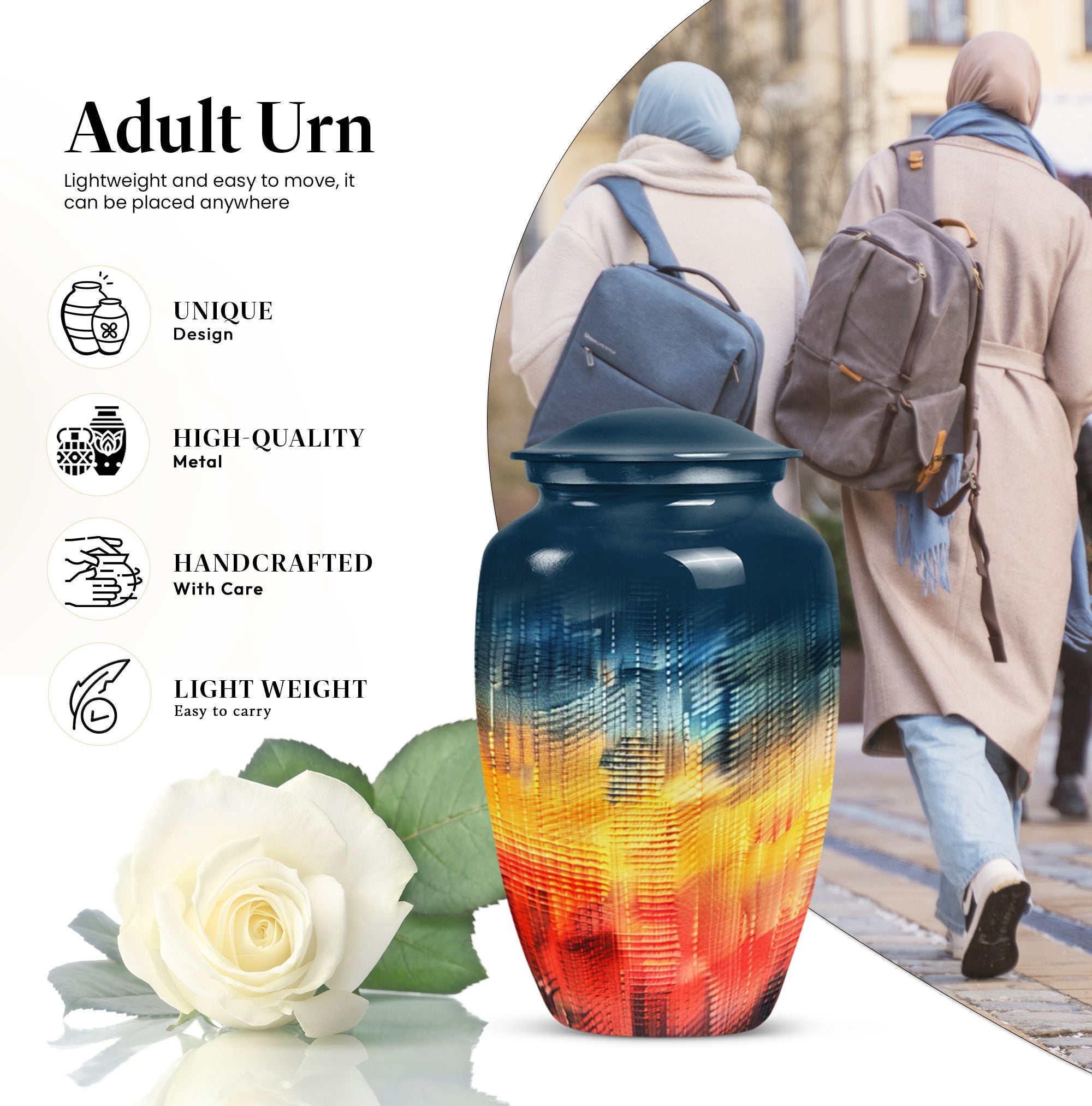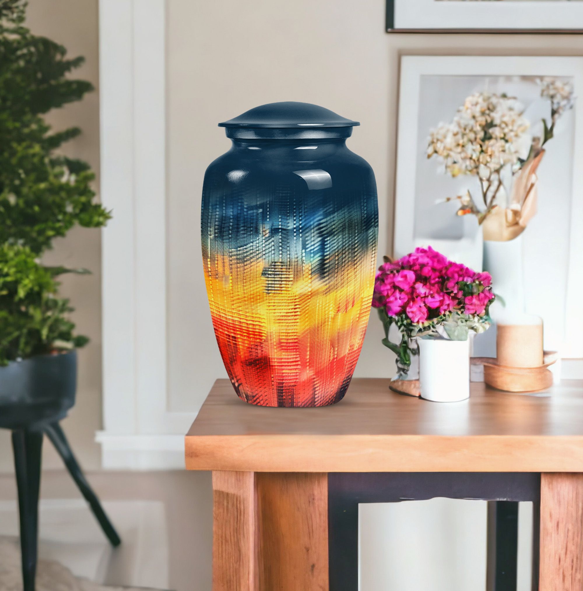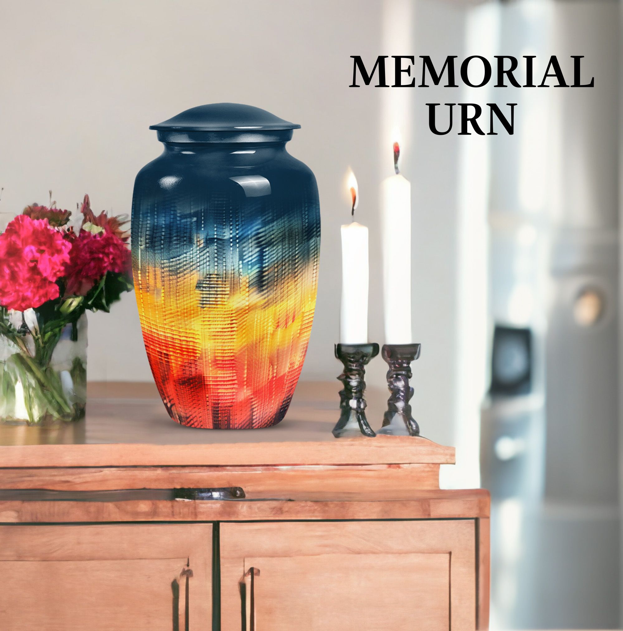 Empower your remembrance with our 10-Inch Pattern Memorial Medium Urn, an artistic and serene tribute to your loved ones. Our Abstract-themed urn, which is a type of large urn, is constructed of durable aluminium with a weight of 3.3 pounds and has a capacity of 200 cubic inches. Importantly, it provides a special customization option, where you can personalize it with engraved names, adding an impactful and meaningful touch to your memorial. To ensure a dignified and secure containment, each urn comes with a velvet pouch. This is not just a burial urn for human ashes, it's an epitome of a cherished memory that weaves a lifelong bond between you and your departed dad or dear one. Browse our collection for memorial medium urns for ashes, including cremation urns for burial, and find a unique tribute that mirrors the personality of your loved one.