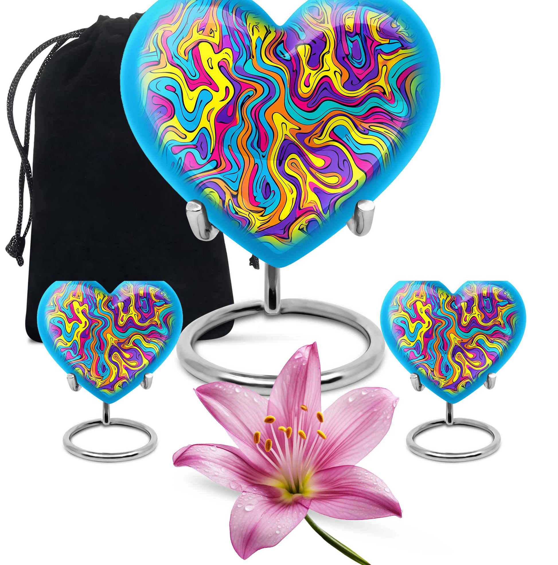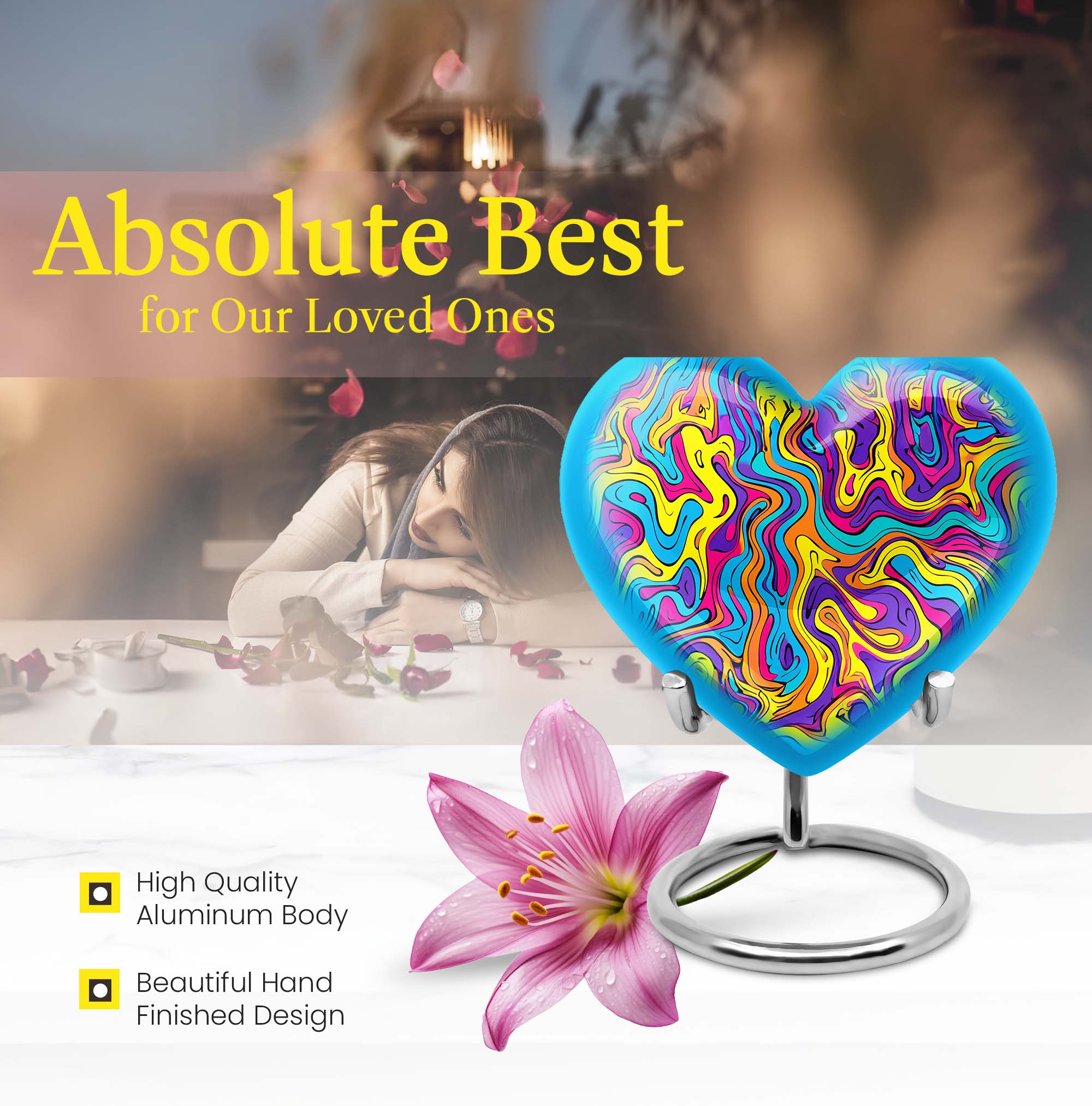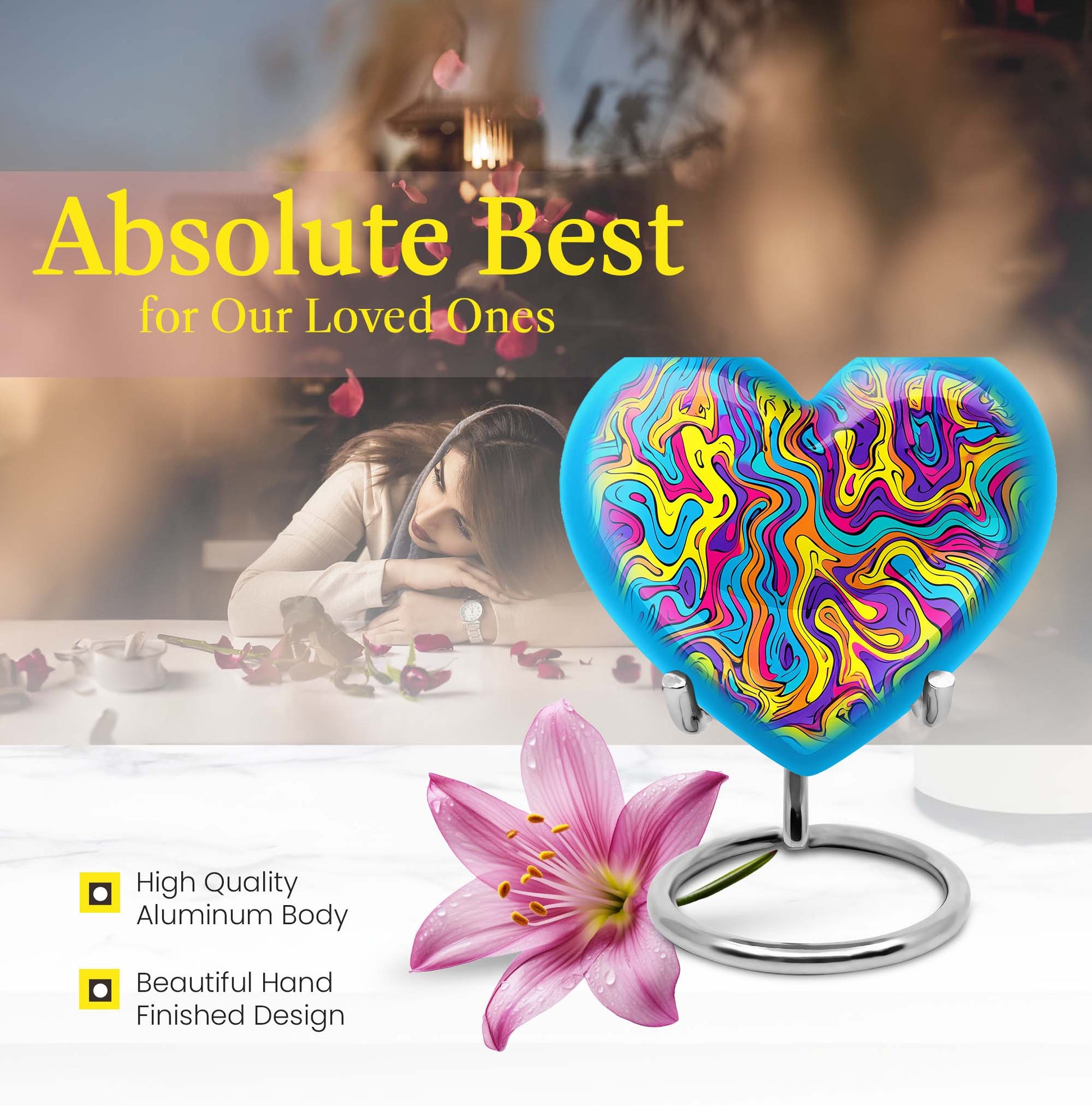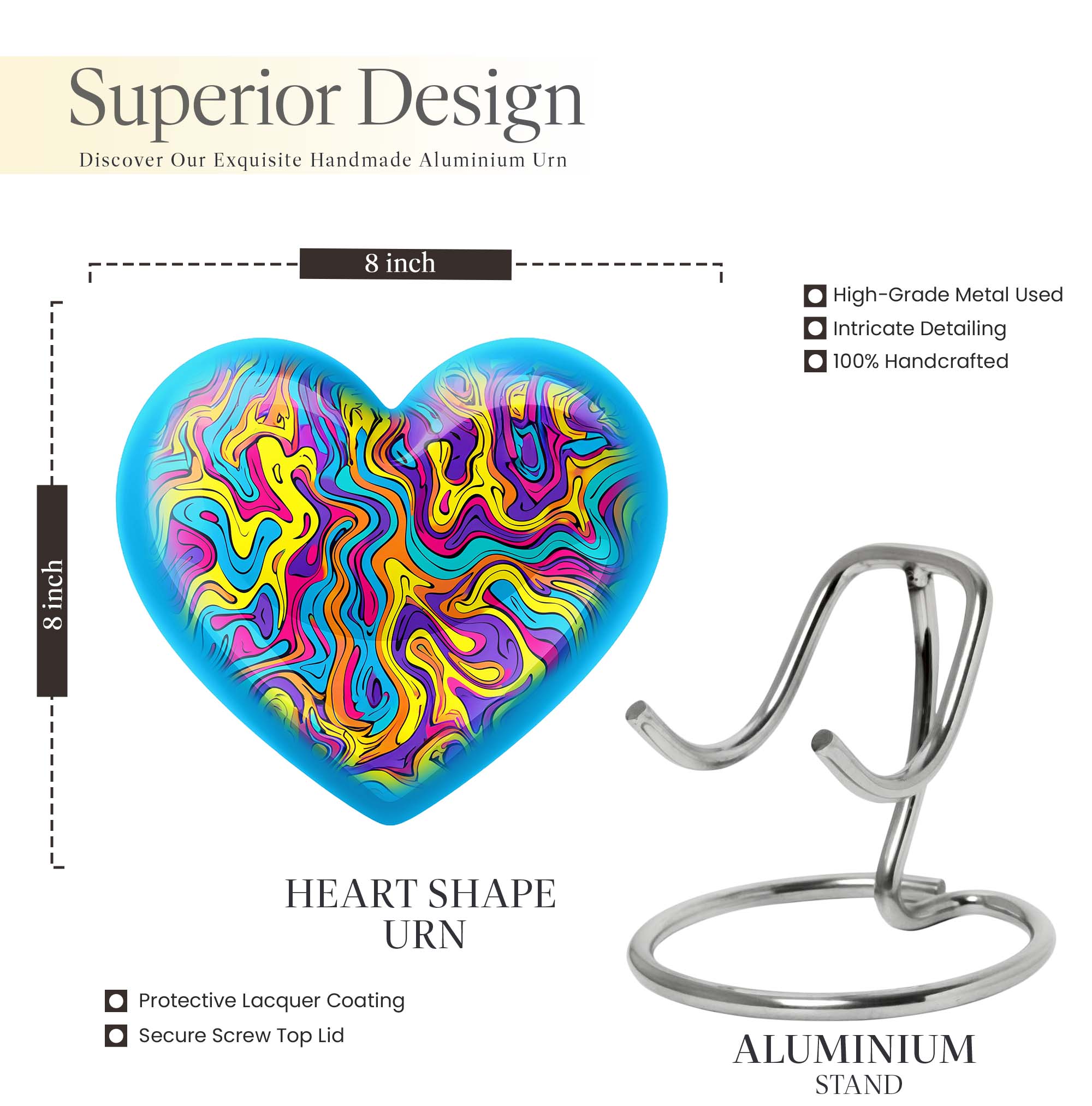 Honor the memory of your loved ones with our uniquely designed Heart Pattern Urn. This highly rated cremation memorial urn for human ashes is delicately crafted from robust aluminium material. The urn has a striking abstract theme that adds an aesthetic value to this precious keepsake. This large urn measures a substantial 10 inches in height and weighs 3.3 pounds, creating a substantial presence necessary for a memorial urn. It has a practical capacity of 200 cubic inches, designed for comfortably storing substantial human ashes. The urn is delivered with a velvet pouch ensuring safe and respectful containment of the ashes. Giving a personal touch, this product can be customized, allowing for engraved names. While this product comfortably fits urn for ashes for women and cremation urn man, it serves as an exquisite burial urn for human ashes. Respecting every culture and locale, this product is much more than a simple urn - it’s a celebration of life, love and precious memories.