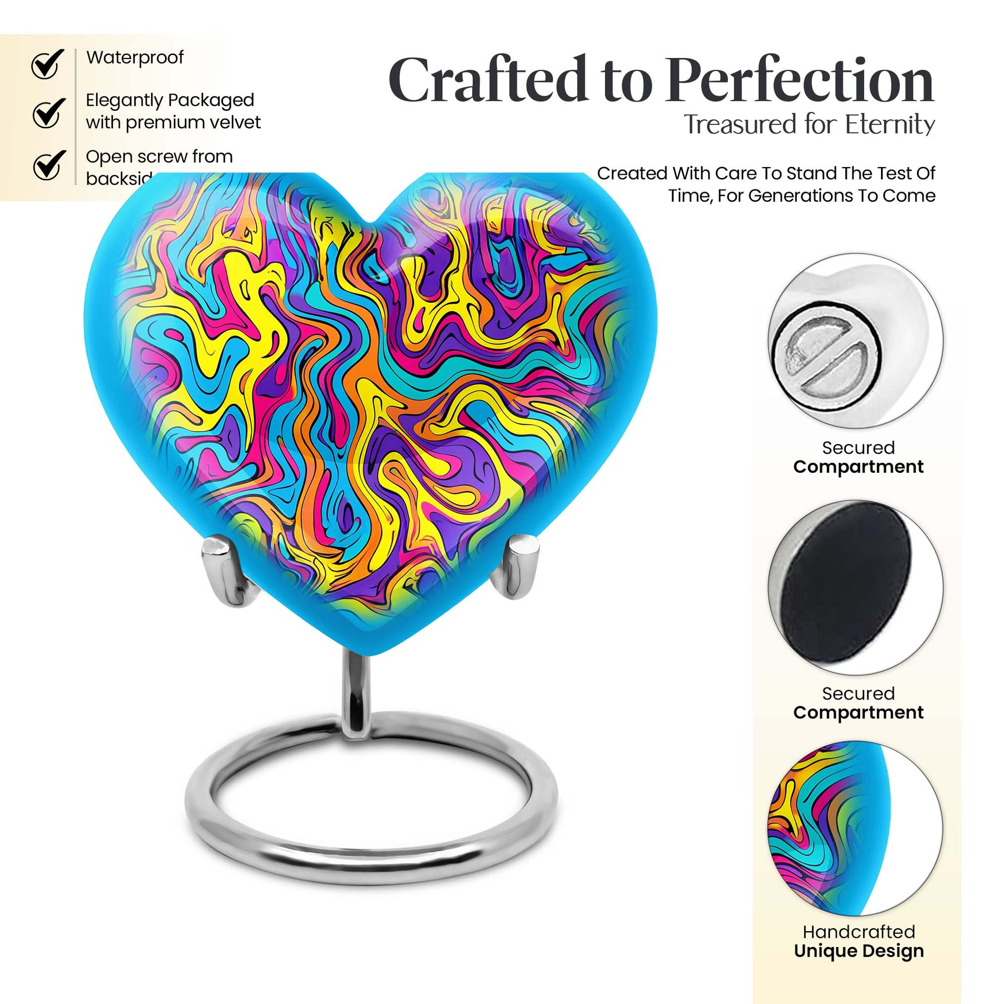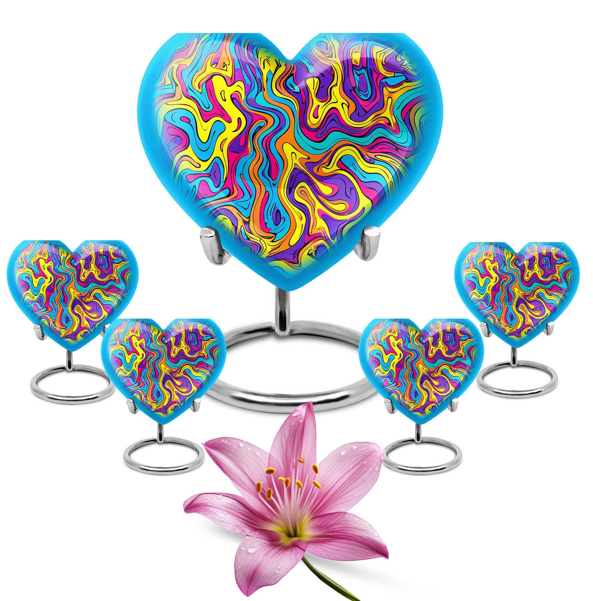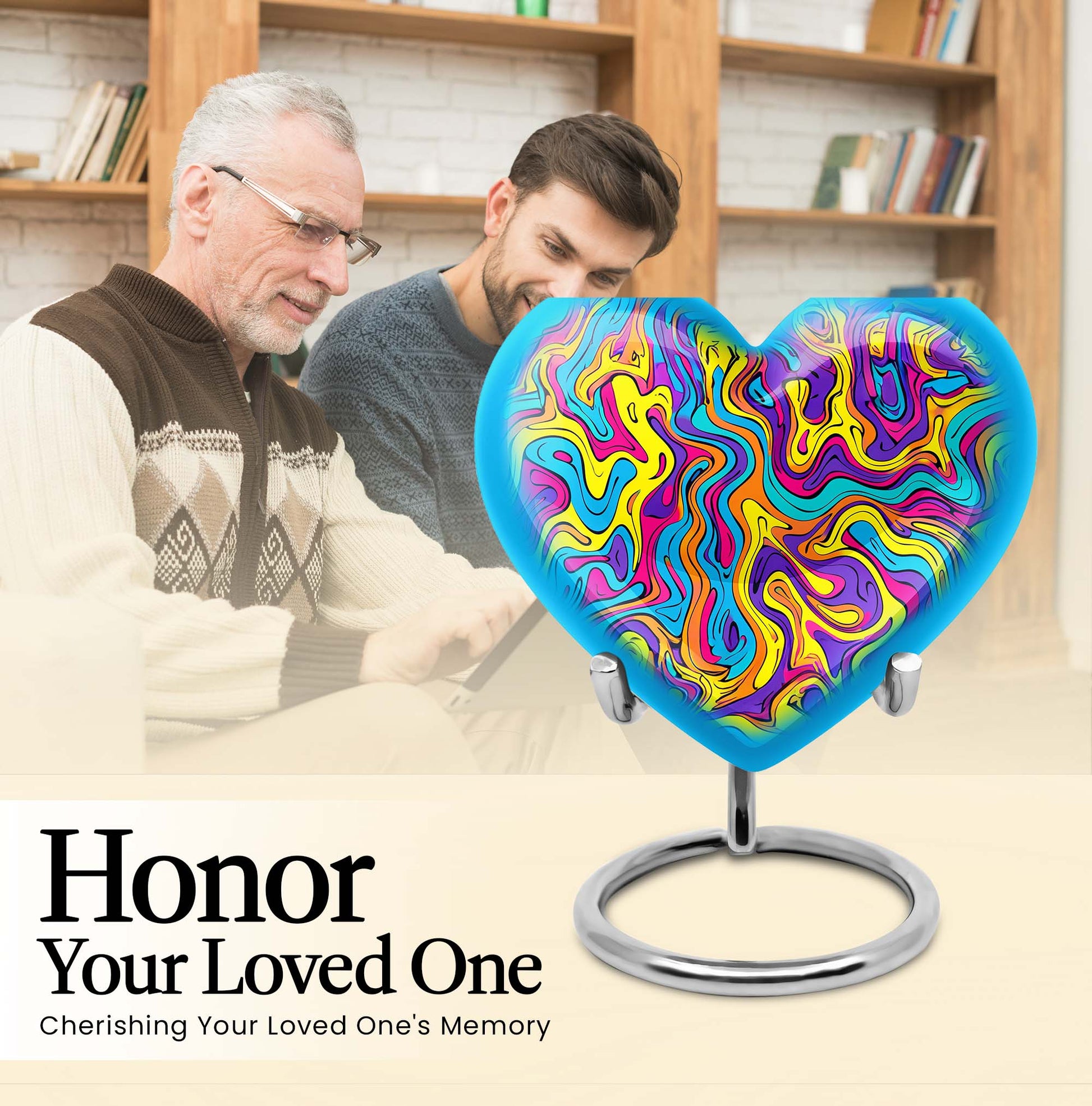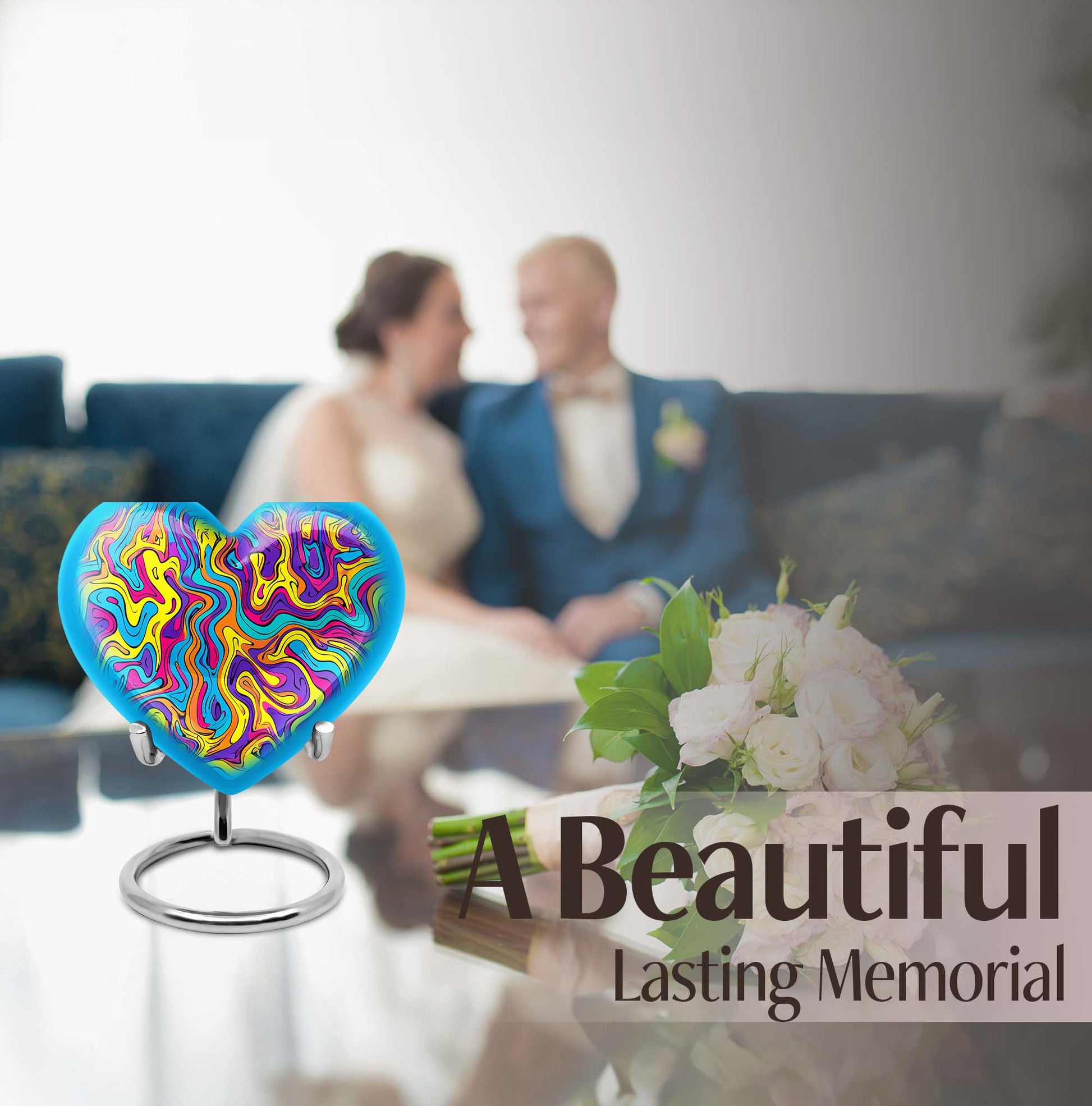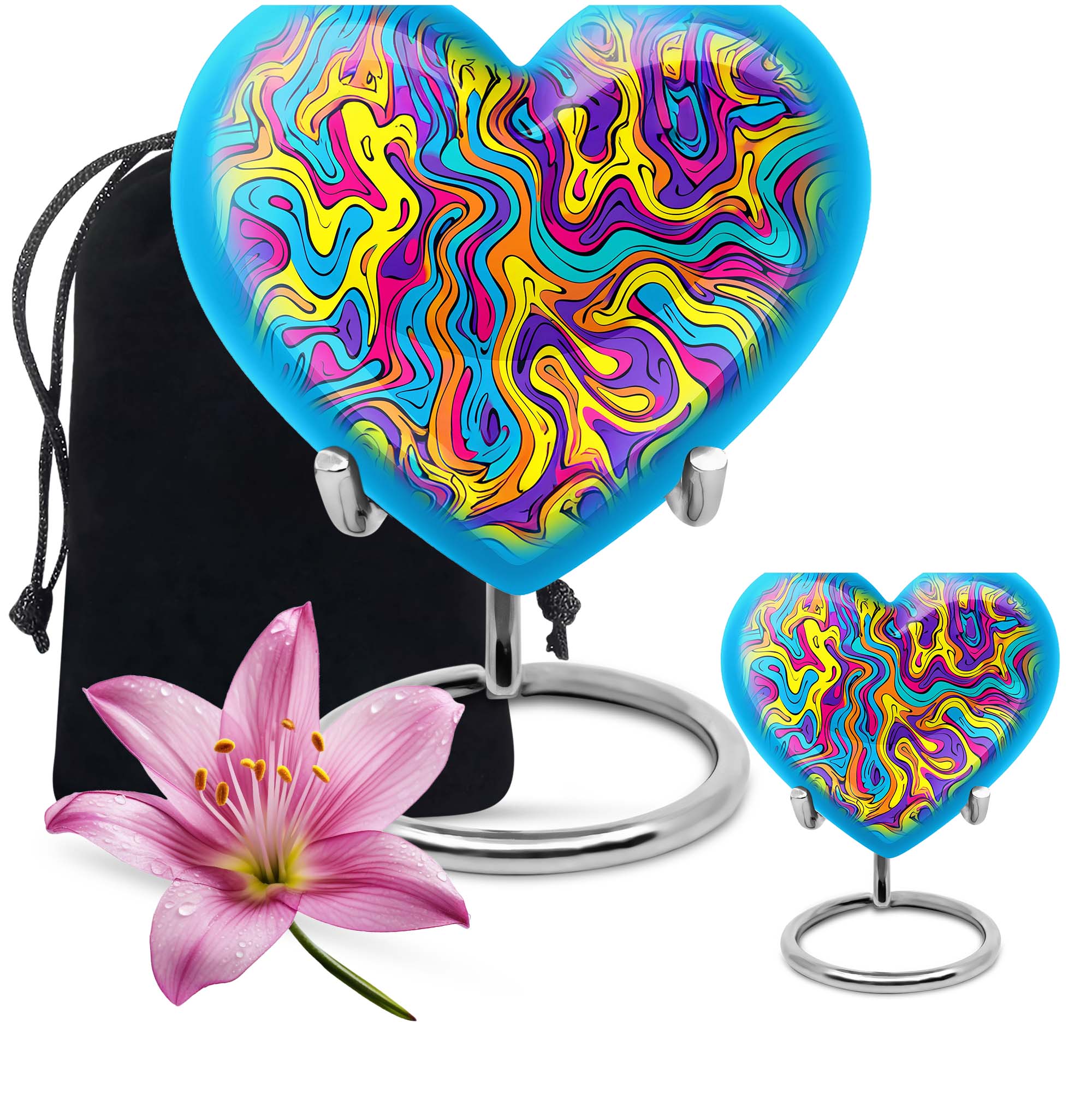 Honor the memory of your loved ones with our uniquely designed Heart Pattern Urn. This highly rated cremation memorial urn for human ashes is delicately crafted from robust aluminium material. The urn has a striking abstract theme that adds an aesthetic value to this precious keepsake. This large urn measures a substantial 10 inches in height and weighs 3.3 pounds, creating a substantial presence necessary for a memorial urn. It has a practical capacity of 200 cubic inches, designed for comfortably storing substantial human ashes. The urn is delivered with a velvet pouch ensuring safe and respectful containment of the ashes. Giving a personal touch, this product can be customized, allowing for engraved names. While this product comfortably fits urn for ashes for women and cremation urn man, it serves as an exquisite burial urn for human ashes. Respecting every culture and locale, this product is much more than a simple urn - it’s a celebration of life, love and precious memories.