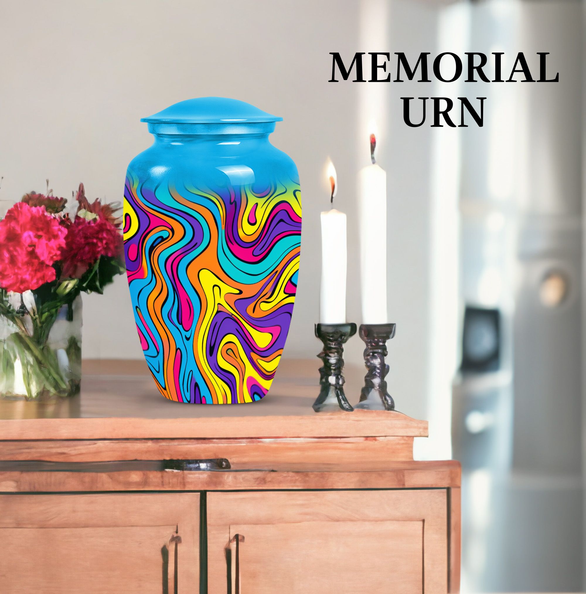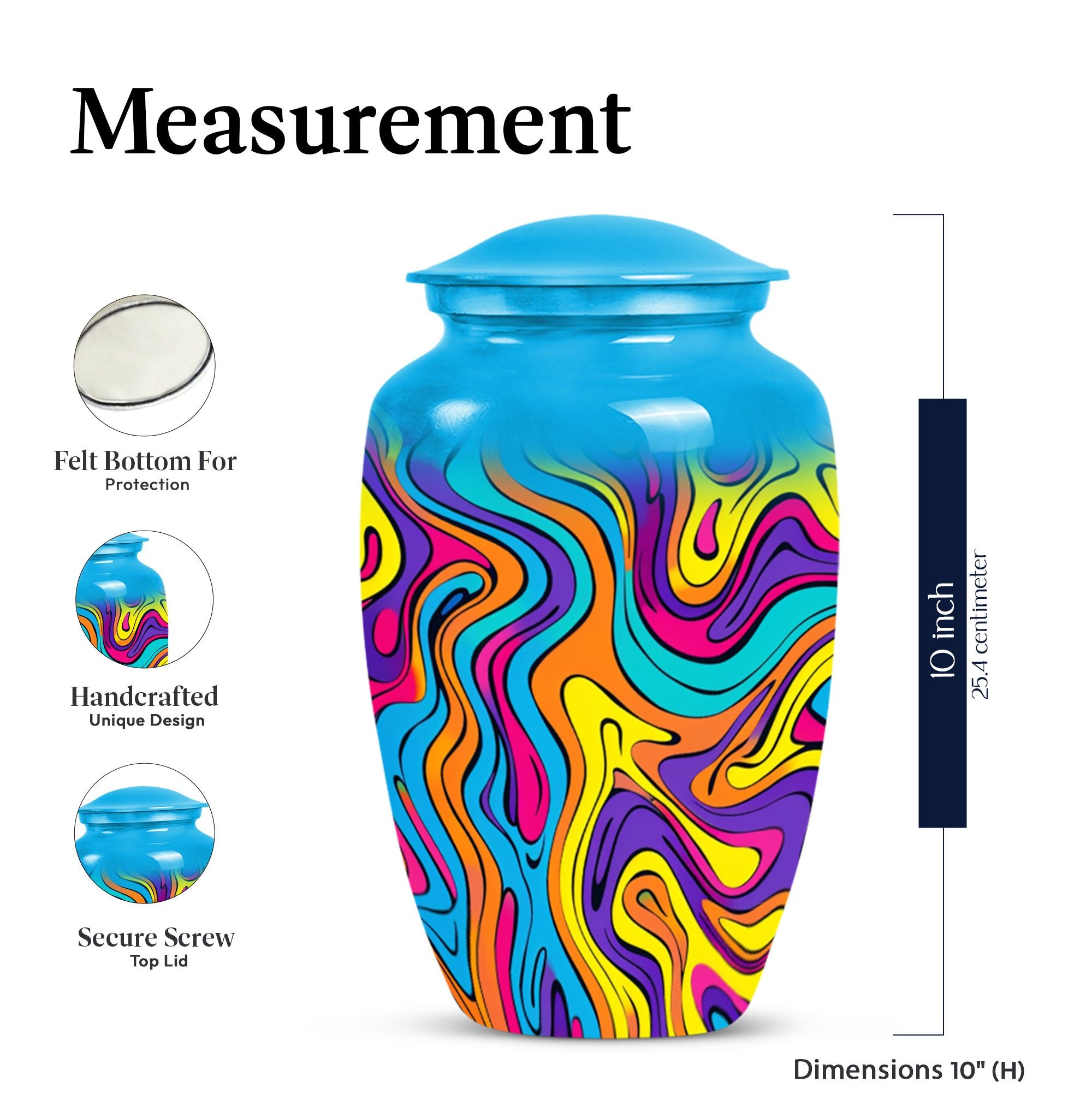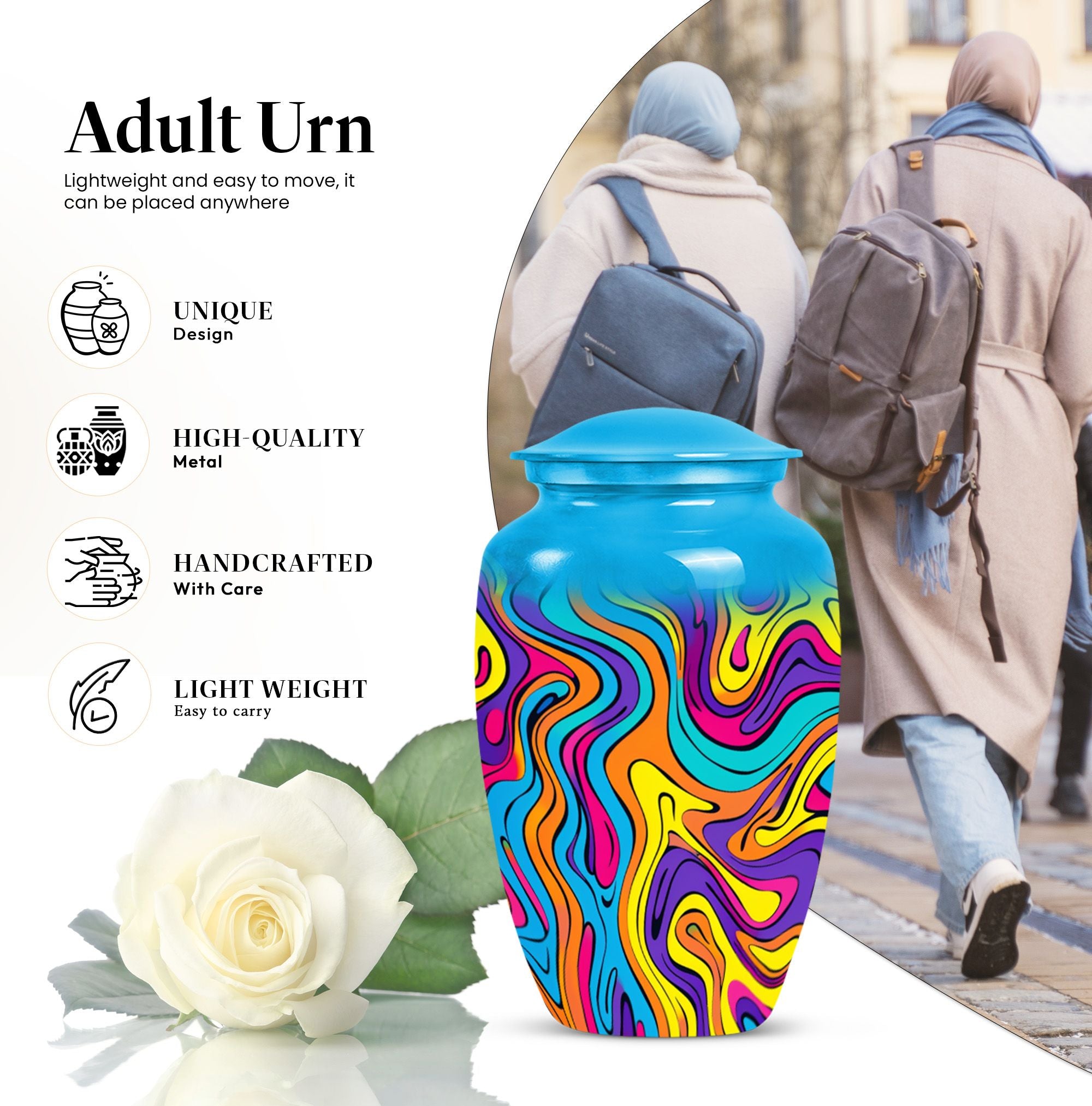 Preserve the memory of your loved ones with our Pattern Urn, the most suitable among cremation memorial urns for human ashes. These enchantingly abstract themed memorial urns can elegantly engulf anyone's attention. Its majestic size of 10 inches ensures ideal containment that weighs merely 3.3 pounds, thus ensuring effortless portability. Durability is assured with the aluminium material, promising long-lasting reminiscences. This Large Urn has an impressive capacity of 200 cubic inches; ample space to honor your loved one's remains. It comes with an exquisite velvet pouch ensuring safety and discretion for the ashes. Indulge in the intimate process of customization by personalizing it with engraved names, creating a distinctive possession. Our burial urn for human ashes elevates the aesthetic appeal for both men and women, making it the ultimate choice in cremation urns large category. Remember, honoring your loved ones encompasses more than just memories; it includes a heartfelt expression of respect and devotion.