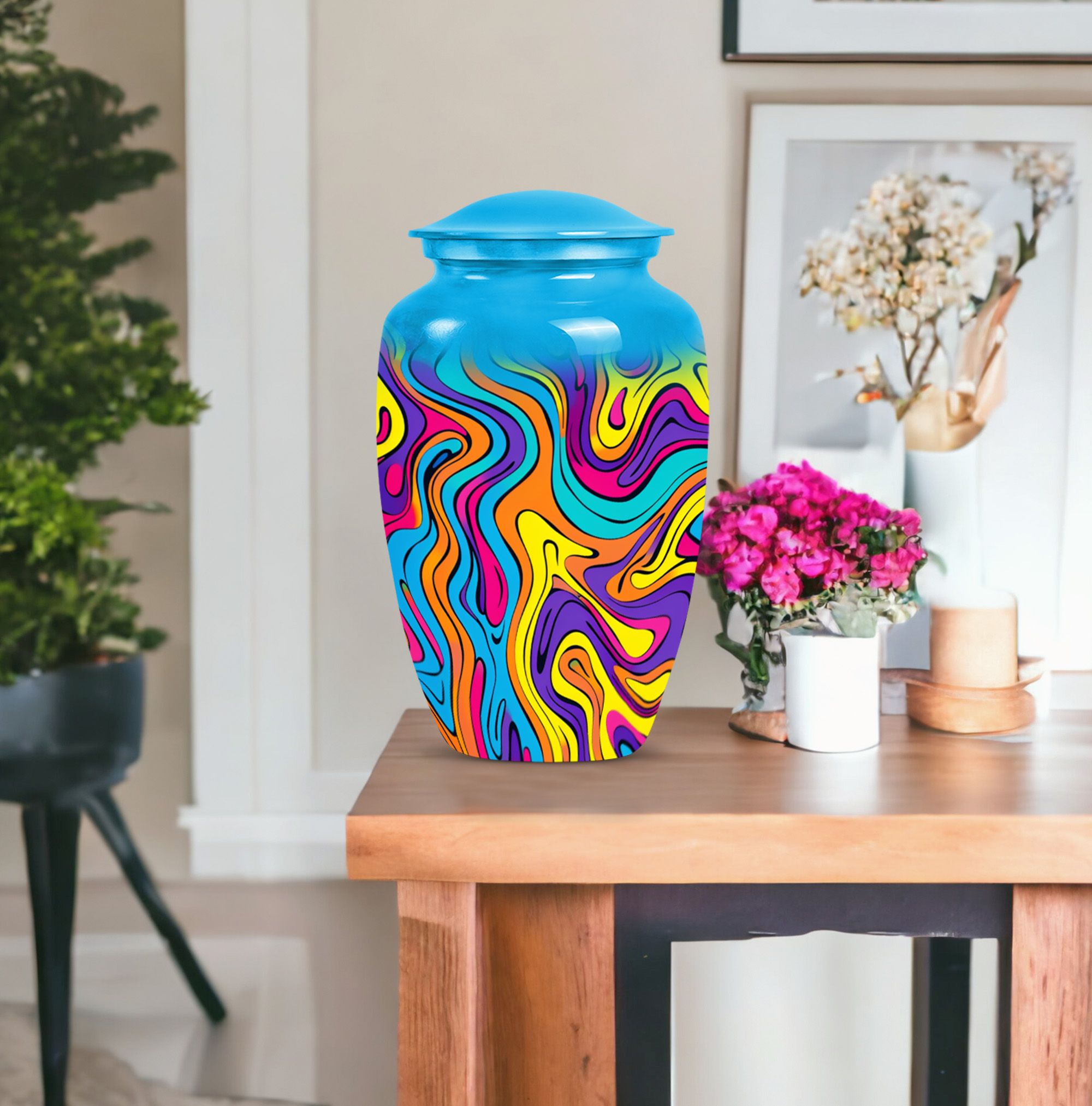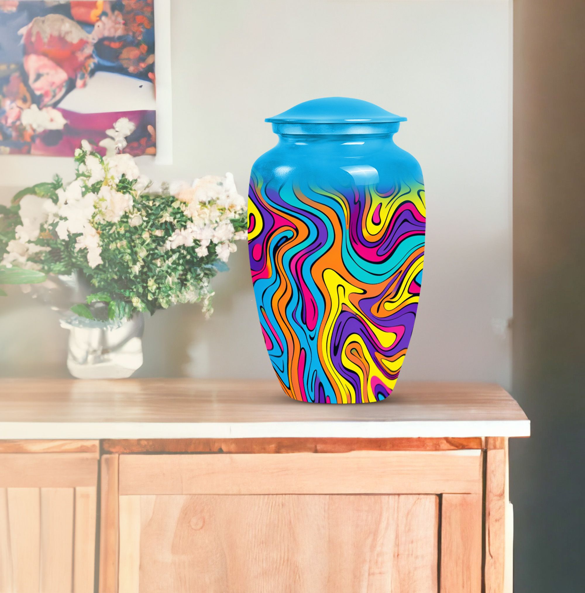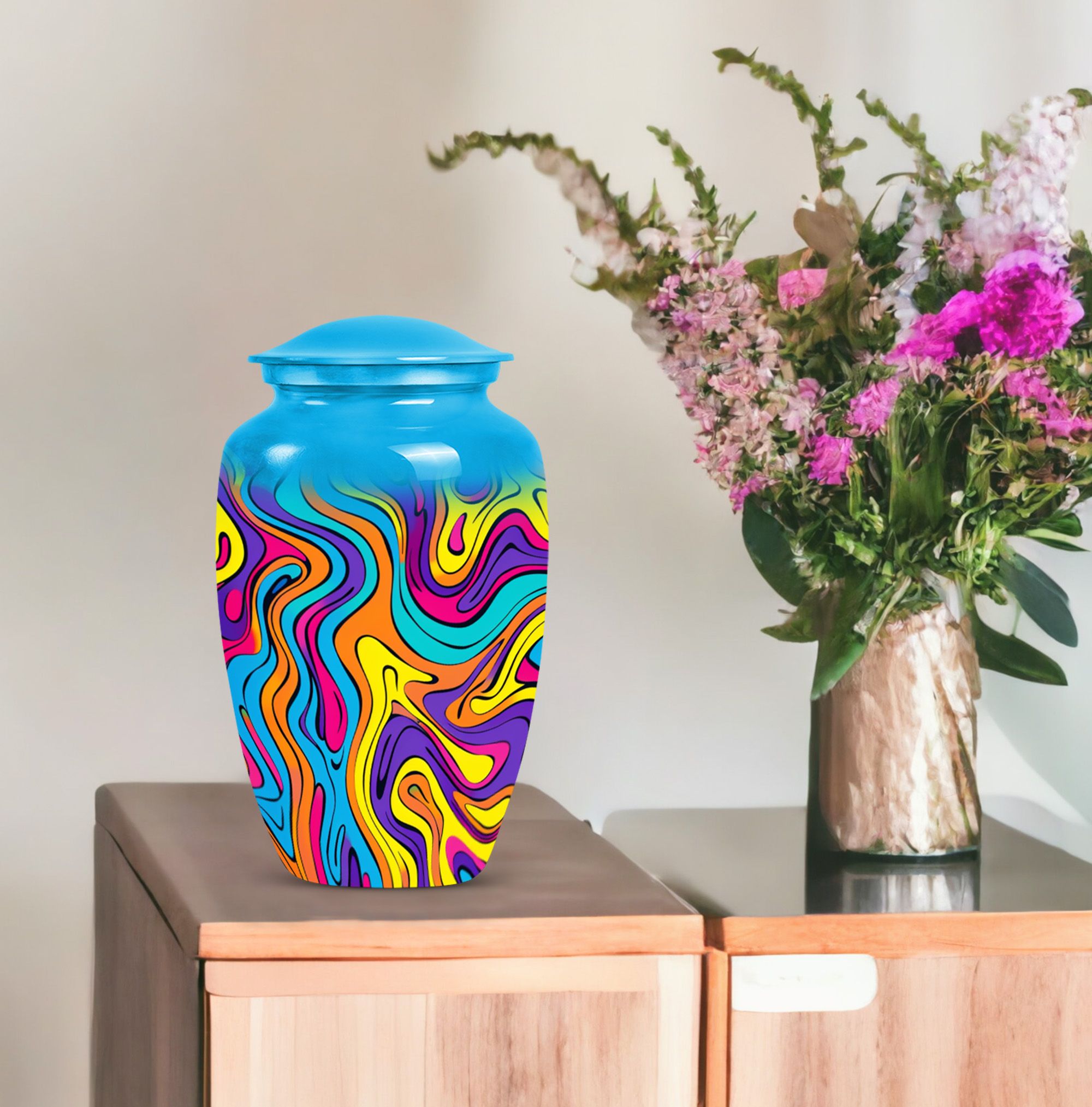 Preserve the memory of your loved ones with our Pattern Urn, the most suitable among cremation memorial urns for human ashes. These enchantingly abstract themed memorial urns can elegantly engulf anyone's attention. Its majestic size of 10 inches ensures ideal containment that weighs merely 3.3 pounds, thus ensuring effortless portability. Durability is assured with the aluminium material, promising long-lasting reminiscences. This Large Urn has an impressive capacity of 200 cubic inches; ample space to honor your loved one's remains. It comes with an exquisite velvet pouch ensuring safety and discretion for the ashes. Indulge in the intimate process of customization by personalizing it with engraved names, creating a distinctive possession. Our burial urn for human ashes elevates the aesthetic appeal for both men and women, making it the ultimate choice in cremation urns large category. Remember, honoring your loved ones encompasses more than just memories; it includes a heartfelt expression of respect and devotion.