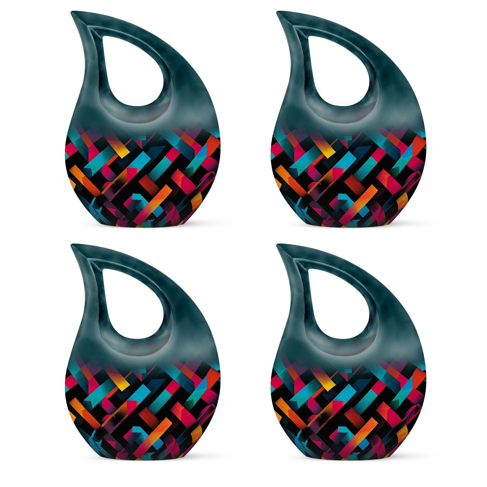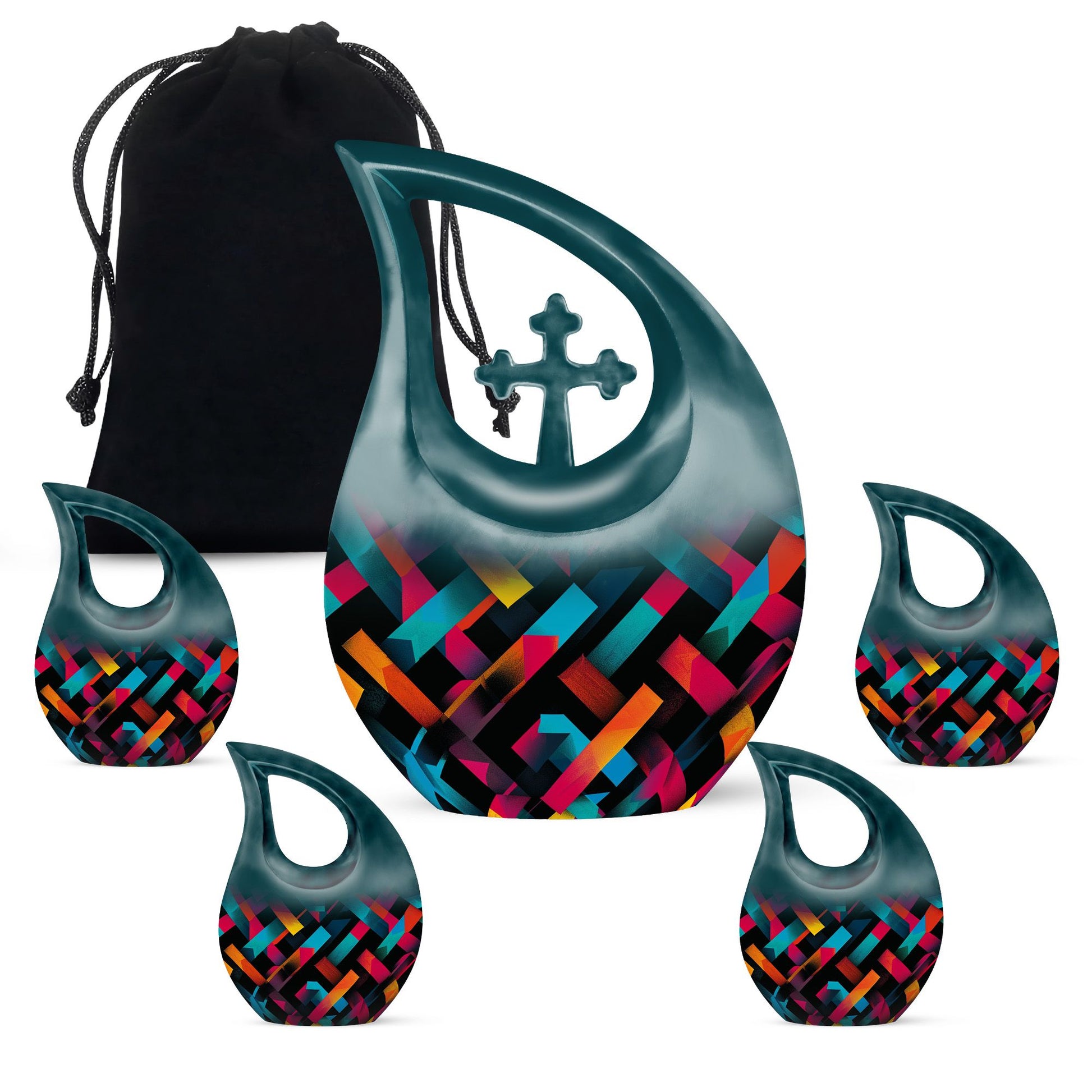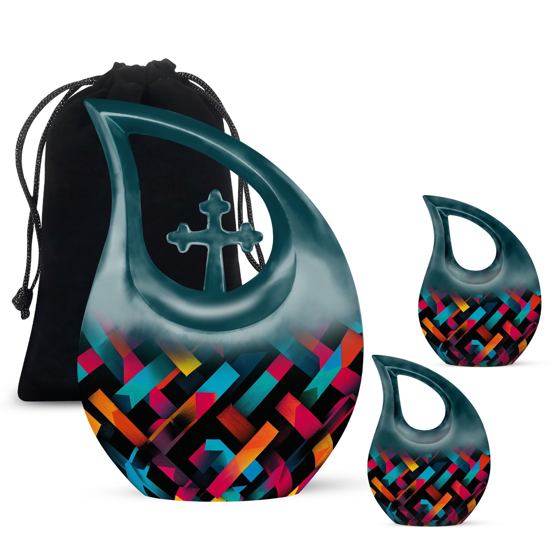 Honor the memory of your loved ones with this meticulously crafted 10-inch Pattern Urn. Boasting a unique design theme, this cremation container features a soothing 'Cross Drop' design. Each urn is precision-crafted from durable aluminium, ensuring longevity and heartening preservation. With a substantial capacity of 200 cubic inches, the urn comfortably holds the ashes of your loved one, acting as a touching tribute to their life. The urn weighs 3.3 pounds and displays a balance of robust durability and delicate design. Augment its significance with your personalized touch by engraving names onto the urn, making it an artifact of cherished memories. Further, the package comes supplied with a velvet pouch for dignified containment of ashes. Our large urns harmoniously blend design and practicality, serving as ideal memorial urns or burial urns. Remember, cherish, and celebrate your loved ones with our unique selection of personalized urns for ashes.
