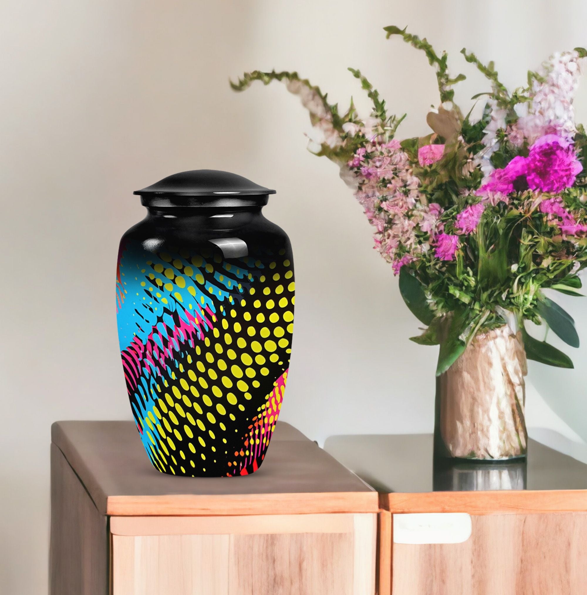 Discover the deep symbolism and comfort in our uniquely Pattern Urn, handcrafted for adult human ashes. Measuring 10 inches in height, perfectly proportioned, and weighing a solid 3.3 pounds, this cremation personalized urn unites artistry and functionality. The large urn is gracefully designed from Aluminium, embodying an Abstract theme that resonates with sentiments, making it a respectful resting place for your loved one. It accommodates up to 200 cubic inches of ashes based on the classic urn design. Our package includes a plush velvet pouch for keeping the remains contained and secure. We also offer an option to personalize with engraved names, adding an invaluable personal touch to this urn. Our cremation urn is not just an object but a cherished token that symbolizes enduring love and remembrance. Ideal for those seeking urns for cremation ashes for men or personalized urns for cremation ashes for the beloved mother. Let our urn ash burial urn brighten your memories and soothe your heart.