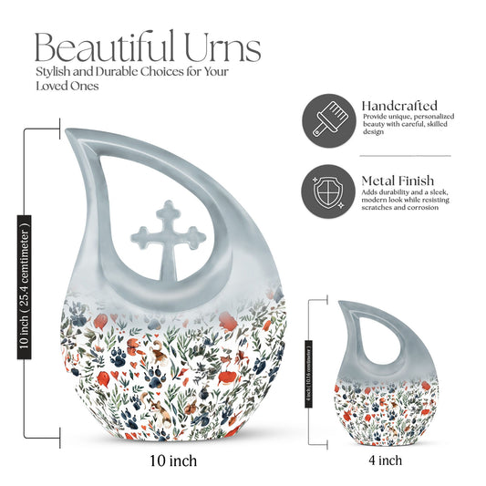 Our Paws Urns Collection is specially crafted for pet lovers who want to celebrate the life and memory of their beloved furry companions. Featuring paw print-themed designs, these cremation urns capture the unconditional love, joy, and comfort your pet brought into your life. Whether you’re honoring a loyal dog, a gentle cat, or another cherished pet, these urns provide a heartfelt and dignified final resting place.