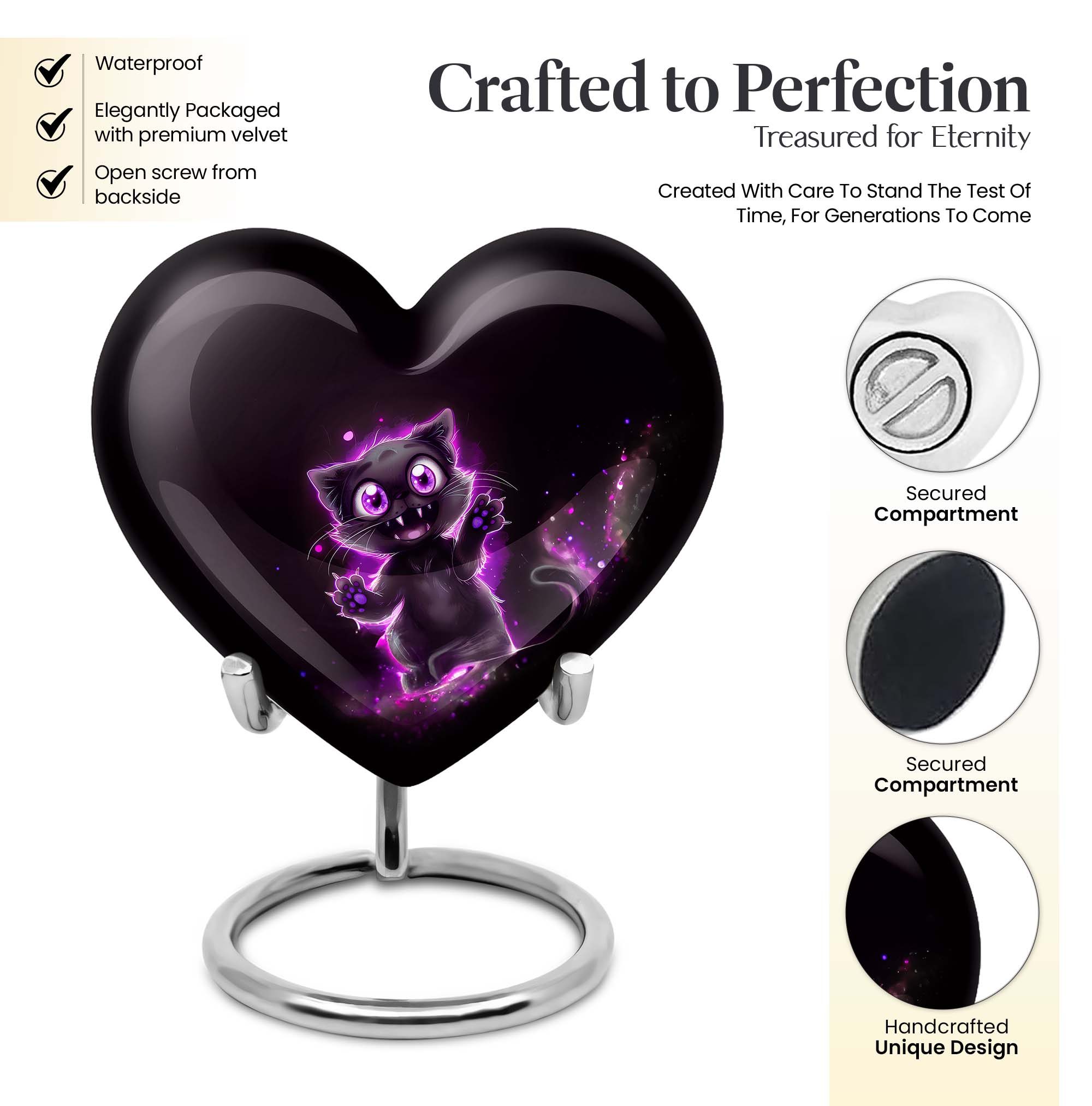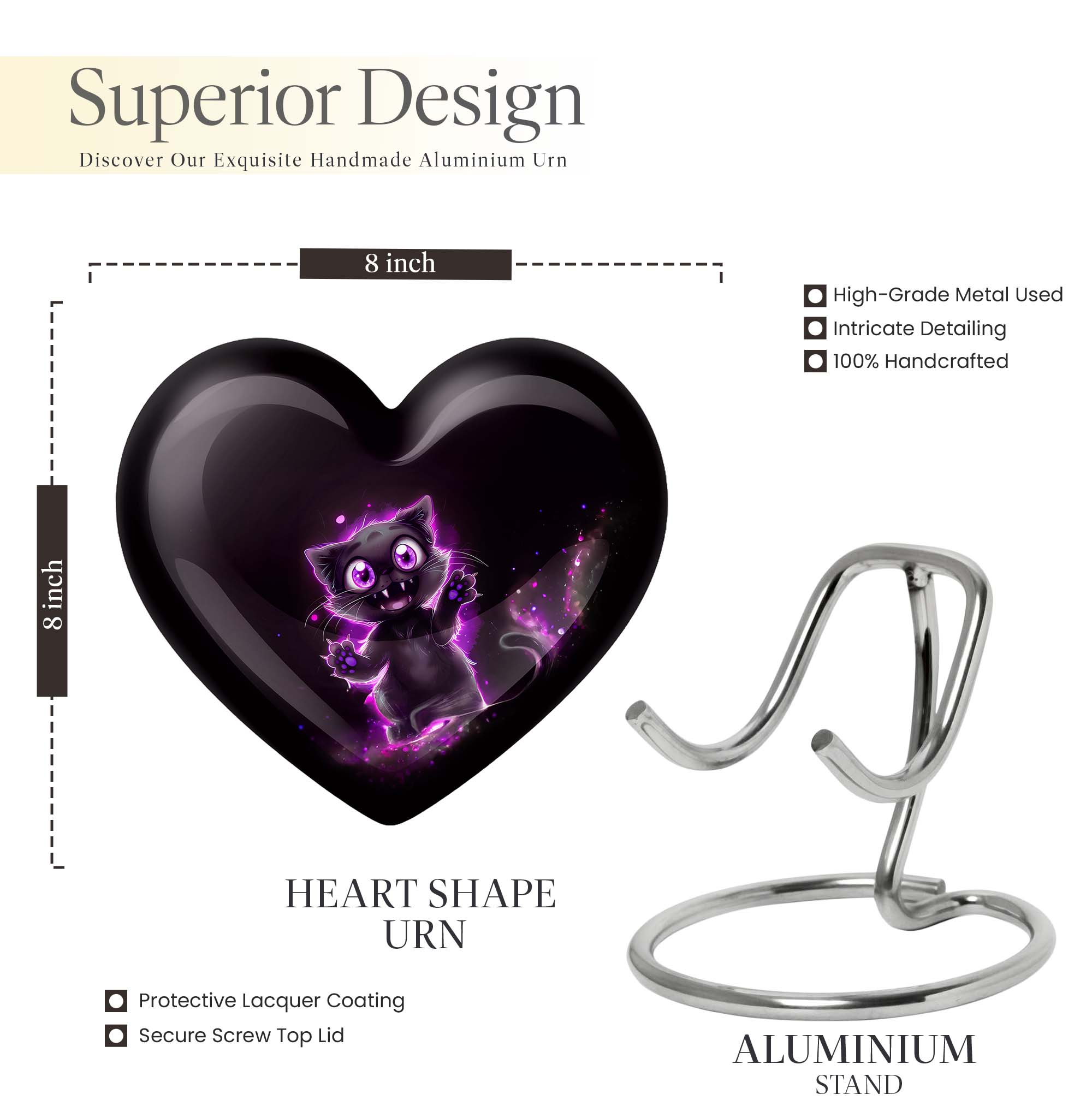 Keep the spirit of your loved ones close to your heart with our classically designed 'PAWS Urn.' Handcrafted with superior attention to detail, this 10 inch, aluminium, large urn exemplifies the perfect memorabilia for seniors and adults who believe in the sanctity of remembrance. The urn possesses a capacity of 200 cubic inches, ideal enough to hold your precious memories. Akin to a heavy heart that's full of love, the urn weighs 3.3 pounds. Its abstract theme with a heart adds a touch of elegance. Keep your loves one's last remains preserved in this elegantly designed cremation urn. Personalize our 'PAWS Urn' with engraved names, showcasing your affection. The package comprises a velvet pouch for thoughtful containment of ashes. Its keywords include 'cremation urns for dad', 'urn for mom', 'Human Ashes Urn with Cross Design', and 'burial urns metal'. Making it an elegantly practical cremation urn for your cherished memories. With a unique touch and lasting durability, this urn is a thoughtful gesture for much-needed solace.