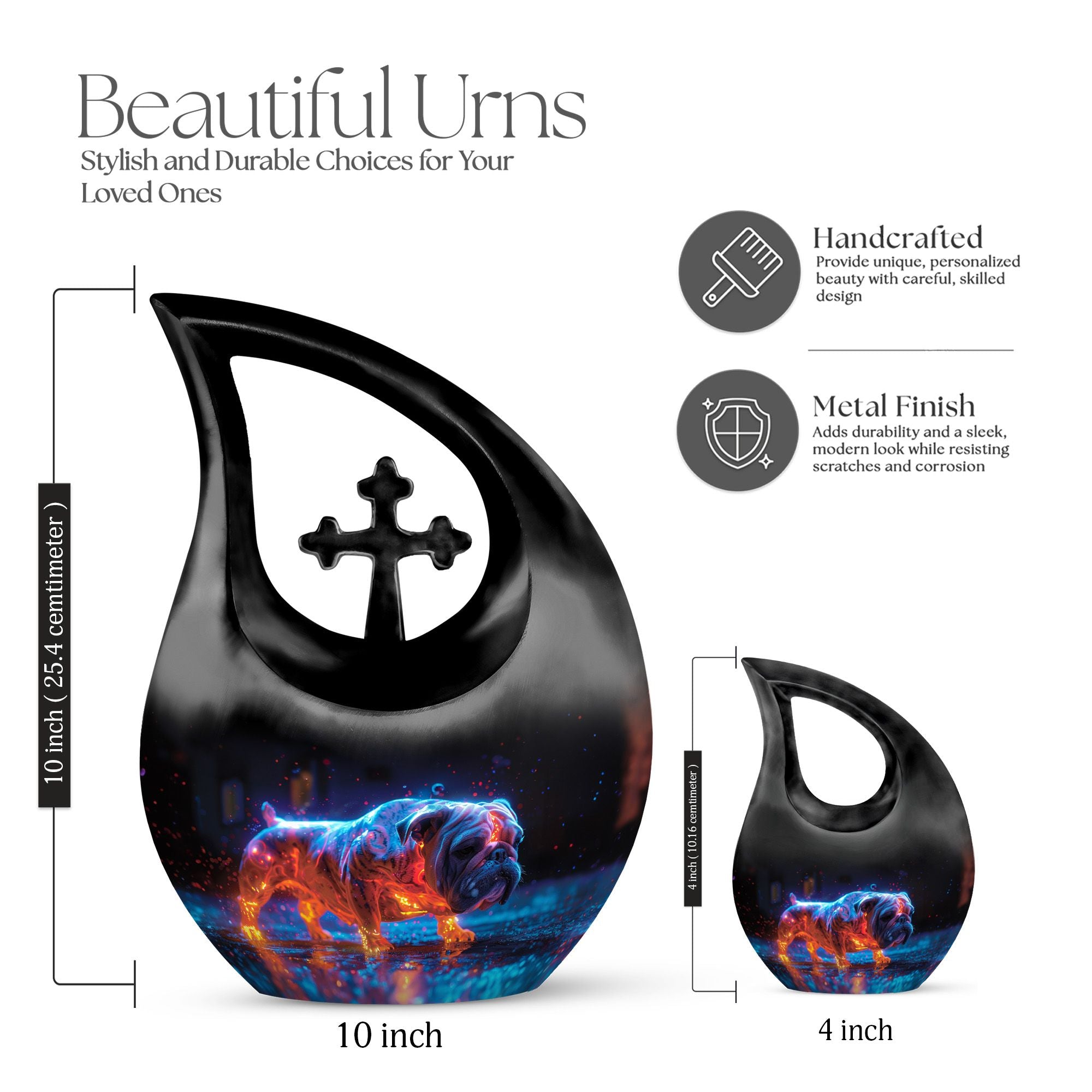 Experience the profound serenity with our 'Lava Paws Urn' from the memorial urns range, a treasured keepsake to preserve the memories of your beloved. This Cremation Ashes Keepsake is made of durable Aluminium, attributing to its impressive weight of just 3.3 pounds, making it portable and secure. The urn boasts a 'Cross Drop' theme, providing a Layer of religious reverence that adds a spiritual sense of peace. Our Large Urns can hold up to 200 cubic inches, a suitable size of 10 inches in height for containment of ashes. Within the package, we provide a luxurious velvet pouch to securely hold your cherished remnants. The product incorporates a special feature to personalize with engraved names, giving a unique touch to your commemorative memorabilia. Become a part of our clientele who deeply appreciate and search for Companion Urns For Burial, Containers For Ashes Of Deceased, Human Ashes Keepsakes, and Funeral Urns. Honor your loved one’s memory with this exceptional piece while paying tribute in the most heartfelt way.