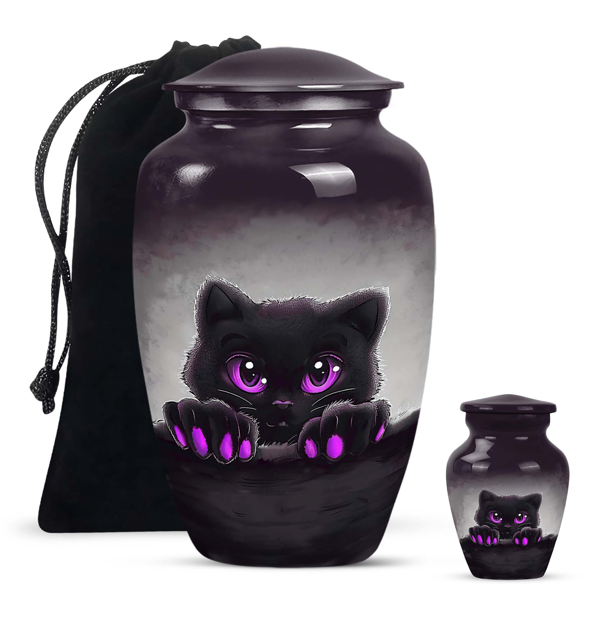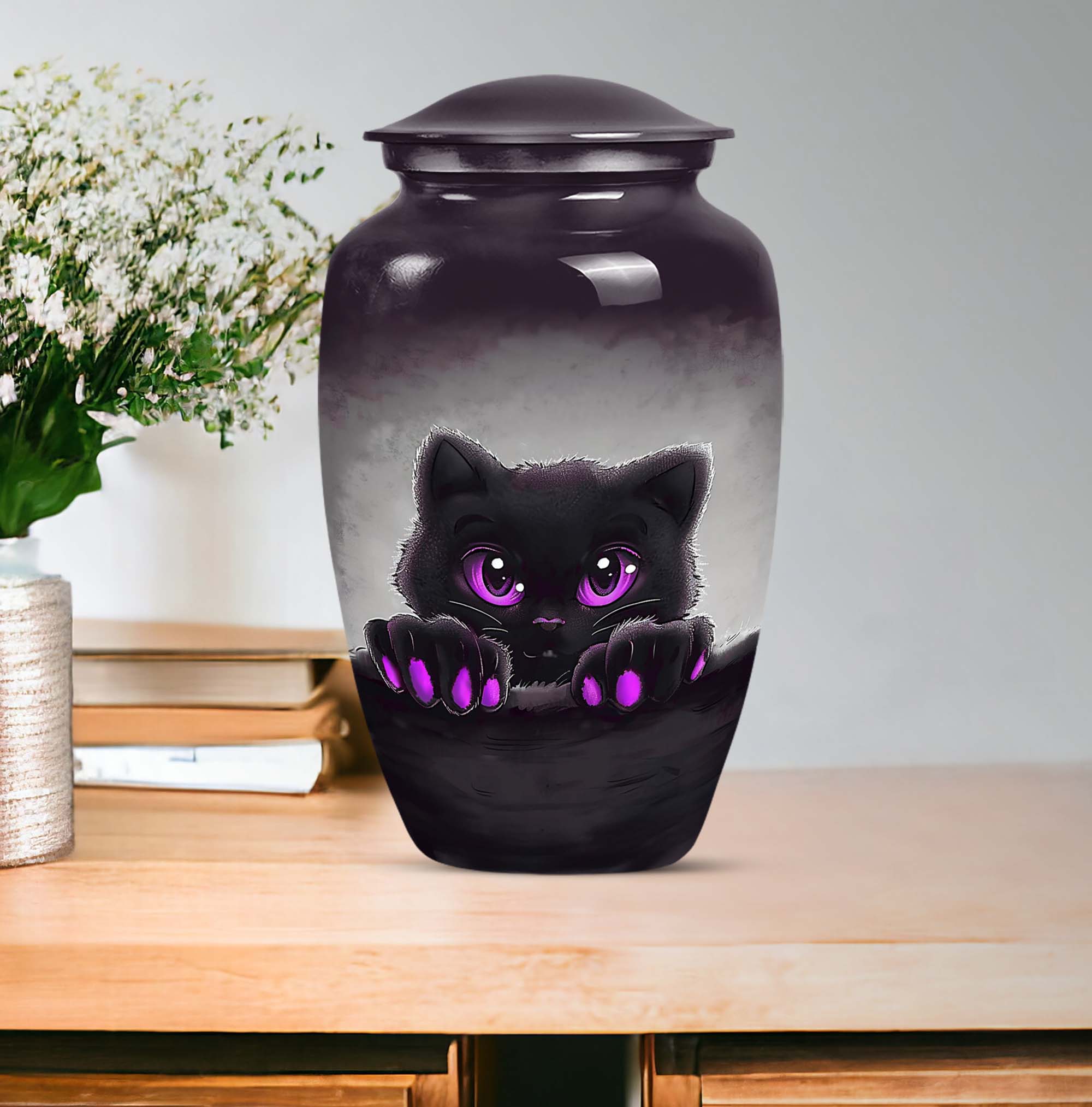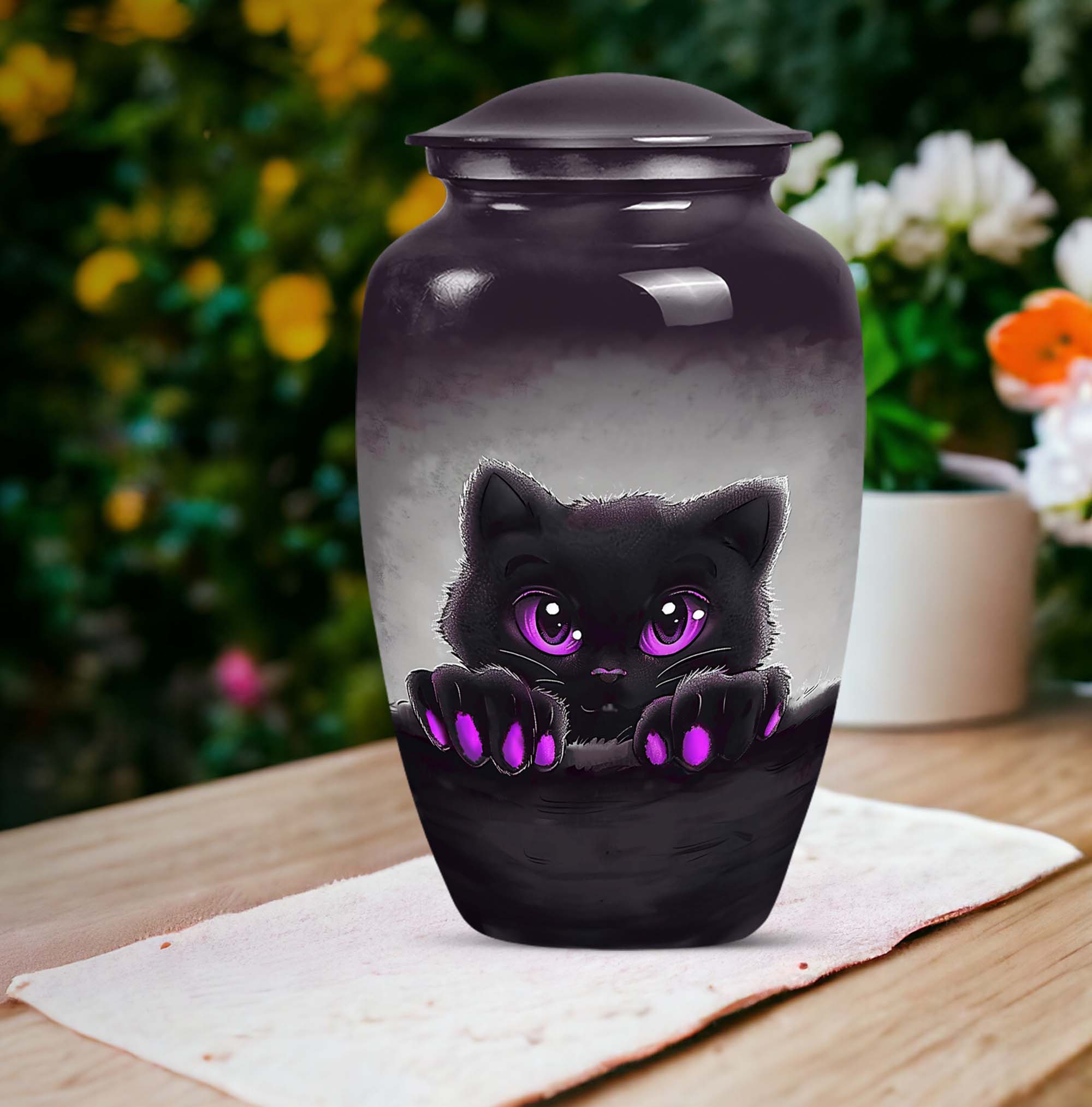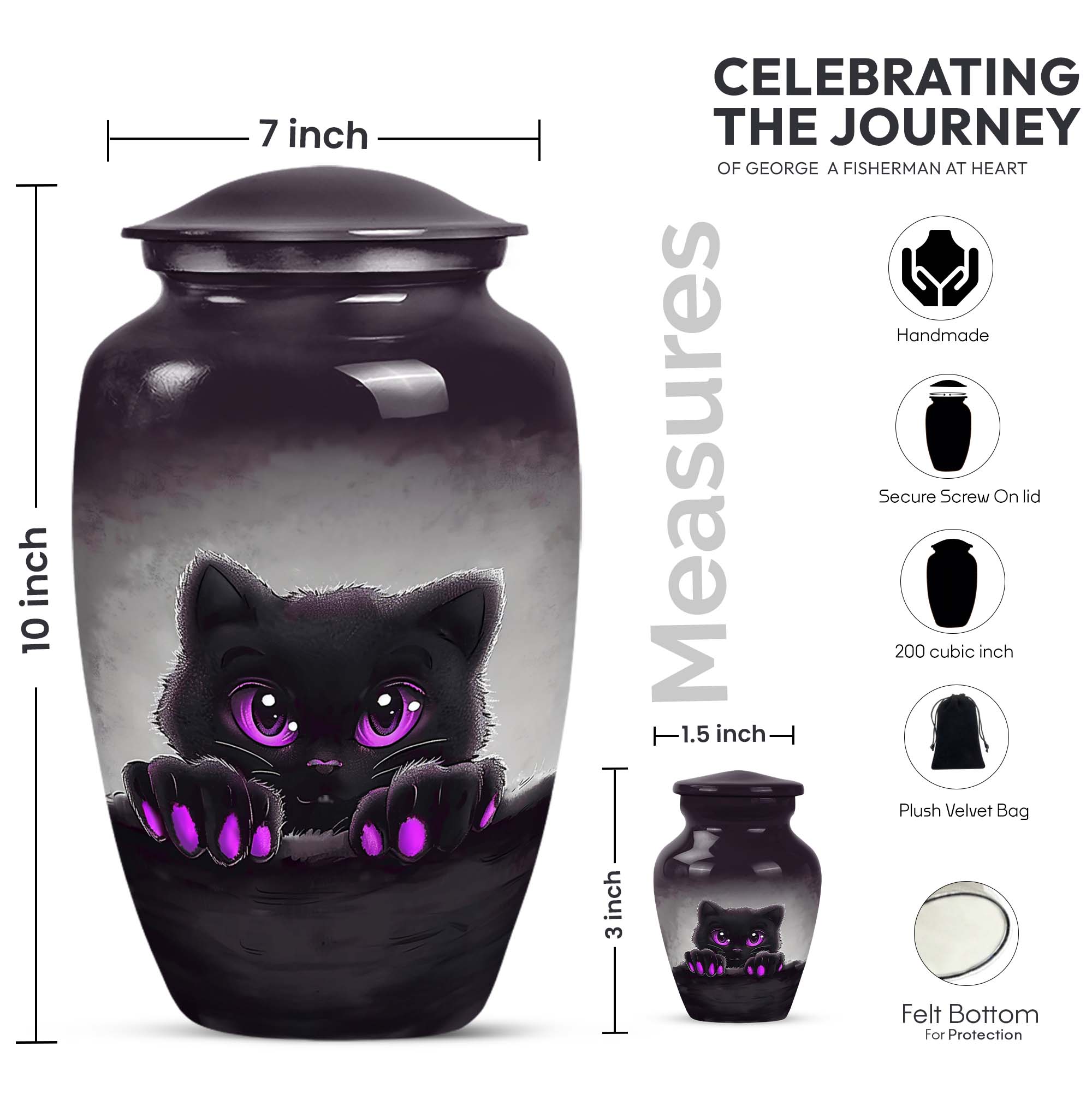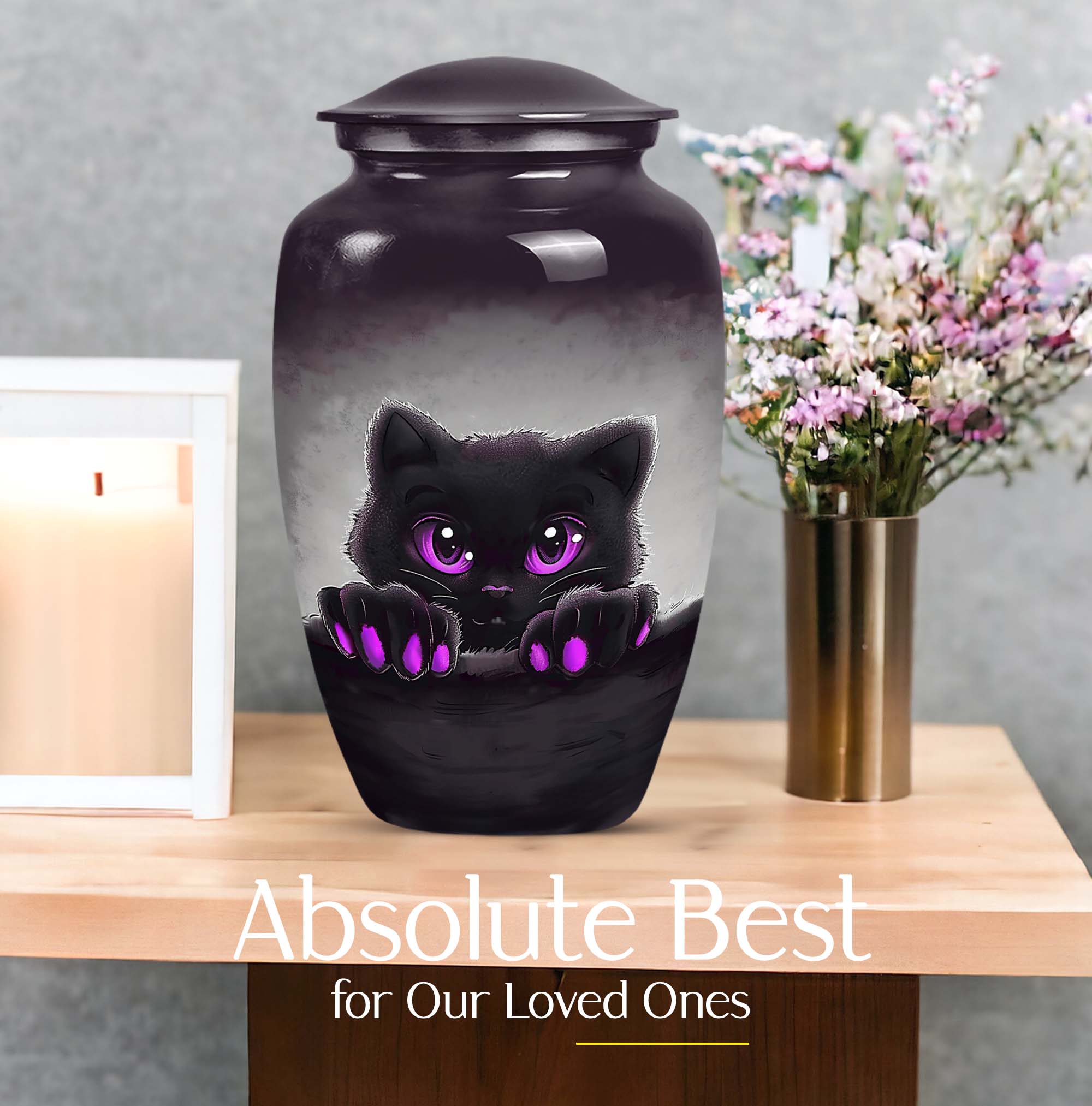 Symbolize your cherished one's eternal rest with this durable, 10-Inch 'PAWS Urn', a cremation urn built to hold the ashes of an adult male. Crafted from high-quality aluminium, this 'Classic Urn' dons an abstract theme that provides a sense of serenity and calmness. Weighing just 3.3 pounds, it is easy to move and comes with a handy velvet pouch for secure containment of ashes. With an ample capacity of 200 cubic inches, it ensures peace of mind knowing that your loved one's presence remains close. The urn is not only functional but it also offers the option for customization; engrave your loved one's name on it for a deeply personal touch. Referencing keywords such as 'urns for male', 'Portable Urns for Travels', or 'human urn for ashes female', helps you locate this product. Introduce an element of solace to the memorial ceremony with this large, portable urn.
