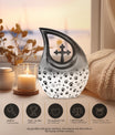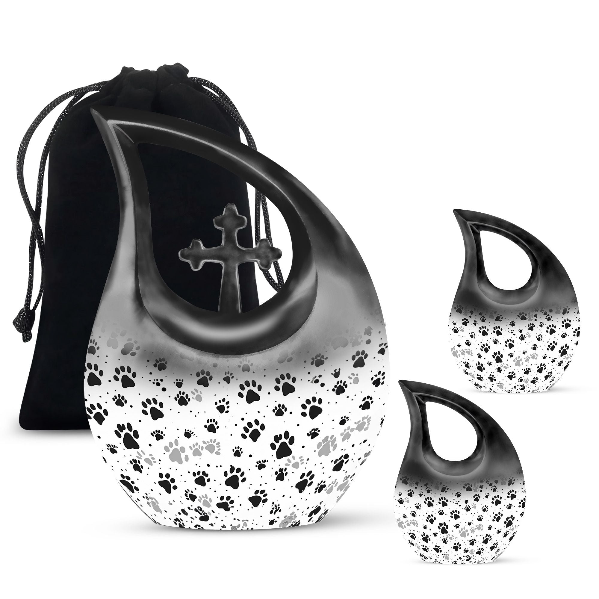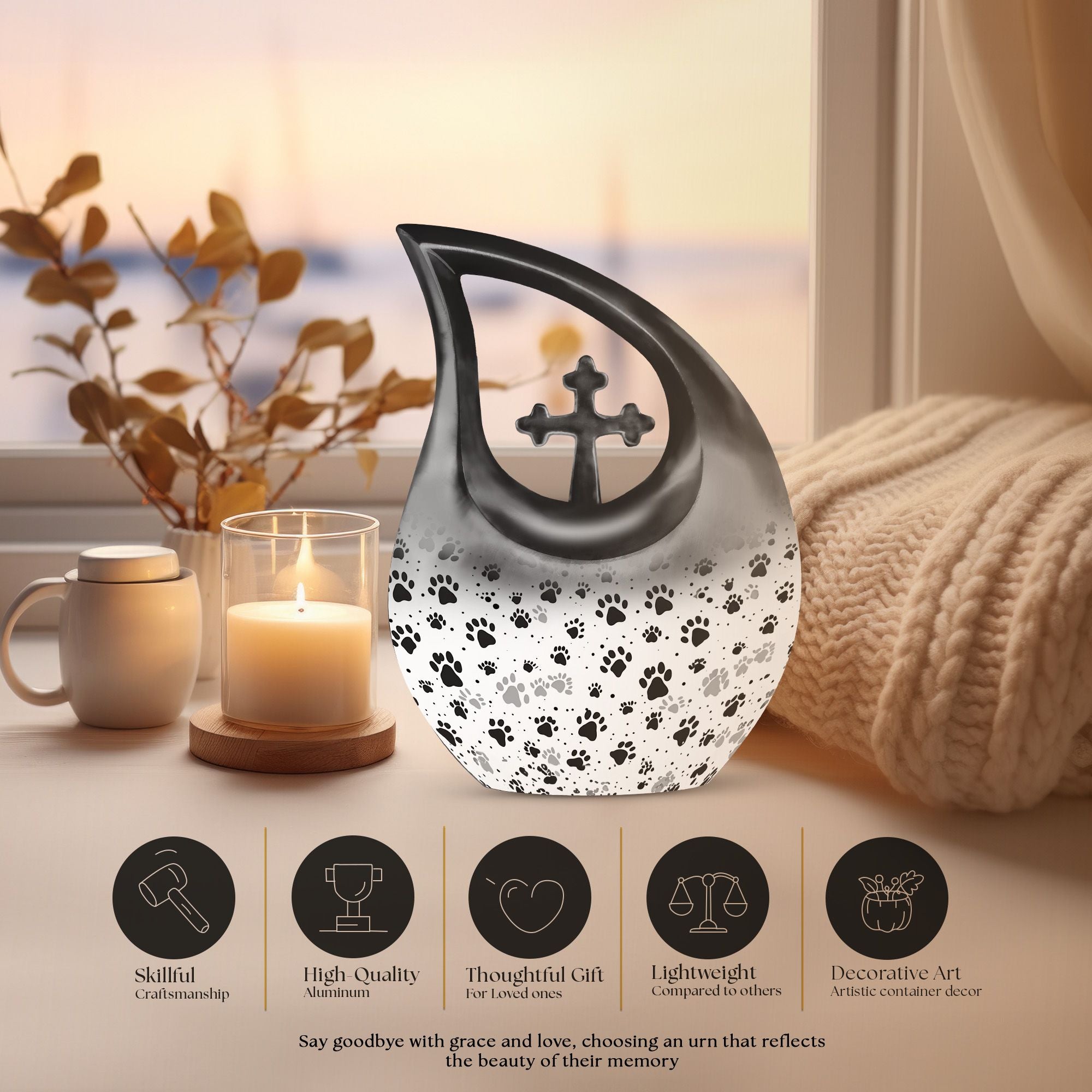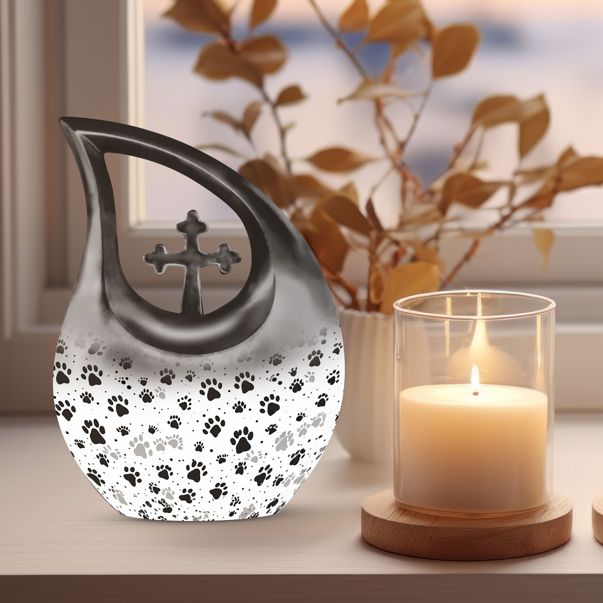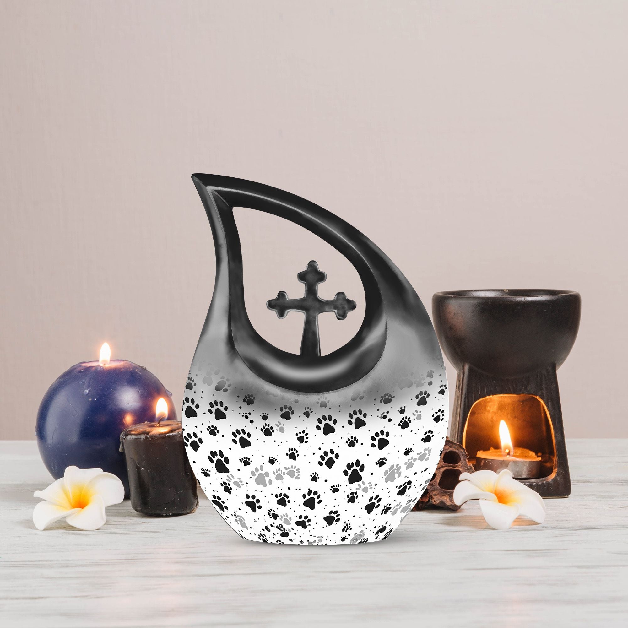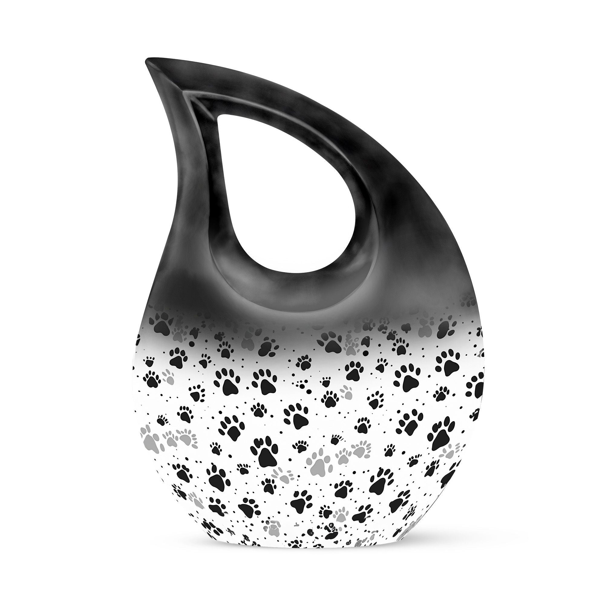The Paw Print Funeral Urn offers a loving and dignified way to honor the memory of a cherished pet. Its black and white paw-print artwork brings comfort to grieving families, creating a heartfelt tribute that works beautifully as a custom pet urn, small pet urn, or a treasured keepsake for any beloved companion.
