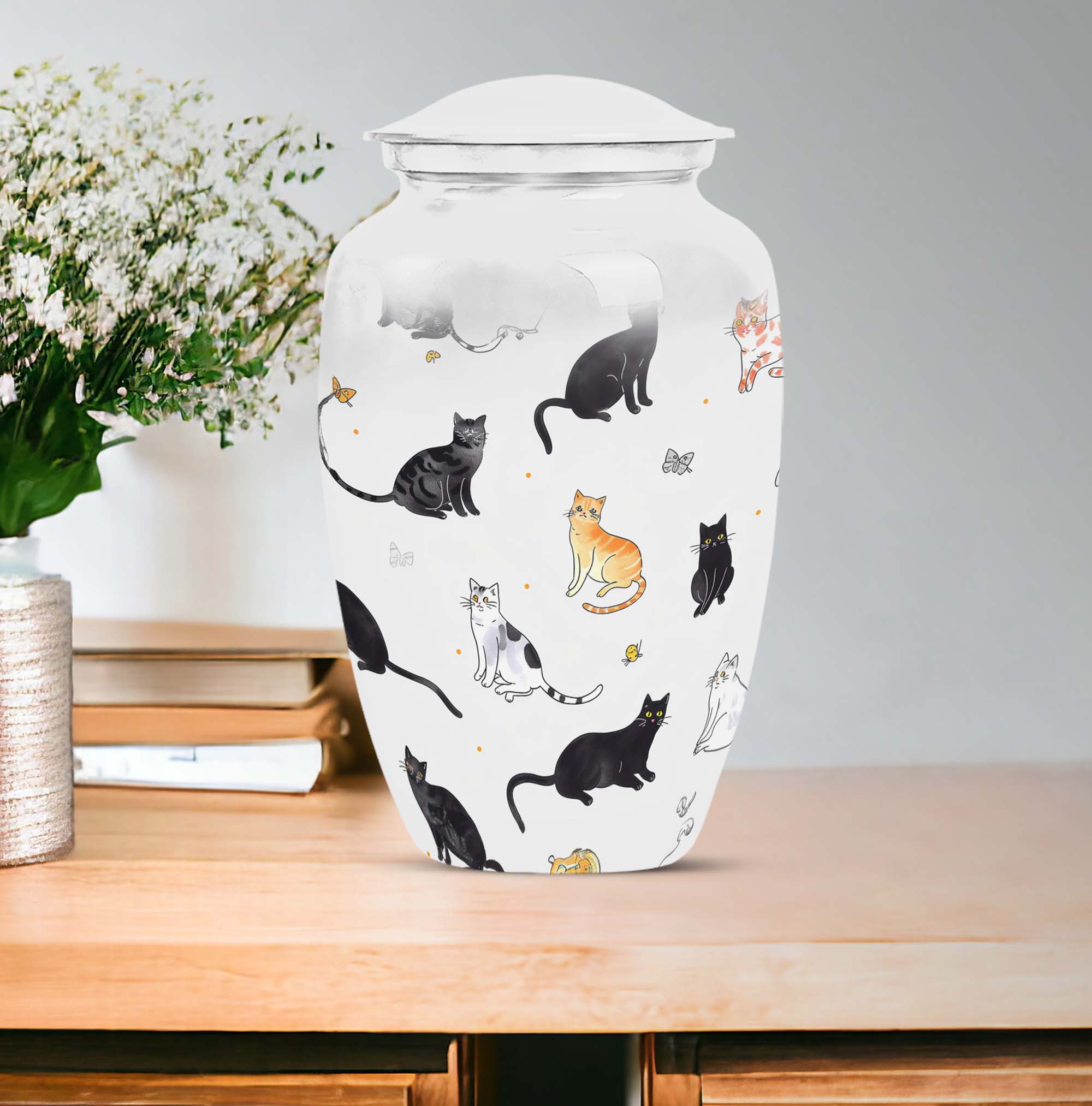 Discover comfort in memory with our PAWS funeral Urn, consciously designed to be a perfect resting place for honoring the life of your loved one. This distinguished urn is crafted with an unsurpassed meld of attention and affection, to ensure they command the respect they deserve. This cremation urn is not just a receptacle for remains; it's a celebration of a life lived. Meticulously made from robust Aluminum, it outlives time itself enduring as an eternal token of memories. Our monumental 10-inch urn comfortably accommodates 200 cubic inches of precious ashes, safeguarding them securely. It weighs a fitting 3.3 pounds, testifying to its solid substance. This remembrance charm comes with a complementary velvet pouch for the safekeeping of the ashes. Now you can personalize your token of love by engraving names, making it all the more special. This abstract-themed large urn brilliantly redefines funeral urns for men's ashes, combining decorative human ashes urns elegance with the comforting presence of a classic urn. This urn is not just a purchase; it's a priceless memento echoing fond memories.
