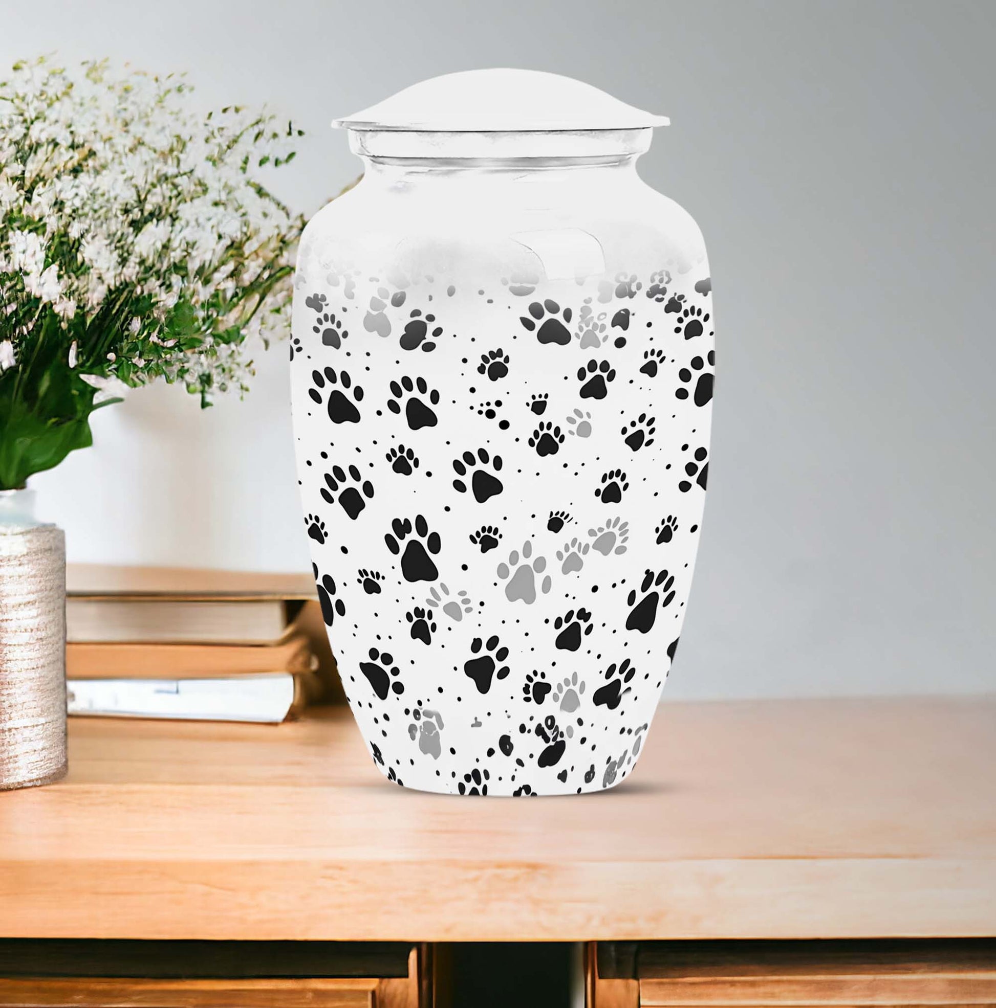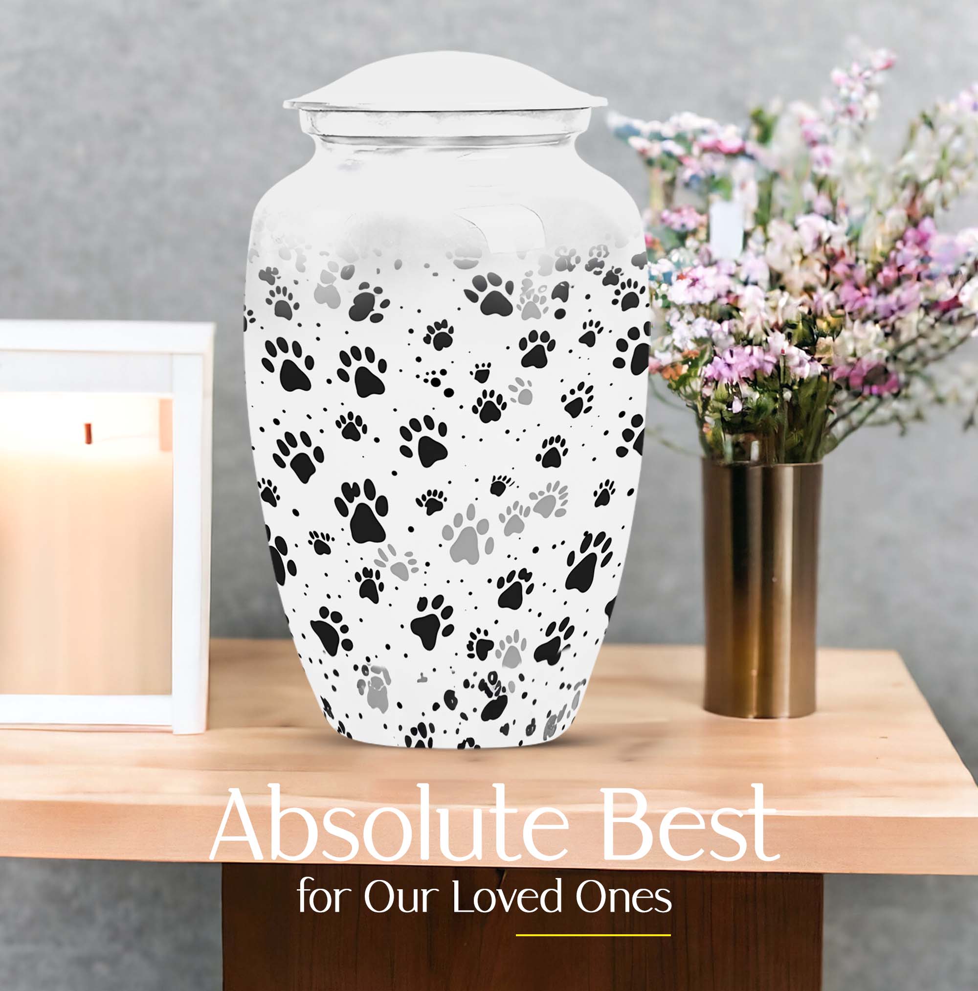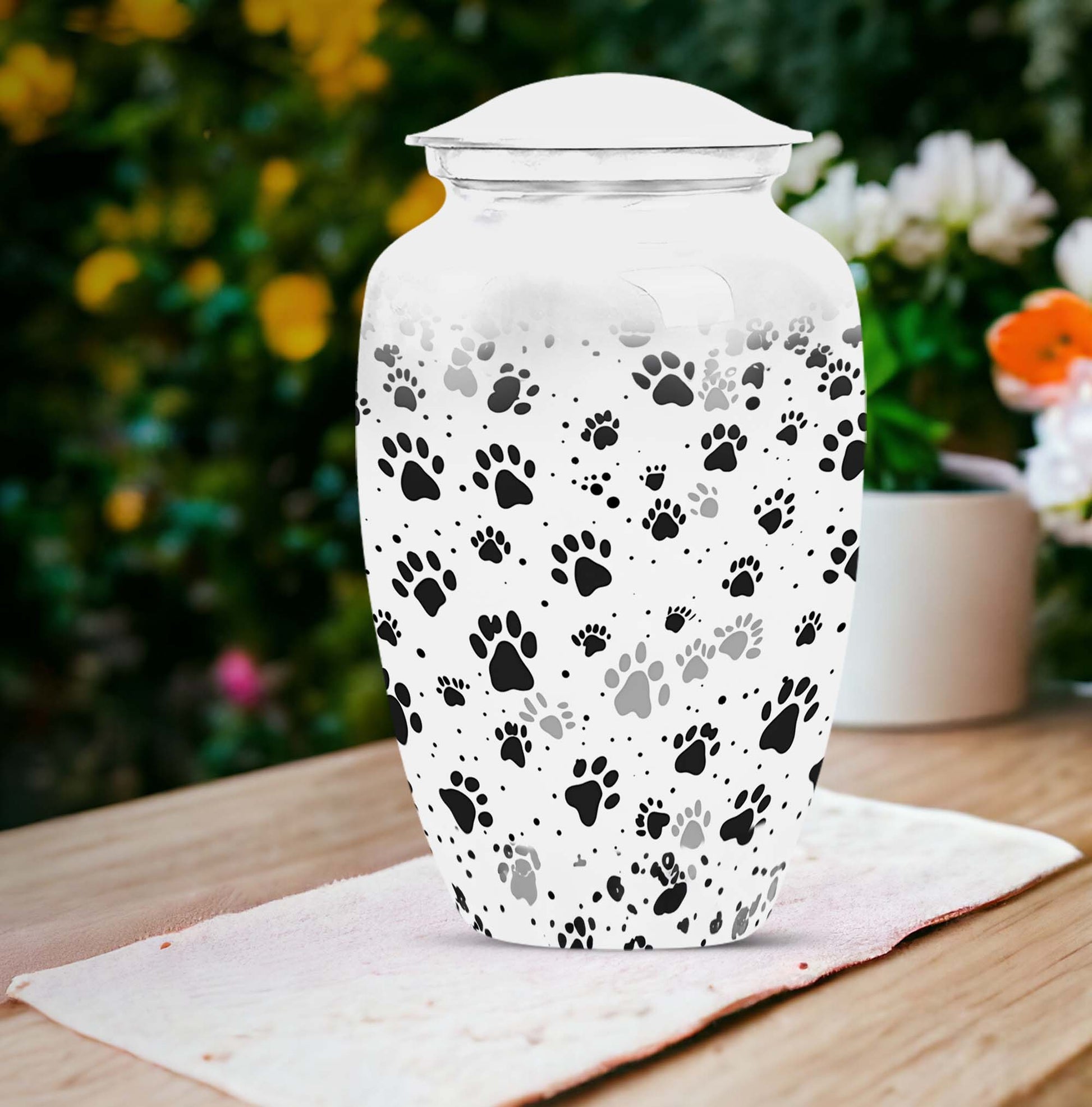 Experience the serenity and peace that comes with the PAWS Urn, a resonant tribute for cherished loved ones. Sized at an impressive 10 inches, this large urn is meticulously crafted from sturdy aluminium promising longevity and an undiminished aesthetic appeal. The package also includes a velvet pouch to carefully contain the ashes, ensuring a discrete and respectful homage. With a substantial capacity of 200 cubic inches, this urn seamlessly holds the ashes of male as well as female adults. The abstract theme of the urn, fused with its classic style, lends a unique artistic touch while offering an intimate connection to remember the departed. To render a more compassionate touch, customization options for engraved names are also available. This product is also referred to as a cremation urn and can be a suitable choice for those searching for companion urns for two adults. Weighing just 3.3 pounds, the PAWS Urn merges ease of handling with elegant design making it not merely an urn, but a tribute crafted with love.