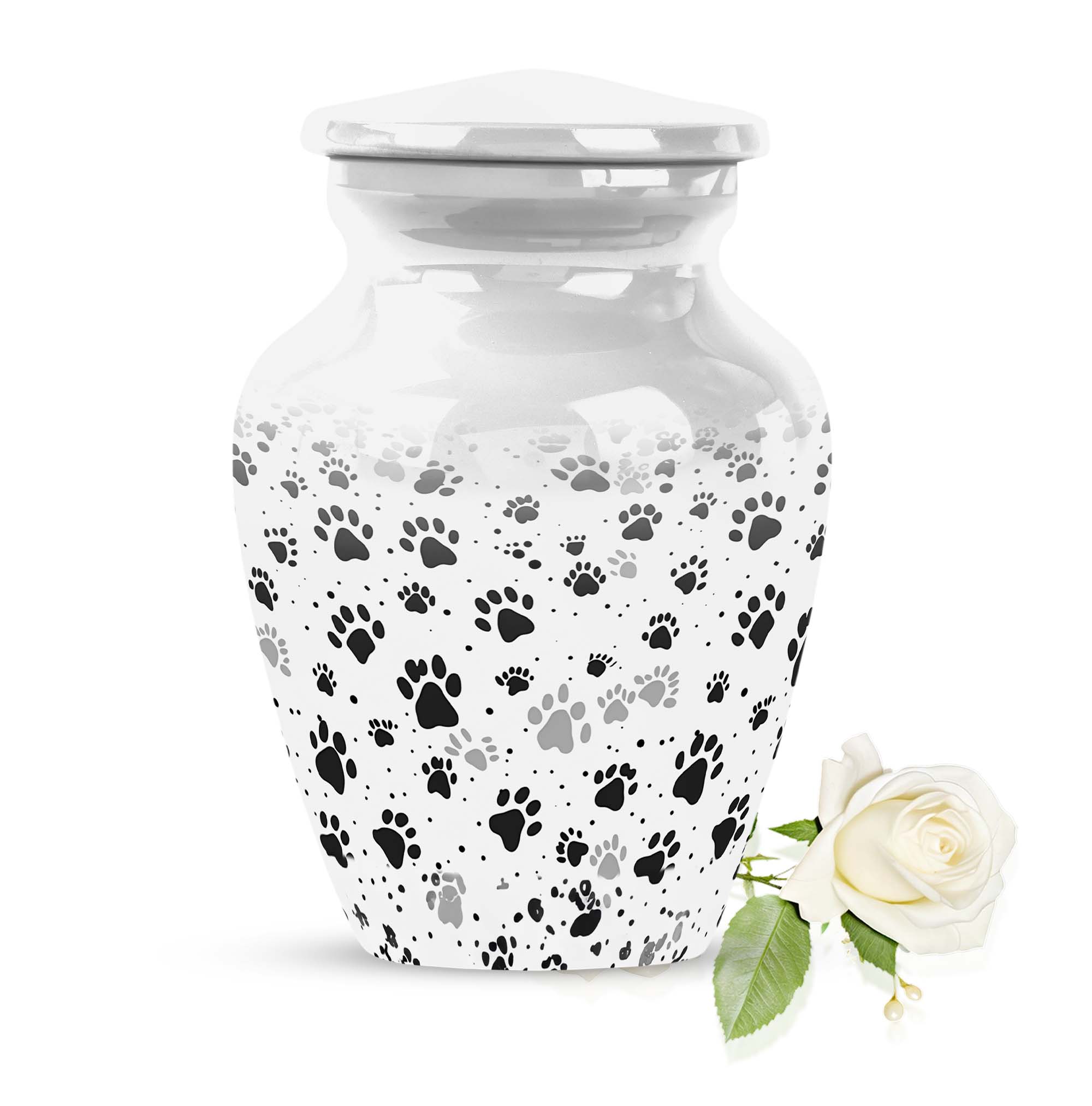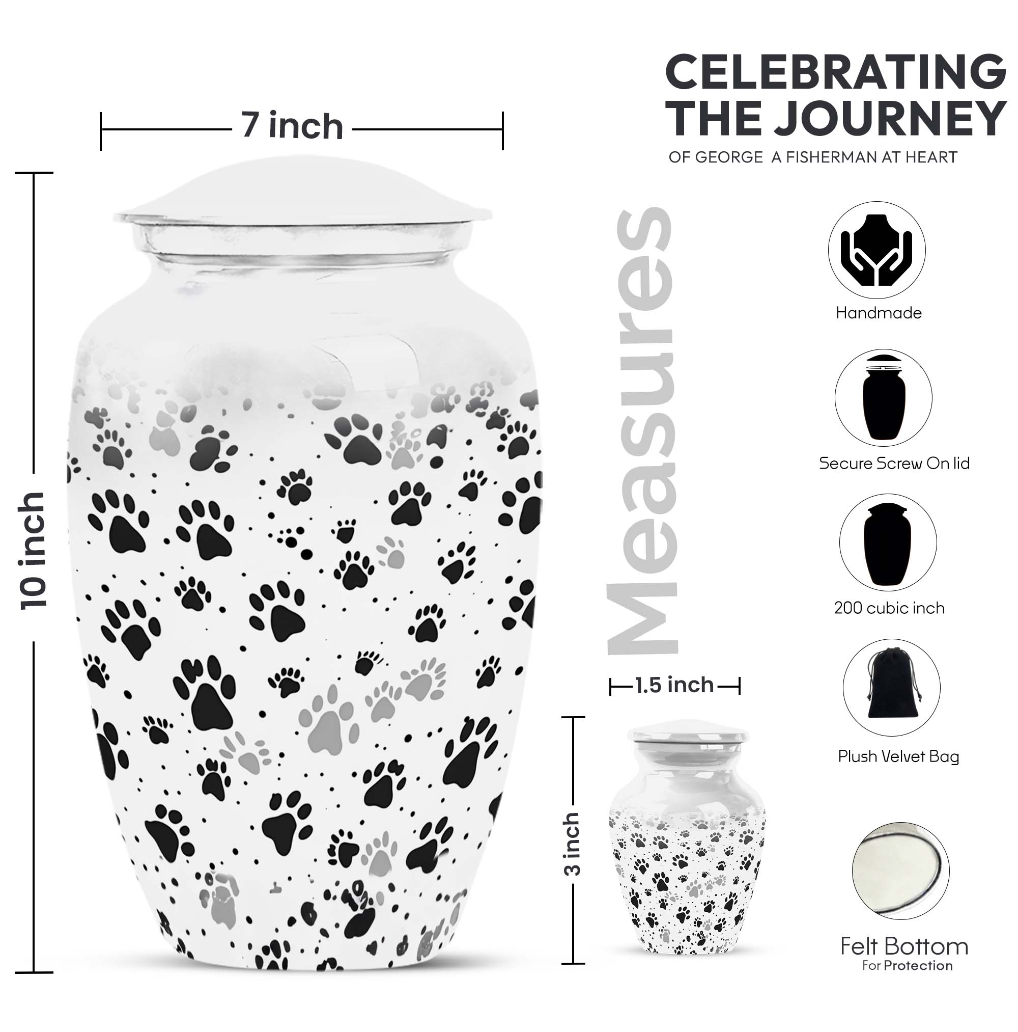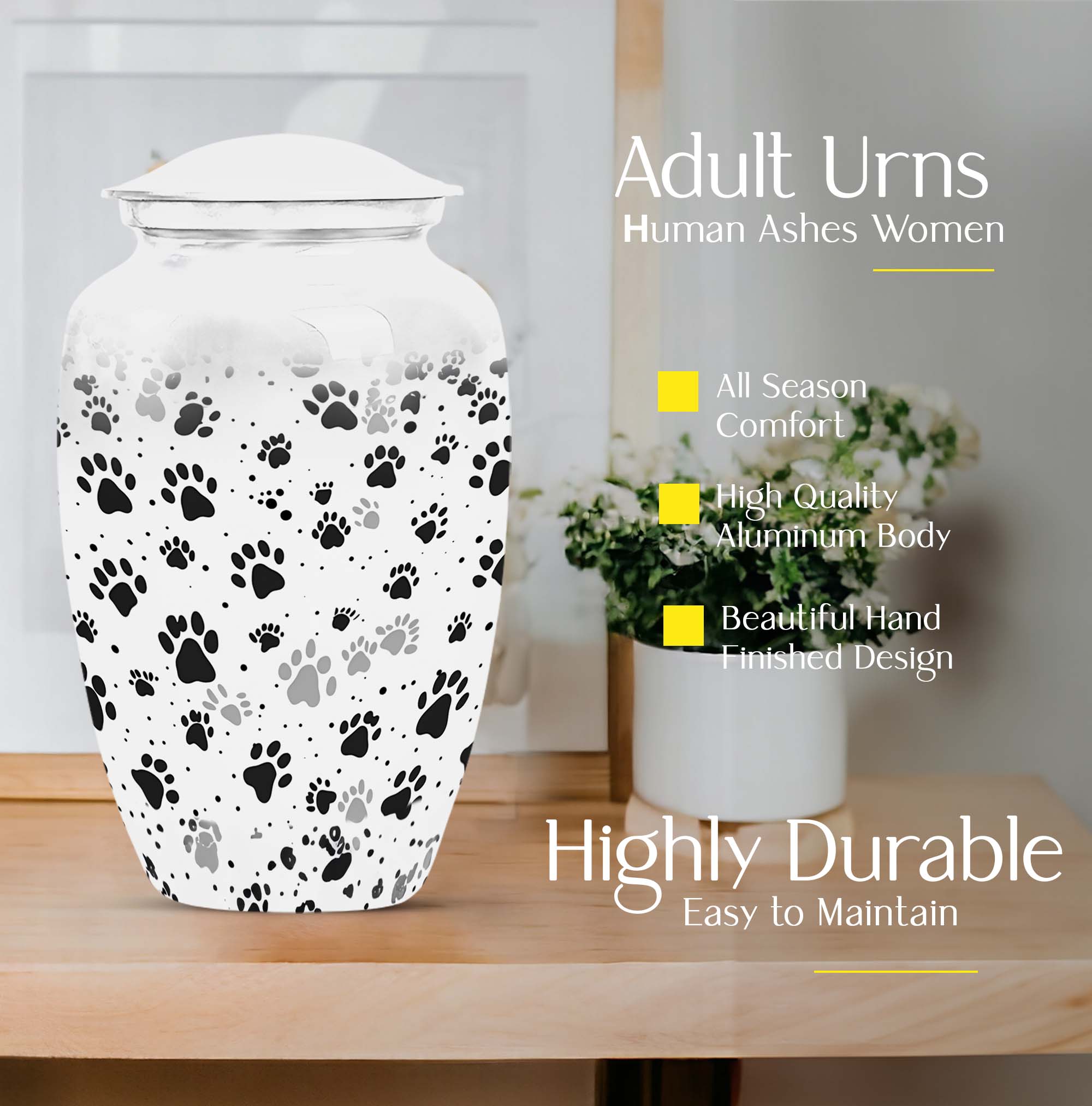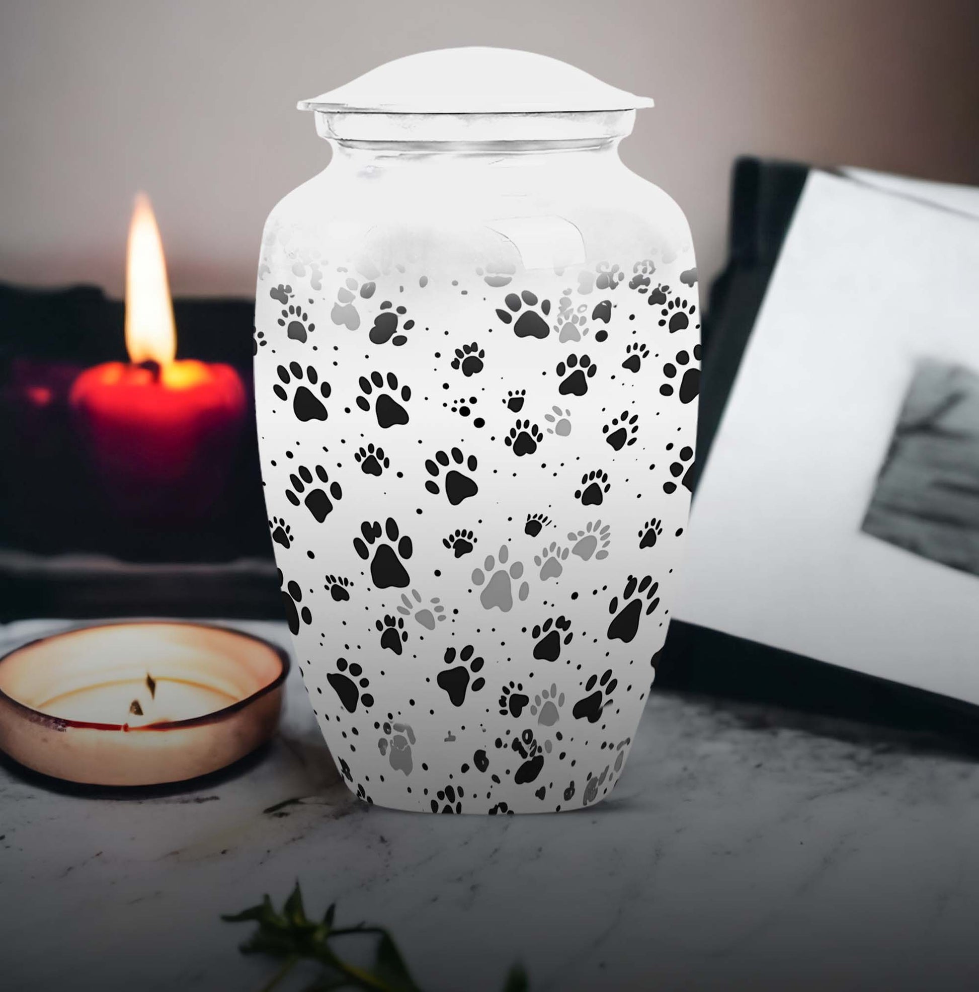 Experience the serenity and peace that comes with the PAWS Urn, a resonant tribute for cherished loved ones. Sized at an impressive 10 inches, this large urn is meticulously crafted from sturdy aluminium promising longevity and an undiminished aesthetic appeal. The package also includes a velvet pouch to carefully contain the ashes, ensuring a discrete and respectful homage. With a substantial capacity of 200 cubic inches, this urn seamlessly holds the ashes of male as well as female adults. The abstract theme of the urn, fused with its classic style, lends a unique artistic touch while offering an intimate connection to remember the departed. To render a more compassionate touch, customization options for engraved names are also available. This product is also referred to as a cremation urn and can be a suitable choice for those searching for companion urns for two adults. Weighing just 3.3 pounds, the PAWS Urn merges ease of handling with elegant design making it not merely an urn, but a tribute crafted with love.