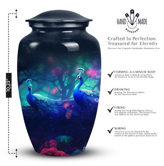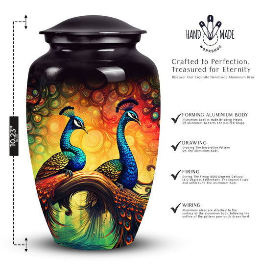 Our Peacock cremation urns for ashes are designed to honor life with elegance, dignity, and symbolism. The peacock, known for its radiant feathers and timeless beauty, represents renewal, immortality, and everlasting love, making these urns a meaningful tribute to a cherished soul.