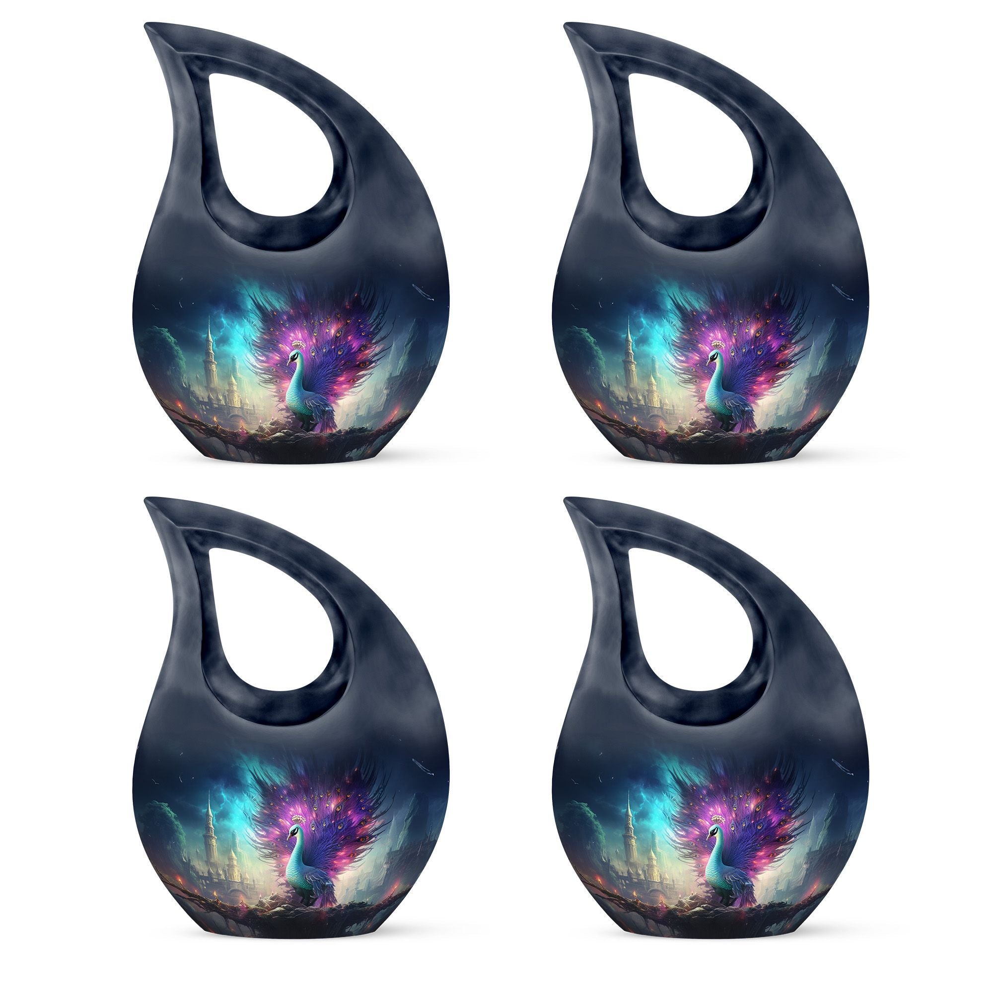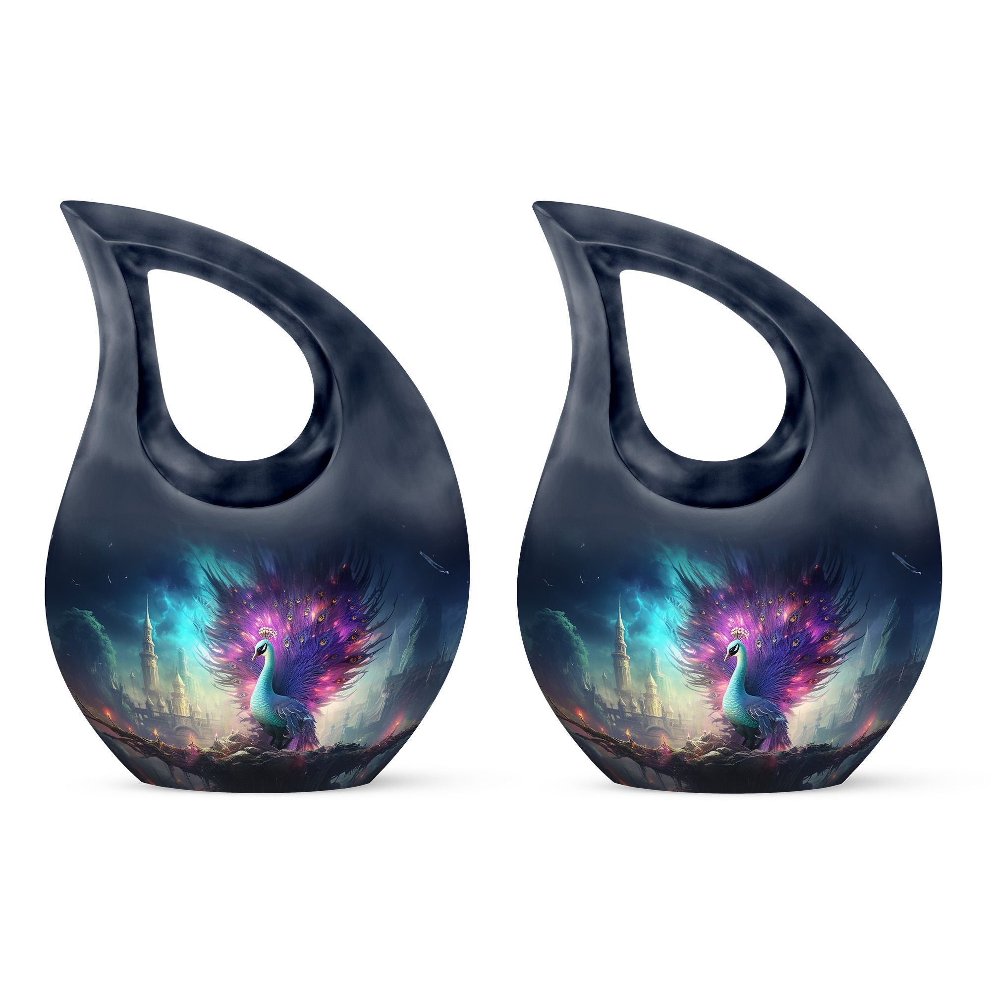 Introducing our magnificent Peacock Urn - a truly serene addition to our collection of Garden Urns for Ashes. Measuring 10 inches in stature, this urn blends elegance with capacity, comfortably housing 200 cubic inches of ashes. Its robust weight of 3.3 pounds ensures stability, while the use of high-quality aluminium fosters durability. Its Cross Drop engraving echoes a touch of solemnity, honouring the memory of the departed soul. The package also arrives with a soft velvet pouch, providing a secure containment for your loved ones. Our Large Urns, rather than just being cremation urns or burial urns, are also able to be personalized, allowing you to engrave names as an extra element of remembrance. Dive into the world of memorial urns with our unrivaled selection, and find solace in knowing your loved one has found a beautiful resting place. With keywords such as 'Personalized Urns for Ashes' and 'Best Urns for Ashes', this product is not just a haven of memories but also an epitome of aesthetic appeal.