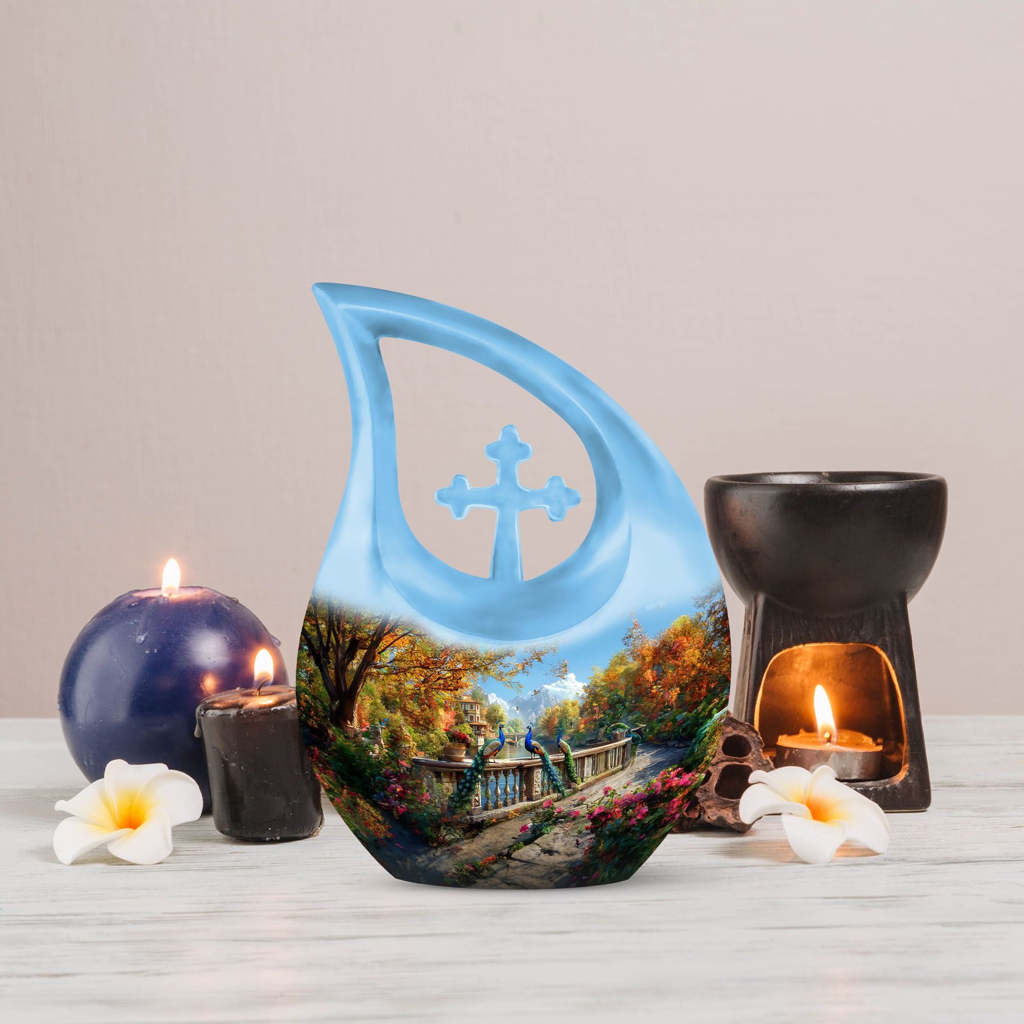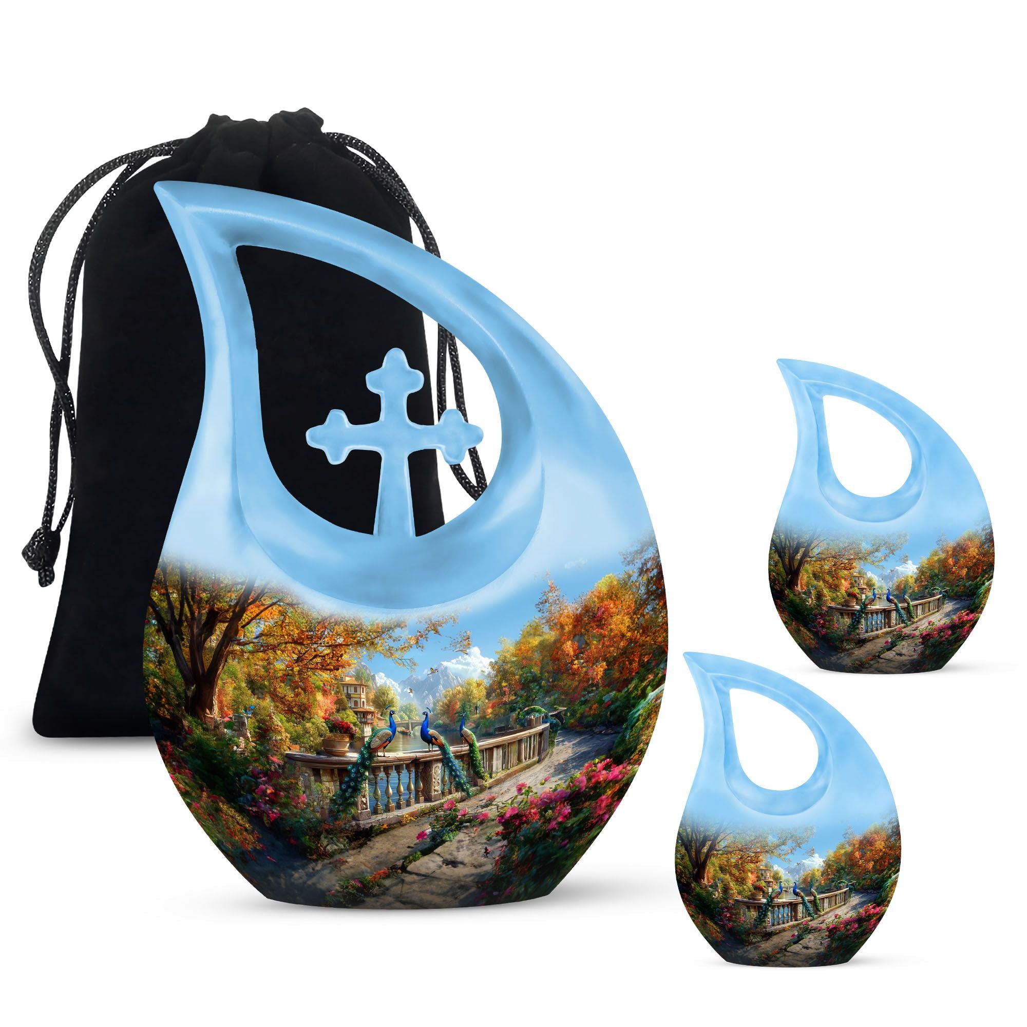 The Peacock Cremation Urn offers a beautiful and dignified tribute for honoring the memory of Mom, Dad, or any beloved family member. With its vibrant feather artwork symbolizing renewal and everlasting peace, it serves as a meaningful memorial urn for human ashes and a comforting choice for families.