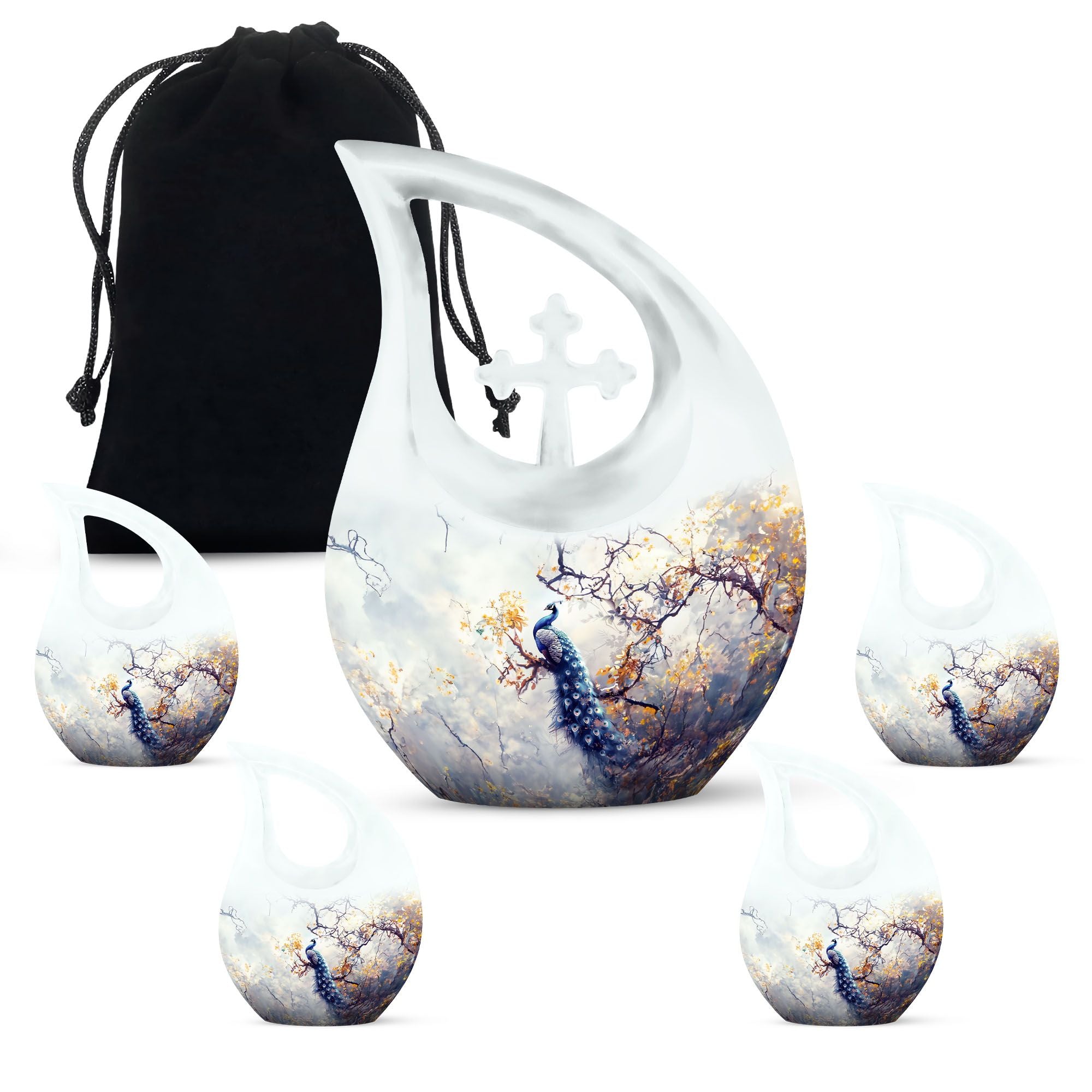 Expertly crafted from durable aluminum, this urn for cremation features a rich peacock-inspired pattern with intricate feather detailing. Its secure screw-top lid ensures ashes remain protected, while the 10-inch height and full adult capacity make it suitable for small urns for cremation ashes, adult size cremation urns, or keepsake cremation urns for human ashes. Whether selected as a cremation keepsake urns for human ashes adult or paired with mini cremation urns for shared remembrance, it offers both beauty and reliability.