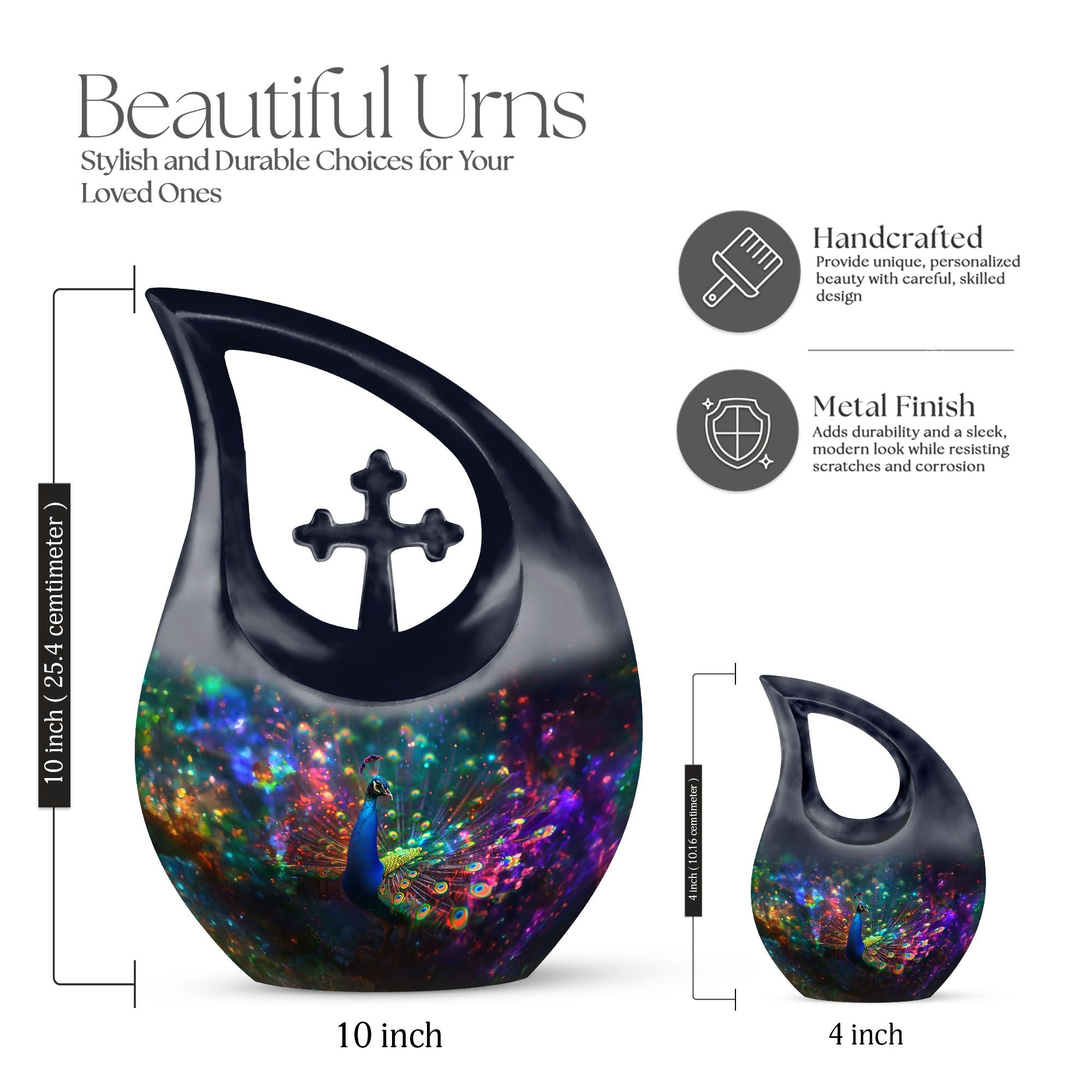 Crafted from durable aluminium, this urn features vibrant peacock artwork that symbolizes renewal, strength, and everlasting love. Its smooth finish and secure screw-top lid ensure safe keeping, making it ideal for families searching for an urn for ashes for women, cremation urns for women, or a meaningful option for honoring fathers through cremation urns for men. It also pairs beautifully with companion pieces such as a small urn for ashes for women, an urn for ashes for women small, or keepsake urns for women. This design supports remembrance needs for adult urns for human ashes men, funeral urns for adult ashes men, and adult urns for human ashes women, while also coordinating with mini small urns for men for shared memories.
