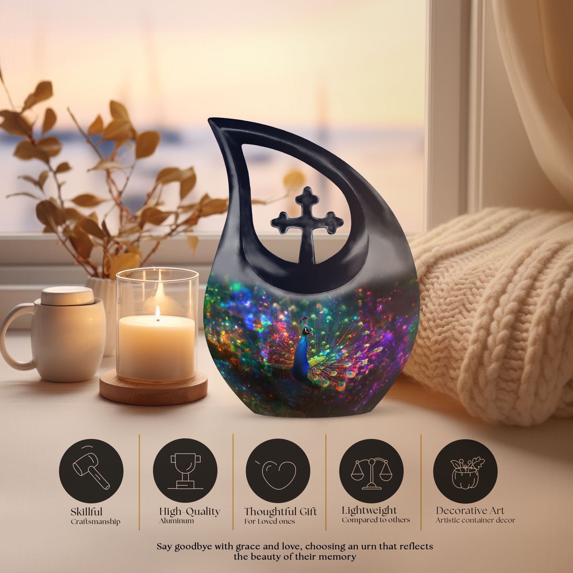 Choosing a memorial that truly reflects the beauty and spirit of your loved one is a tender and emotional decision. This Colorful Peacock Cremation Urn offers a heartfelt tribute, designed as a large decorative urn for human ashes and perfect for honoring both women and men with dignity and grace.