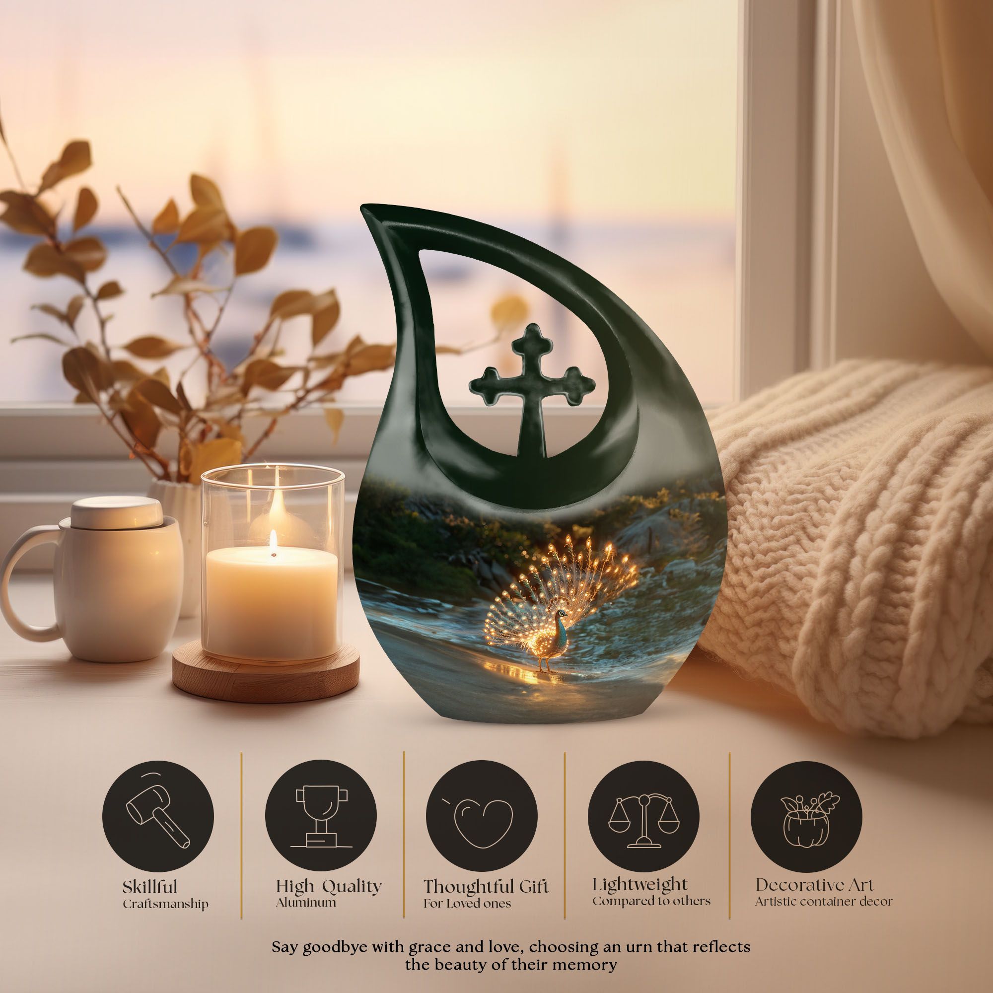 Selecting a memorial that reflects love, dignity, and cherished memories is a deeply emotional decision. This Peacock Cremation Urn is designed as a small urn for human ashes for male and female, offering a meaningful way to keep a symbolic portion of remains close while pairing beautifully with any large urn for ashes adult male or large urn for ashes for women.