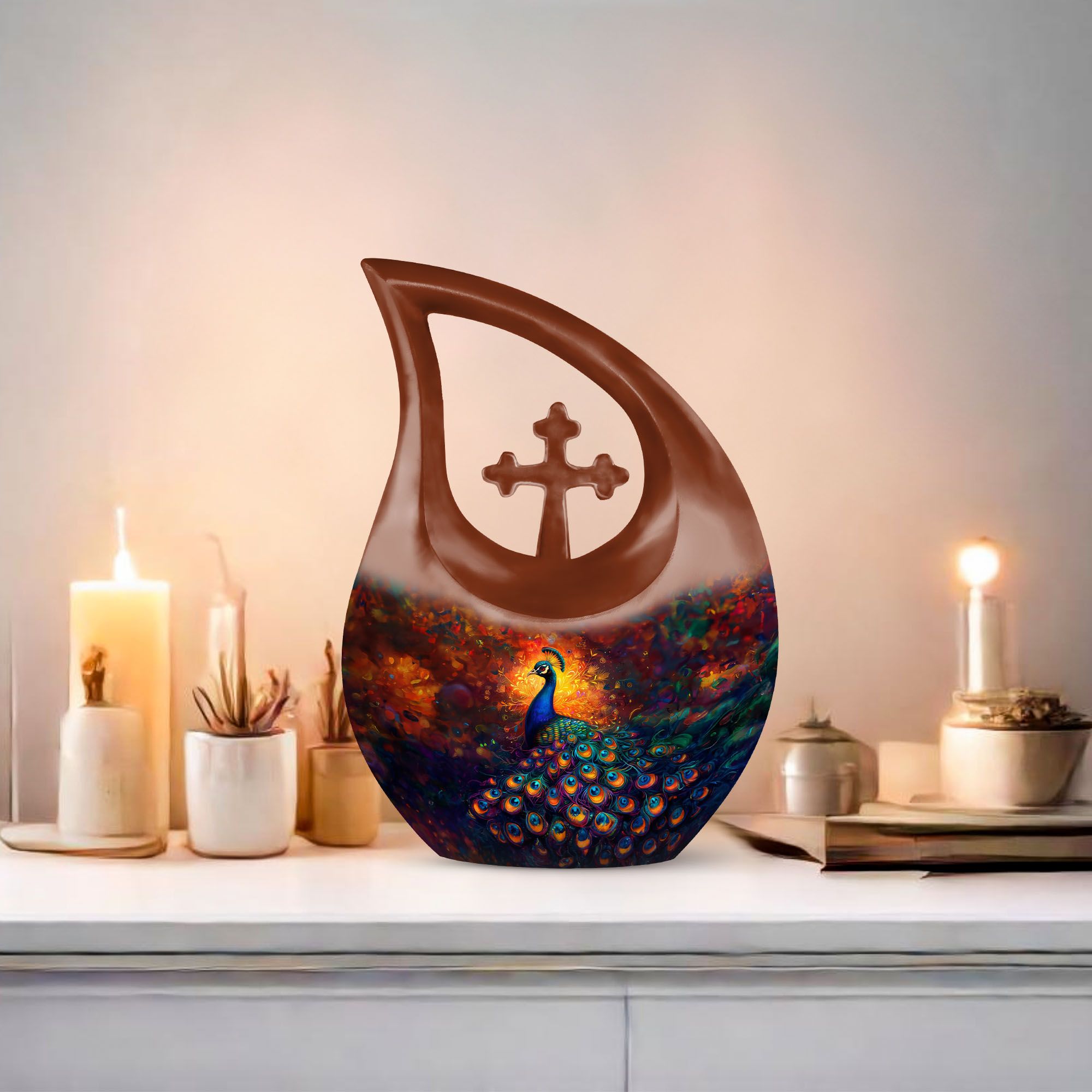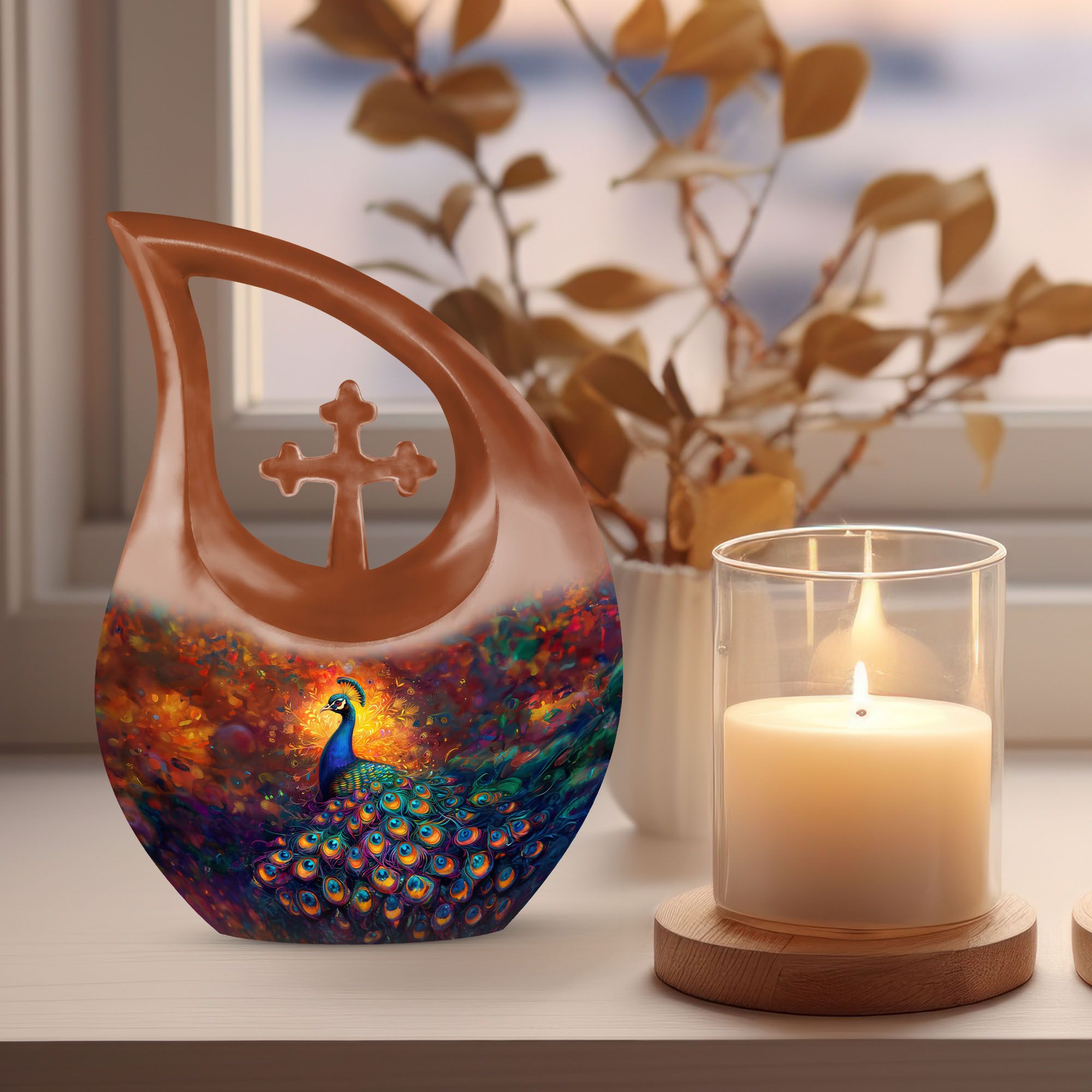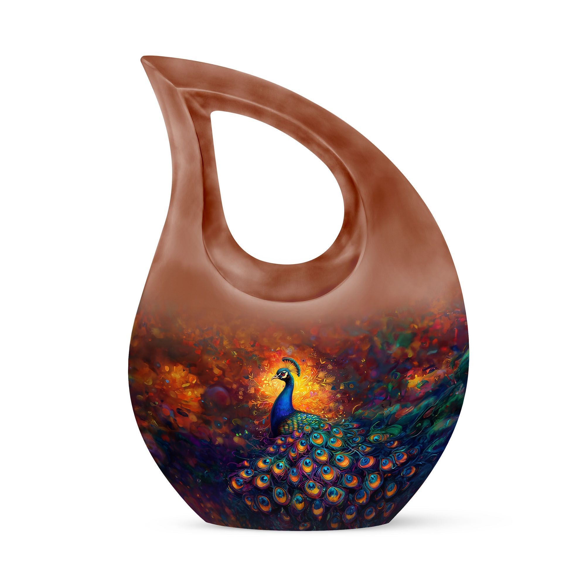 The Peacock Memorial Urn offers a heartfelt way to honor a cherished life, bringing comfort to families needing a cremation urn for human ashes or an adult size cremation urn. Designed with rich, graceful peacock detailing, it symbolizes beauty, dignity, and everlasting remembrance.
