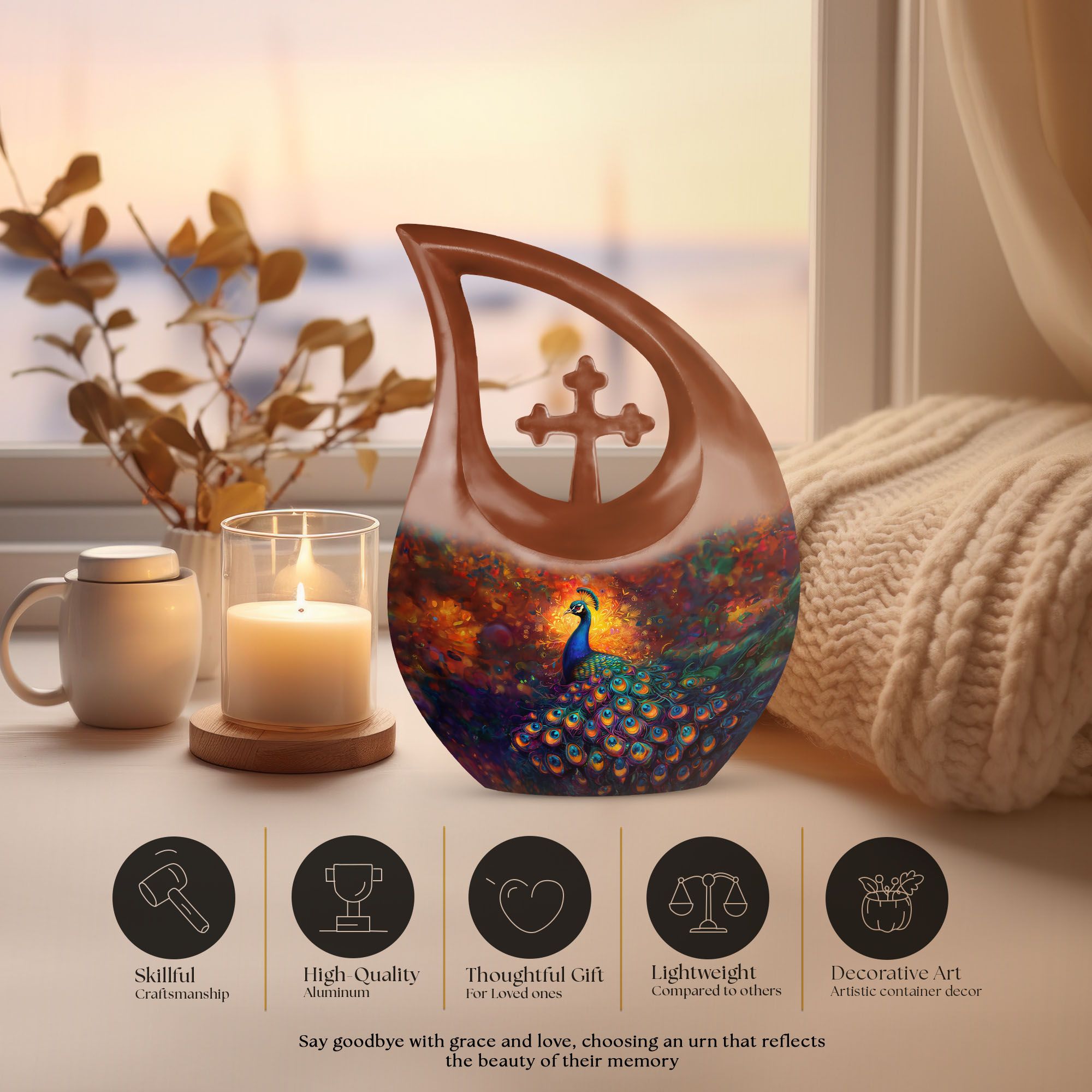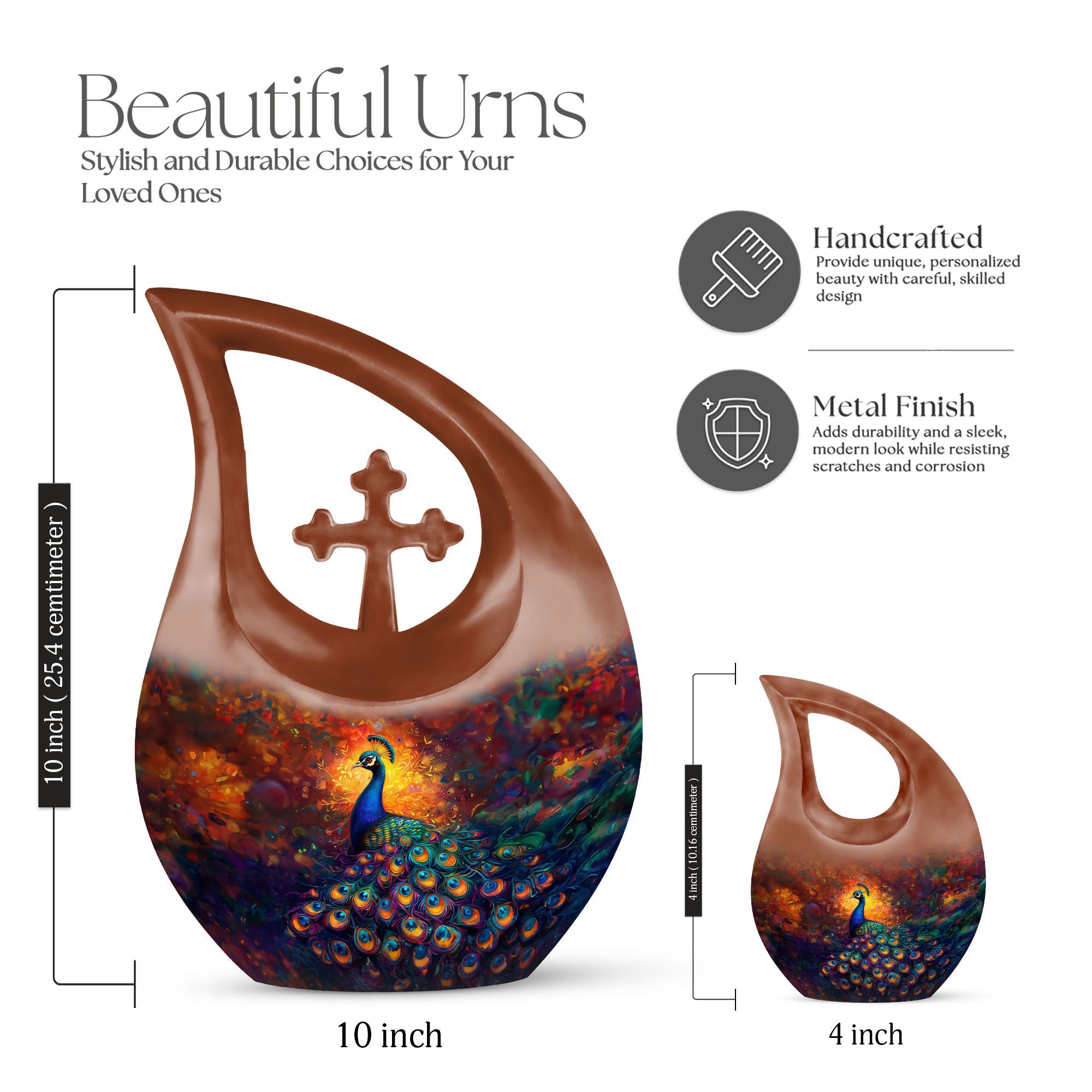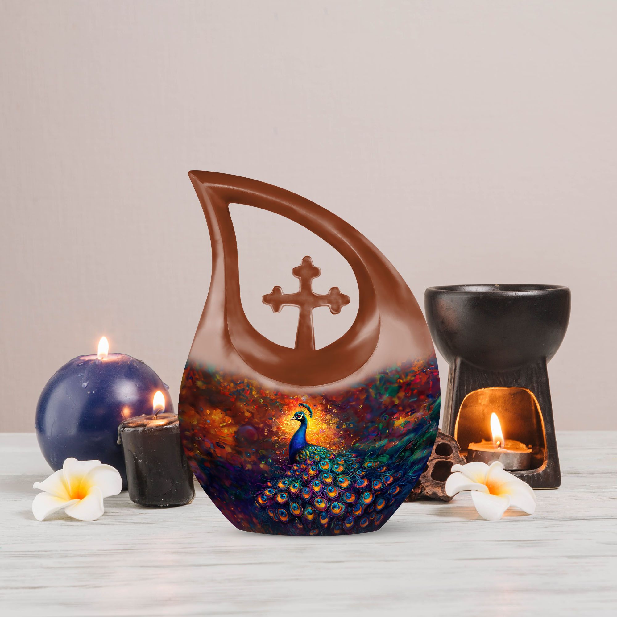 The Peacock Memorial Urn offers a heartfelt way to honor a cherished life, bringing comfort to families needing a cremation urn for human ashes or an adult size cremation urn. Designed with rich, graceful peacock detailing, it symbolizes beauty, dignity, and everlasting remembrance.