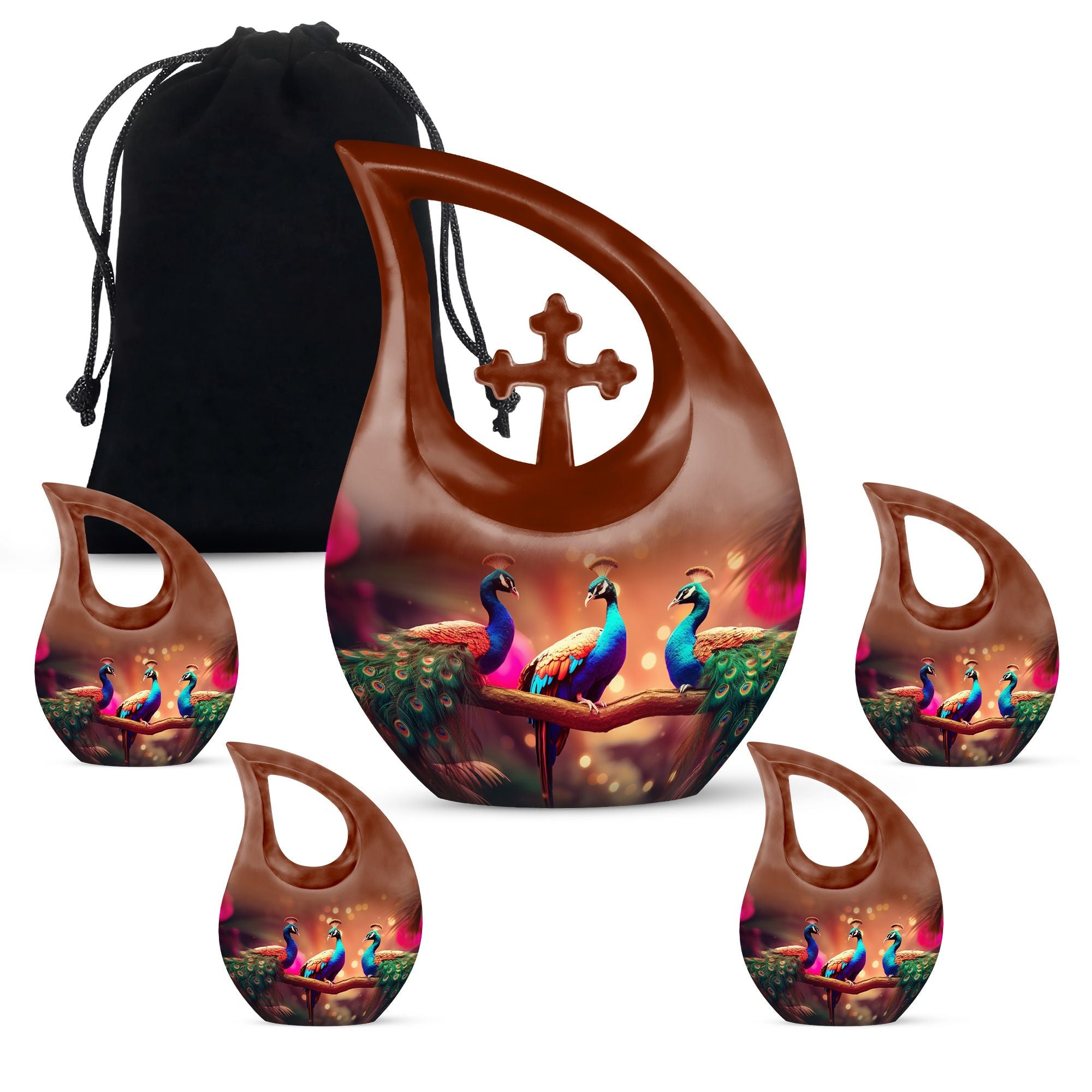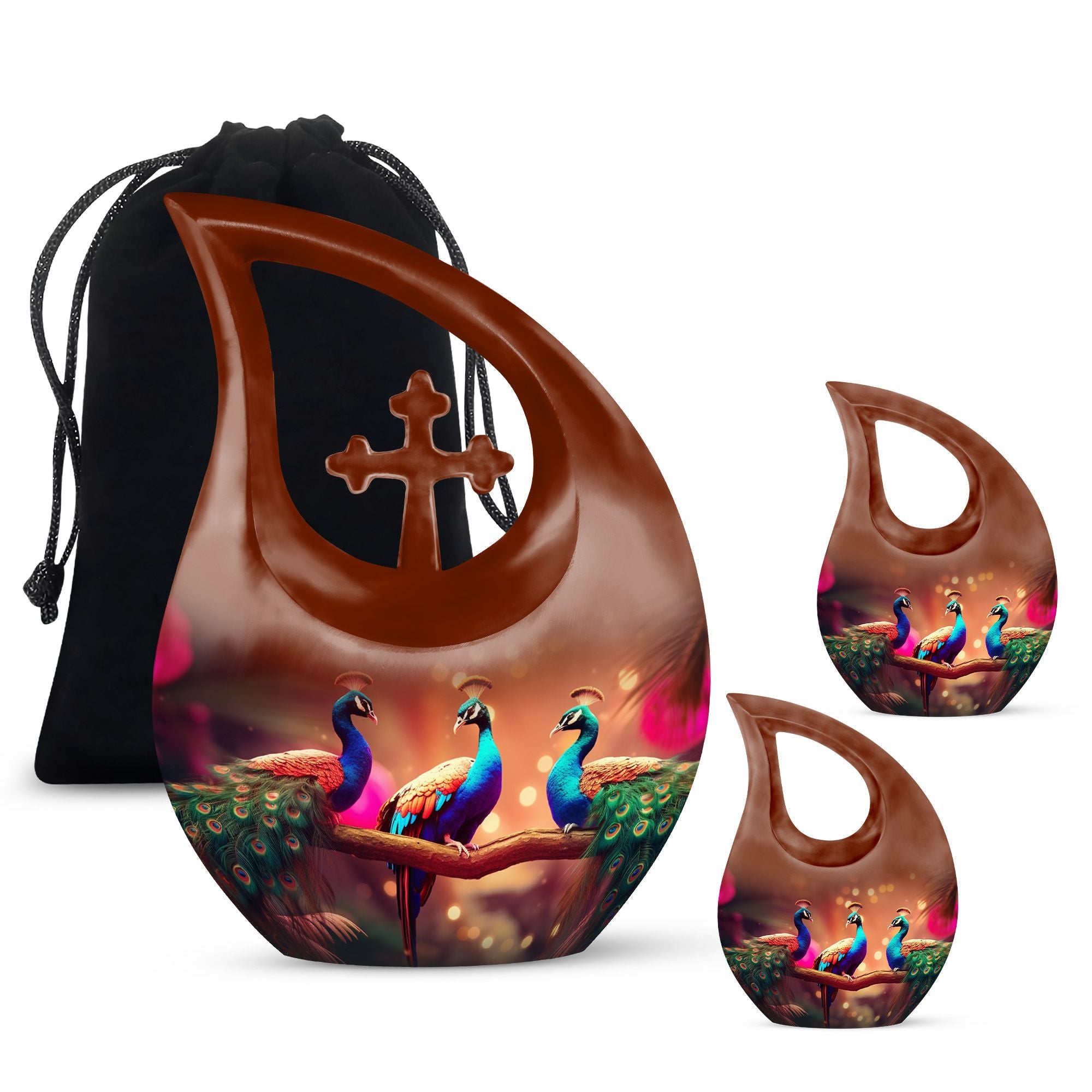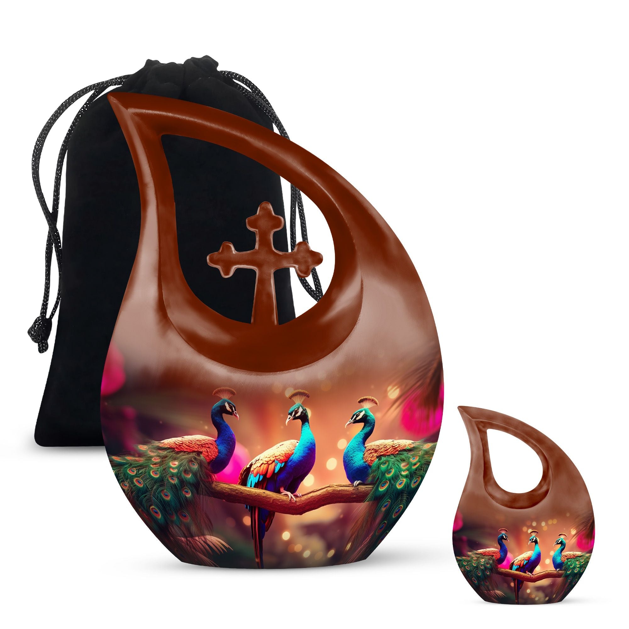Cherish everlasting memories with the Three Peacocks Cremation Urn for Human Ashes, a breathtaking symbol of love, unity, and remembrance. The elegant brown teardrop design, adorned with three radiant peacocks, represents strength, renewal, and everlasting connection. This urn offers a meaningful way to celebrate your loved one’s life, ideal for those seeking adult cremation urns or cremation urns for ashes for men that blend grace and symbolism.