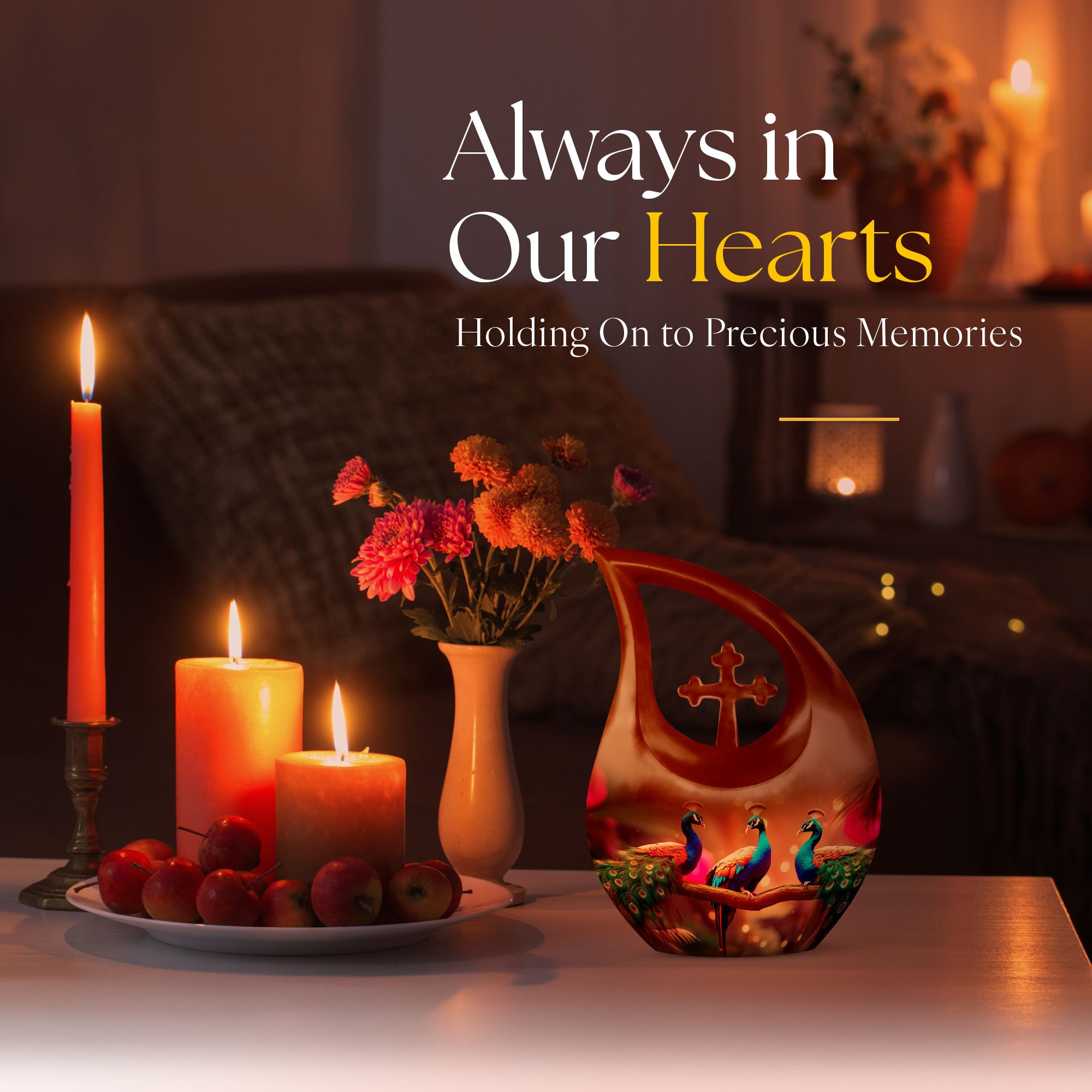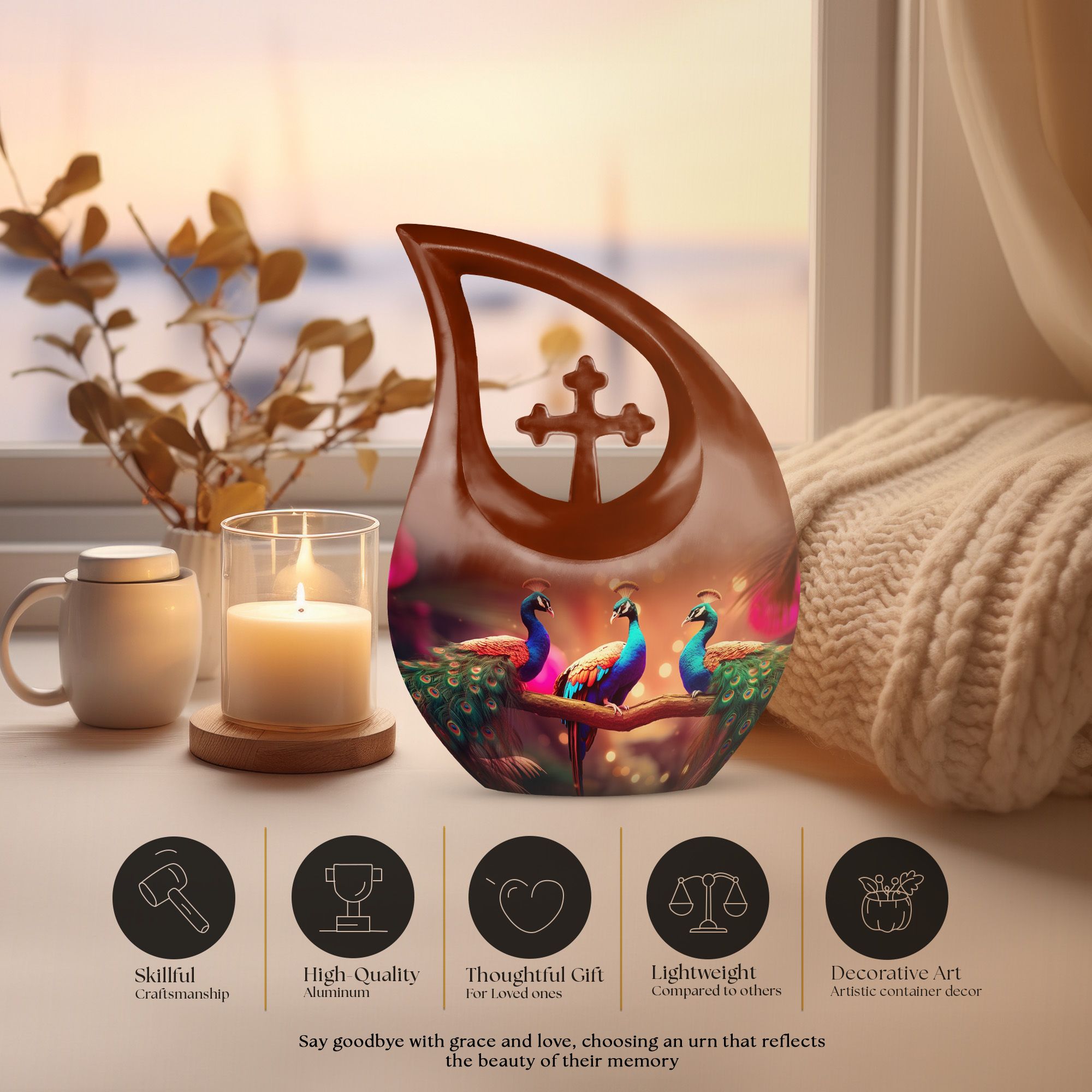 The Three Peacocks Cremation Urn serves as both a work of art and a vessel of remembrance — a dignified urn for cremation ashes that beautifully captures the spirit of those who live forever in our hearts.