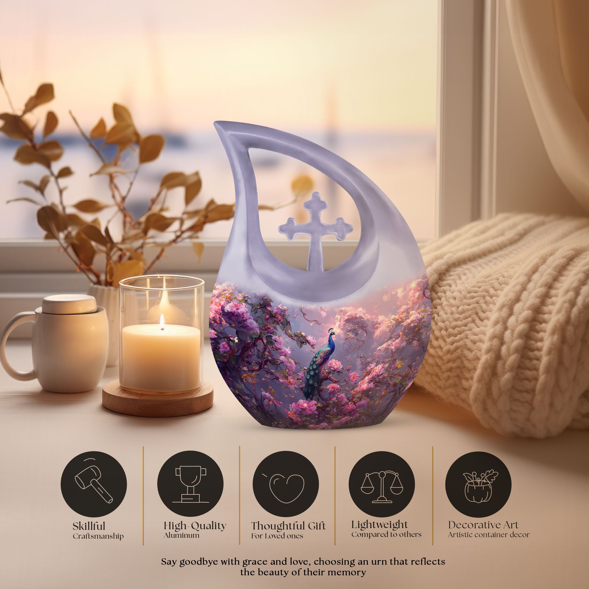 The Peacock Burial Urn offers a heartfelt and elegant way to honor a loved one, providing comfort to families seeking urns for burial in ground or cremation urns for burial. Its vibrant peacock-inspired artwork symbolizes renewal, grace, and everlasting remembrance, making it a meaningful personalized cremation urn for human ashes for adult.