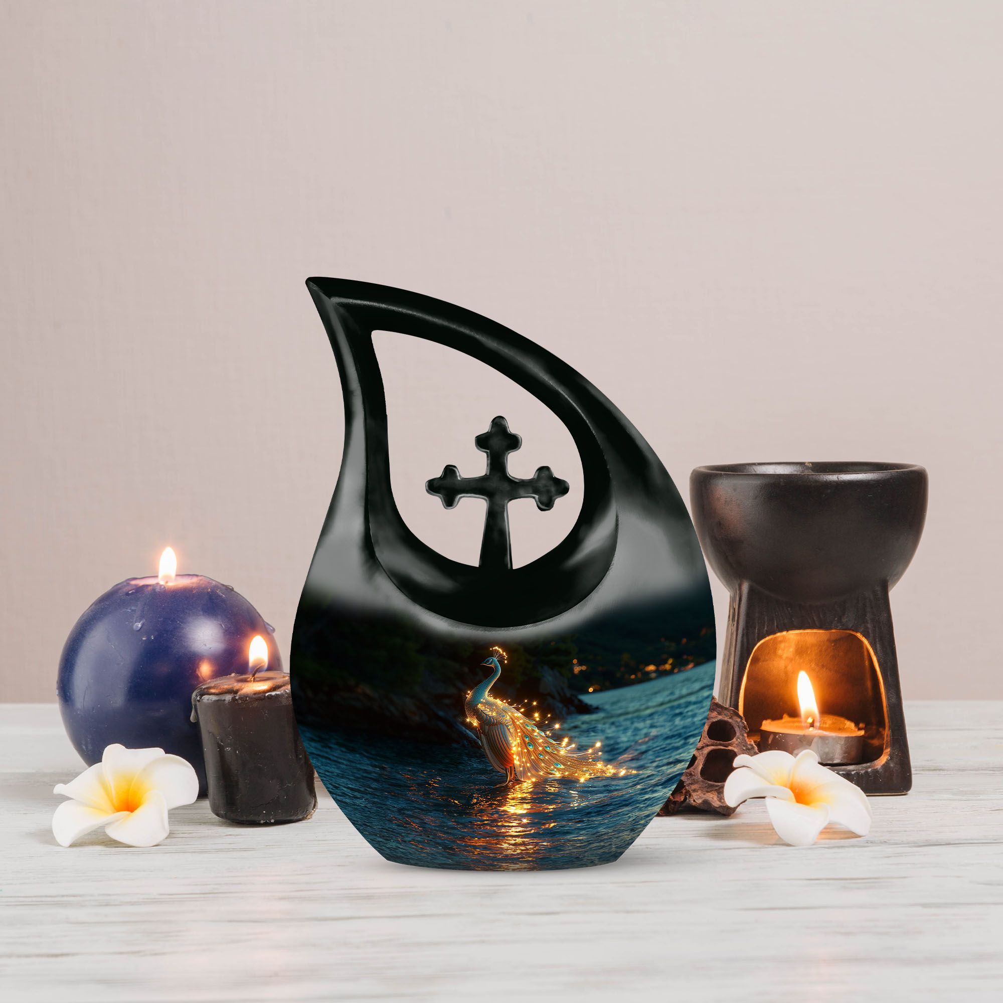 Choosing a resting place for someone you love is a deeply emotional decision, and this Peacock Cremation Urn offers a peaceful and meaningful way to honor their memory. Designed as a small urn for ashes with graceful detailing, it provides comfort for families seeking urn ashes for women, adult urns women, or a symbolic tribute that reflects beauty and serenity.