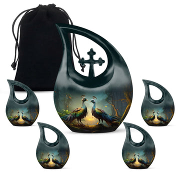 Celebrate a life filled with love and beauty through the Peacock Pair Cremation Urns for Human Ashes — a heartfelt cremation memorial symbolizing unity, grace, and everlasting remembrance. Designed for both mom and dad, this exquisite cremation urn for adult reflects harmony and devotion through its intricate peacock pair design, representing togetherness beyond time.