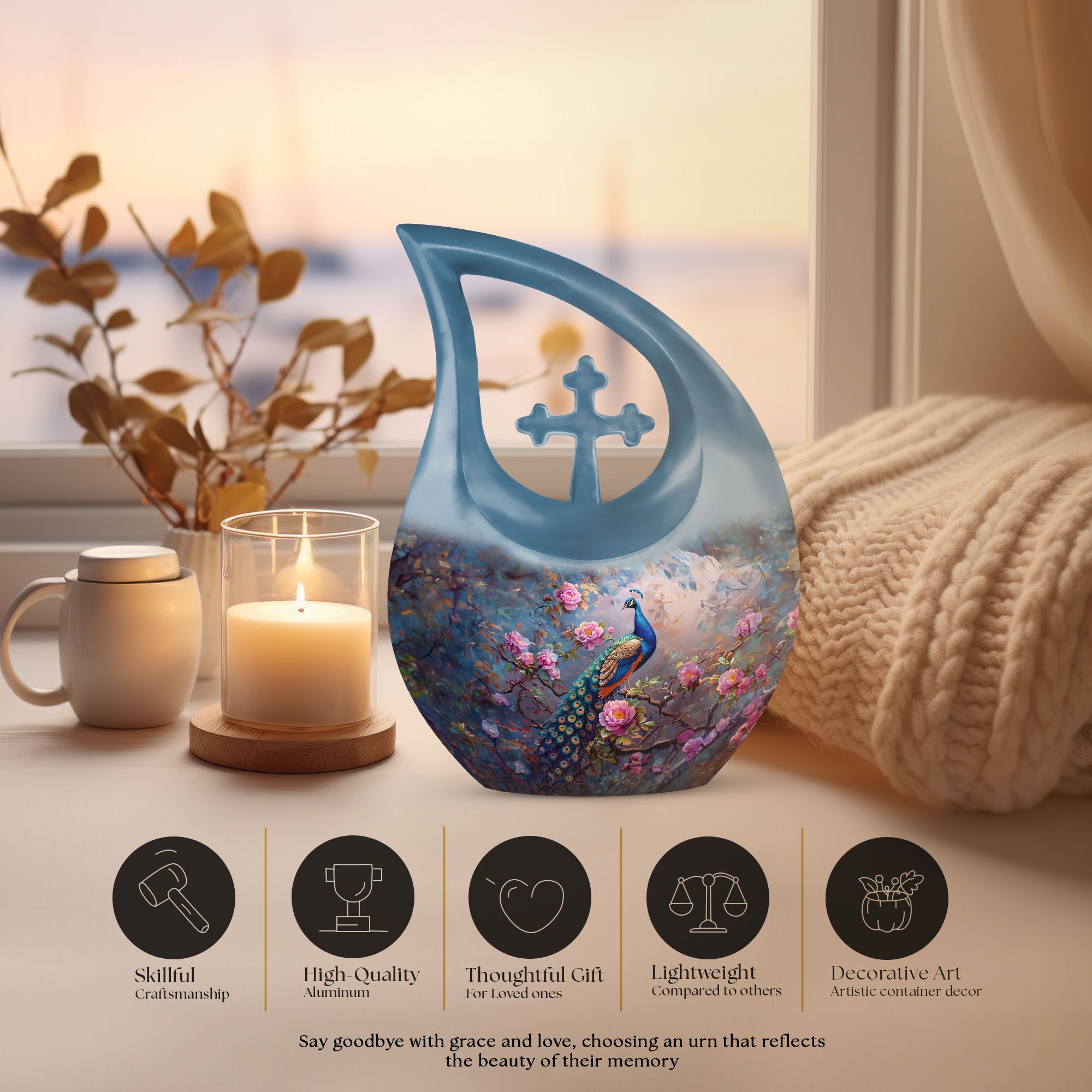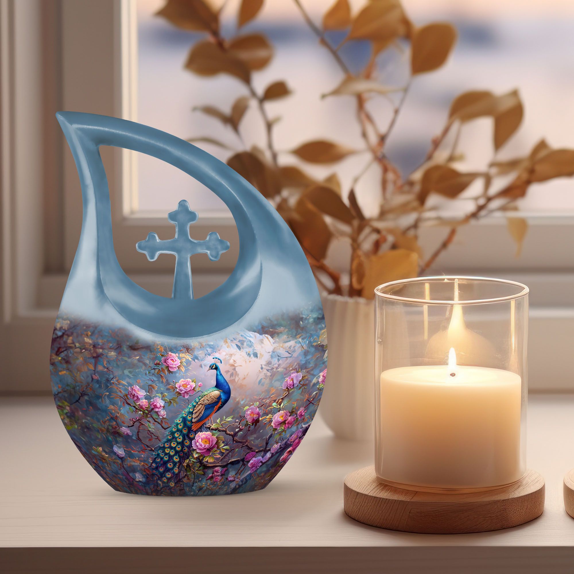 The Peacock Cremation Urn offers a heartfelt and meaningful way to honor a loved one, making it a beautiful option for families seeking a small urn for ashes keepsake mom or small urns for human ashes keepsake. Designed with vibrant peacock detailing, it symbolizes grace, remembrance, and enduring love.