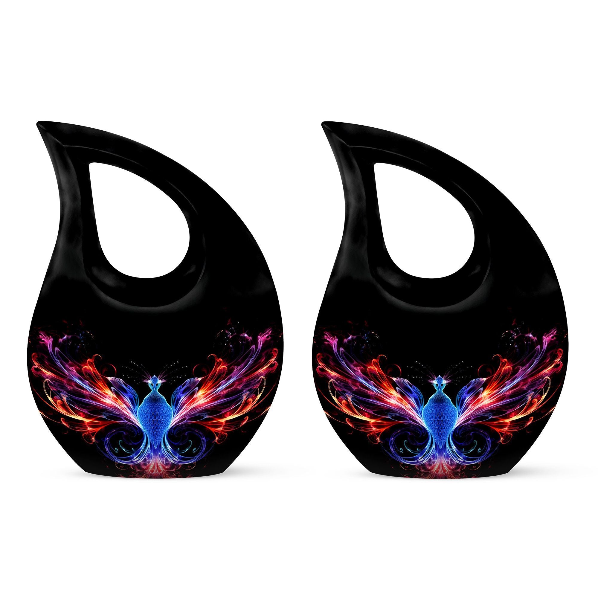 Expertly handcrafted from durable aluminum, this large cremation urn features a deep black body illuminated by vibrant peacock hues swirling in abstract nebula patterns — symbolizing life, eternity, and transformation. The secure screw-top lid ensures ashes are safely preserved, while the elegant design makes this large urn for ashes for women or men a perfect centerpiece for memorial displays or burial ceremonies.