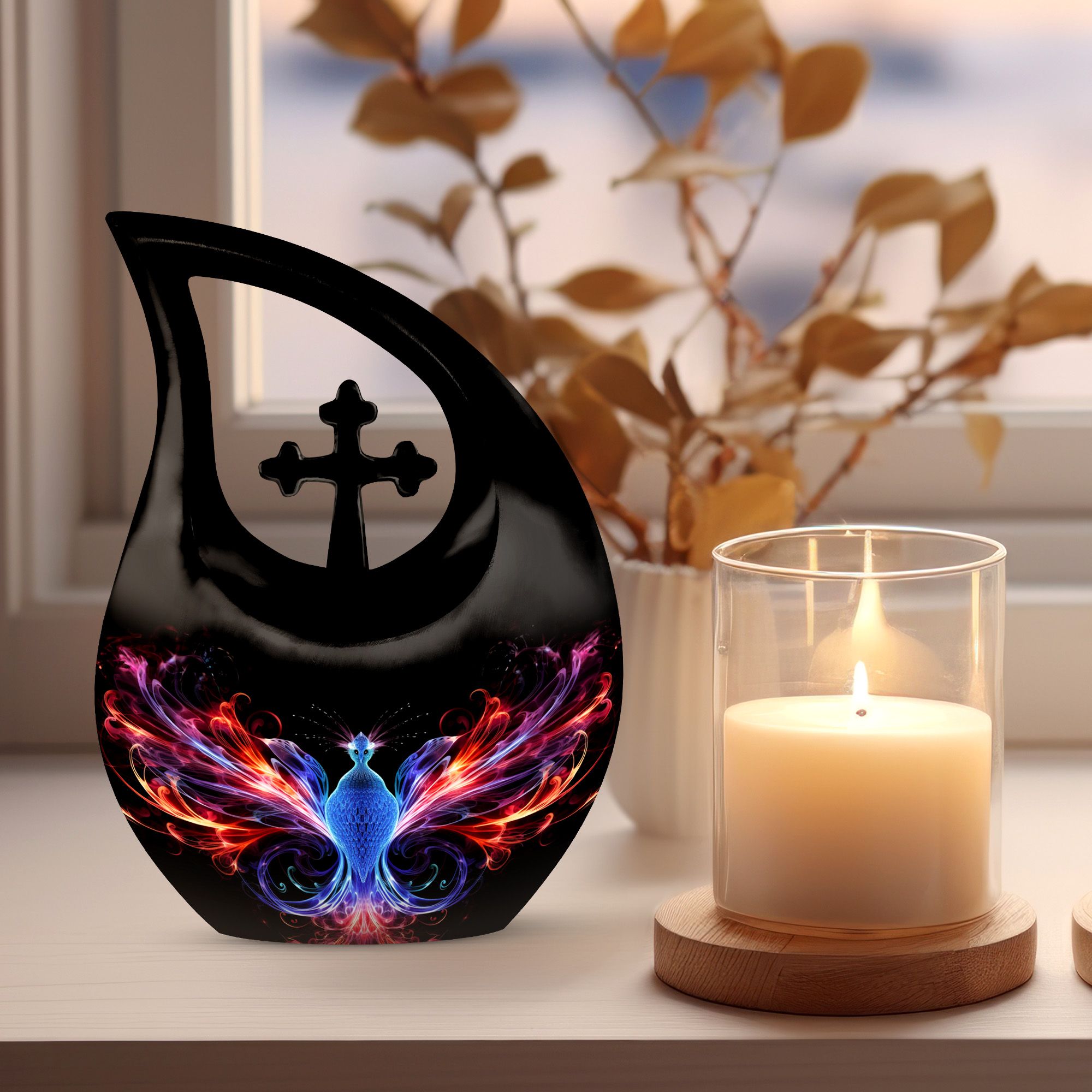 The radiant peacock design symbolizes renewal, dignity, and the beauty of the soul’s eternal flight. This adult large urn stands as more than a resting place — it is a reflection of love, honor, and the enduring light of cherished memories.