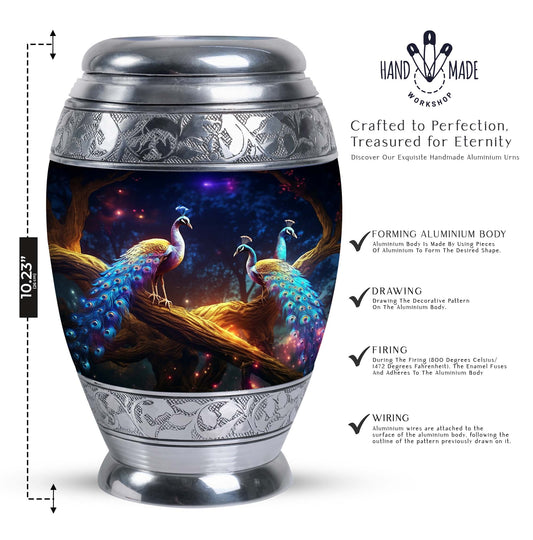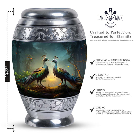 Our Peacock cremation urns for ashes are designed to honor life with elegance, dignity, and symbolism. The peacock, known for its radiant feathers and timeless beauty, represents renewal, immortality, and everlasting love, making these urns a meaningful tribute to a cherished soul.