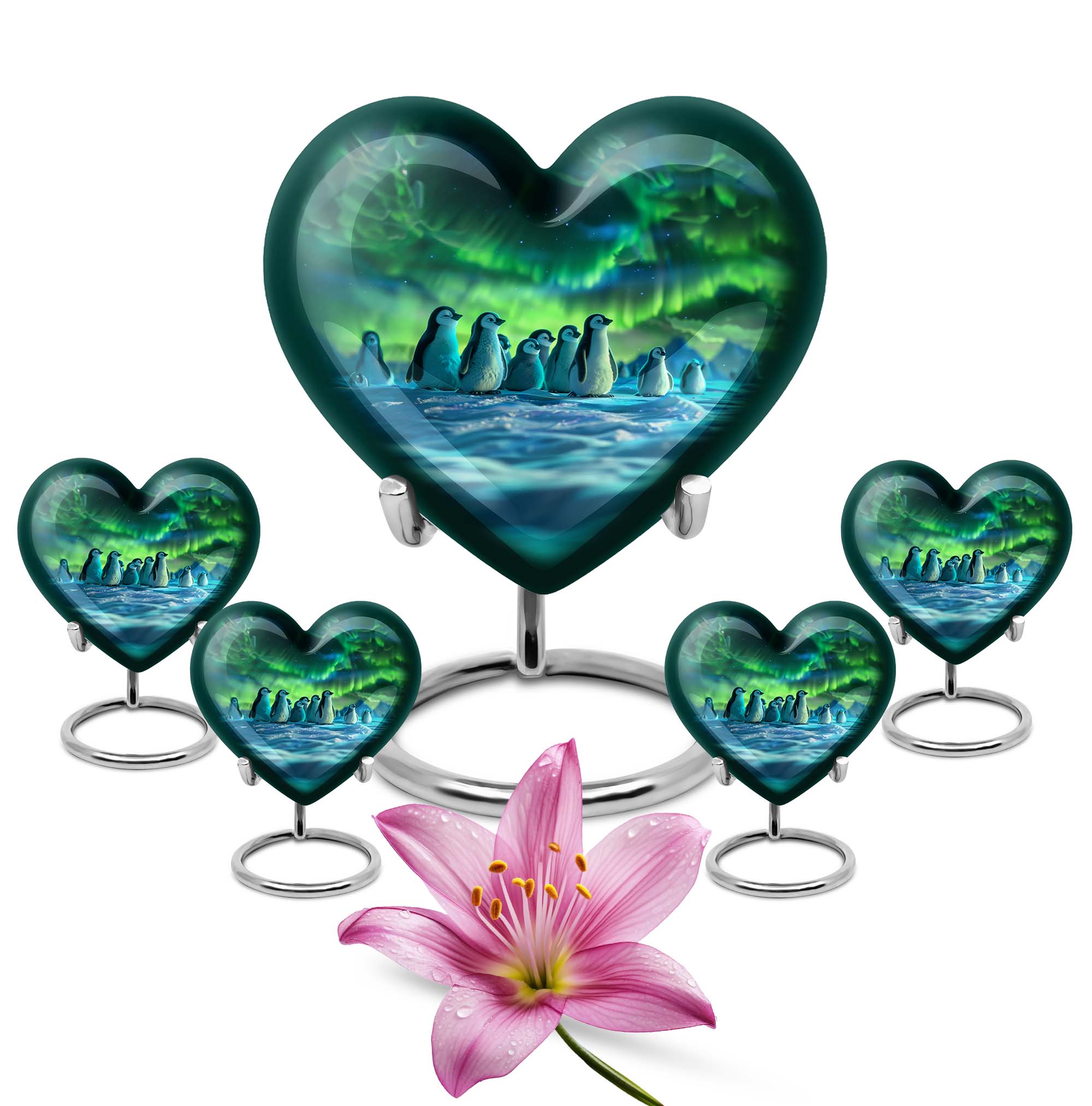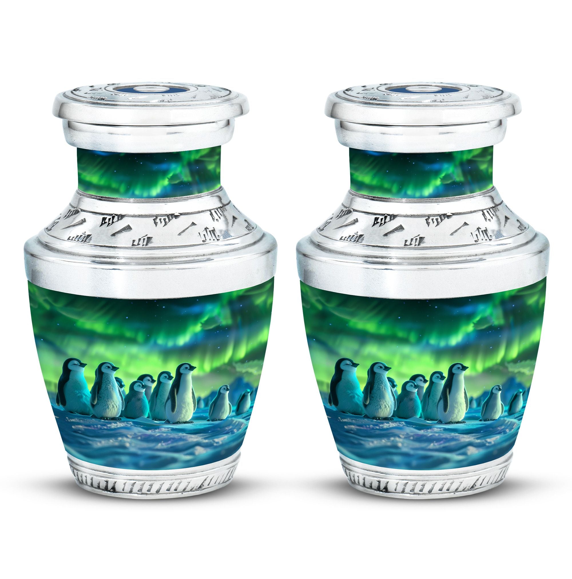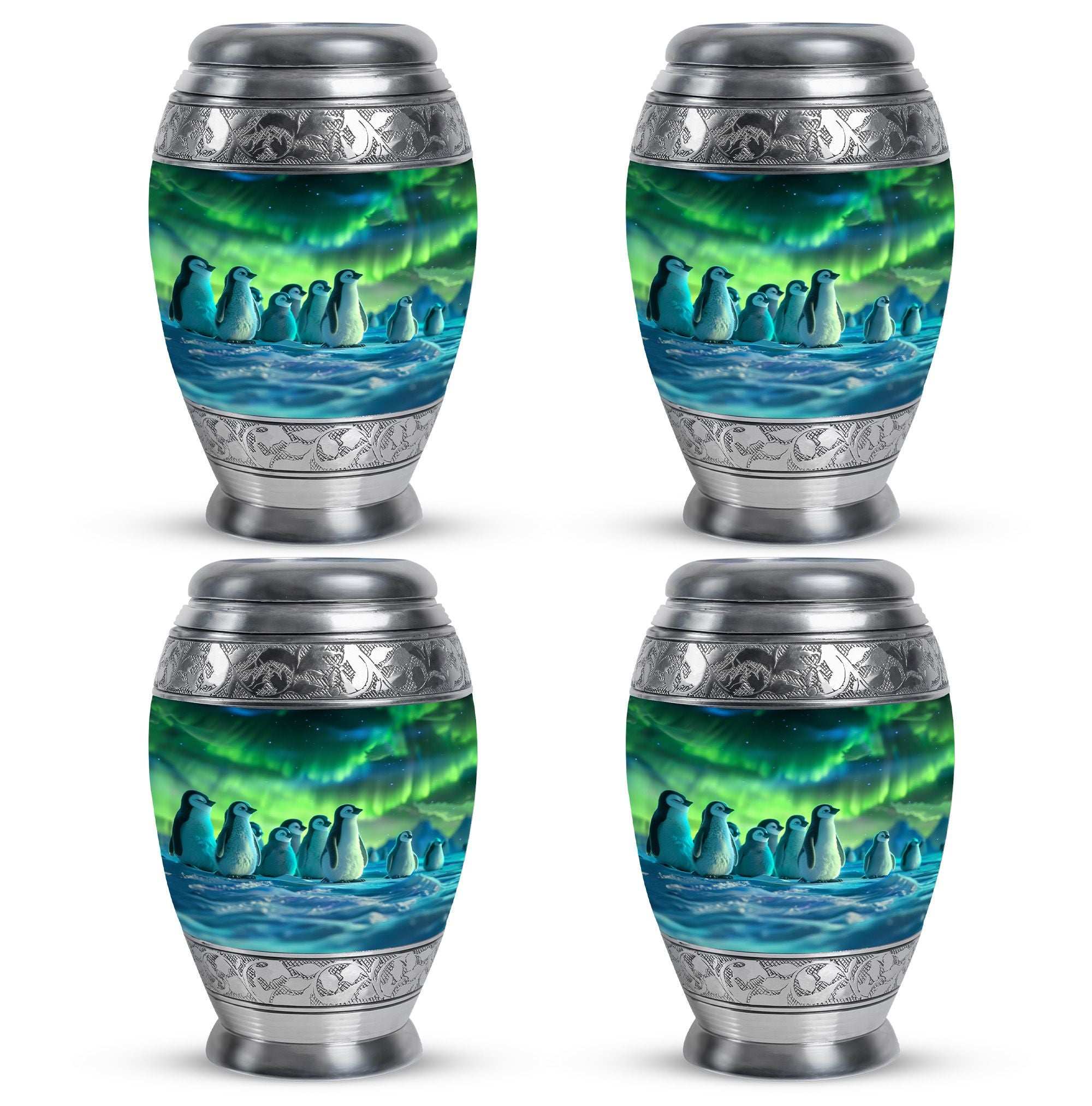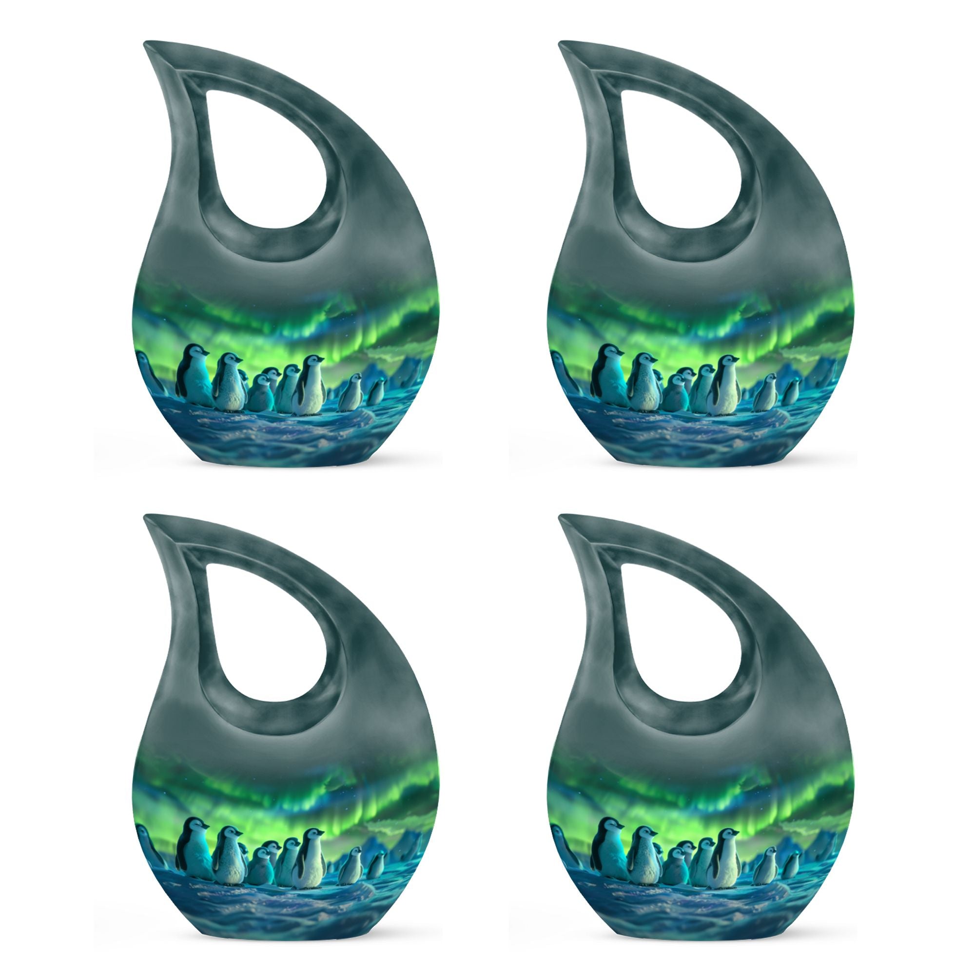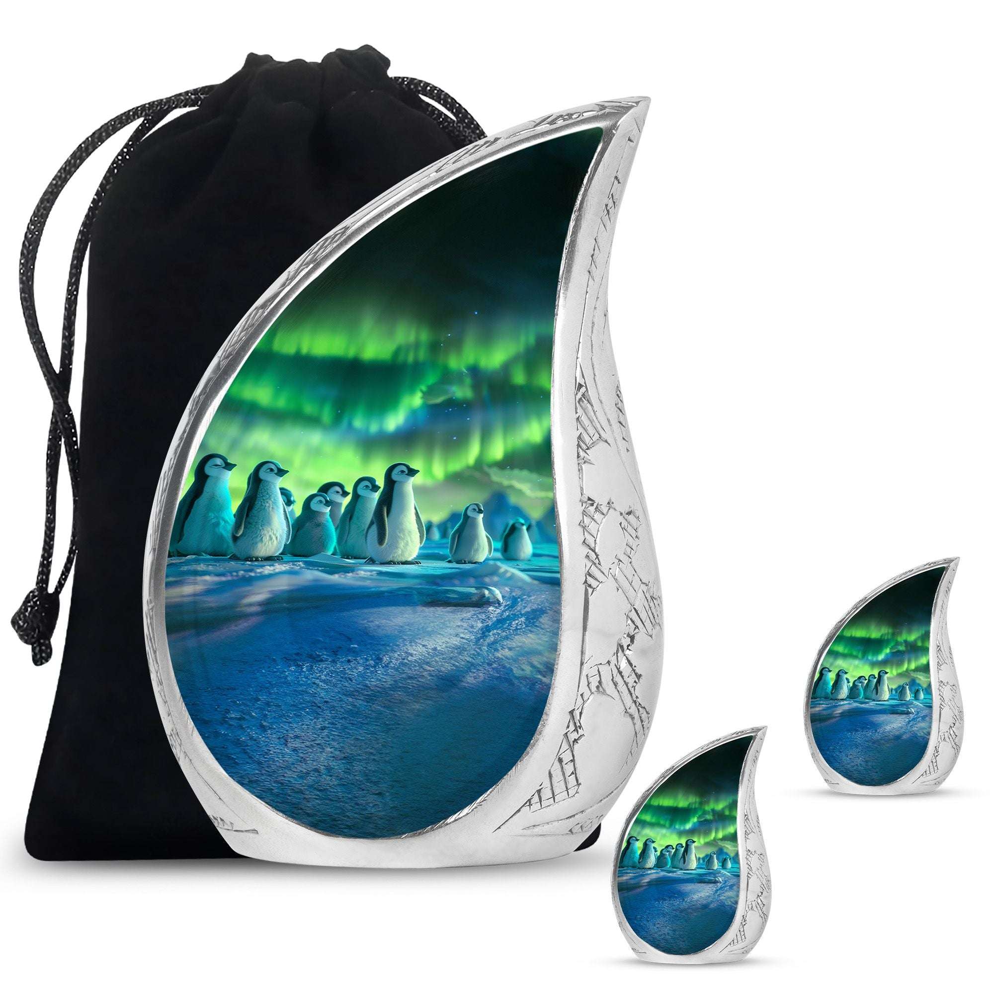 Crafted from durable aluminum, this large urn combines strength with artistry. Its penguin motif adds symbolism and beauty, making it one of the most unique urns for ashes available. The secure screw-top lid ensures ashes remain safe, while its 200-cubic-inch capacity makes it an ideal choice among adult funeral urns. Families seeking burial urns for ground or an urn for burial in ground will find this piece both functional and symbolic. For those wishing to share ashes, matching mini keepsake funeral urn or funeral keepsake urns can complement this large memorial urn.