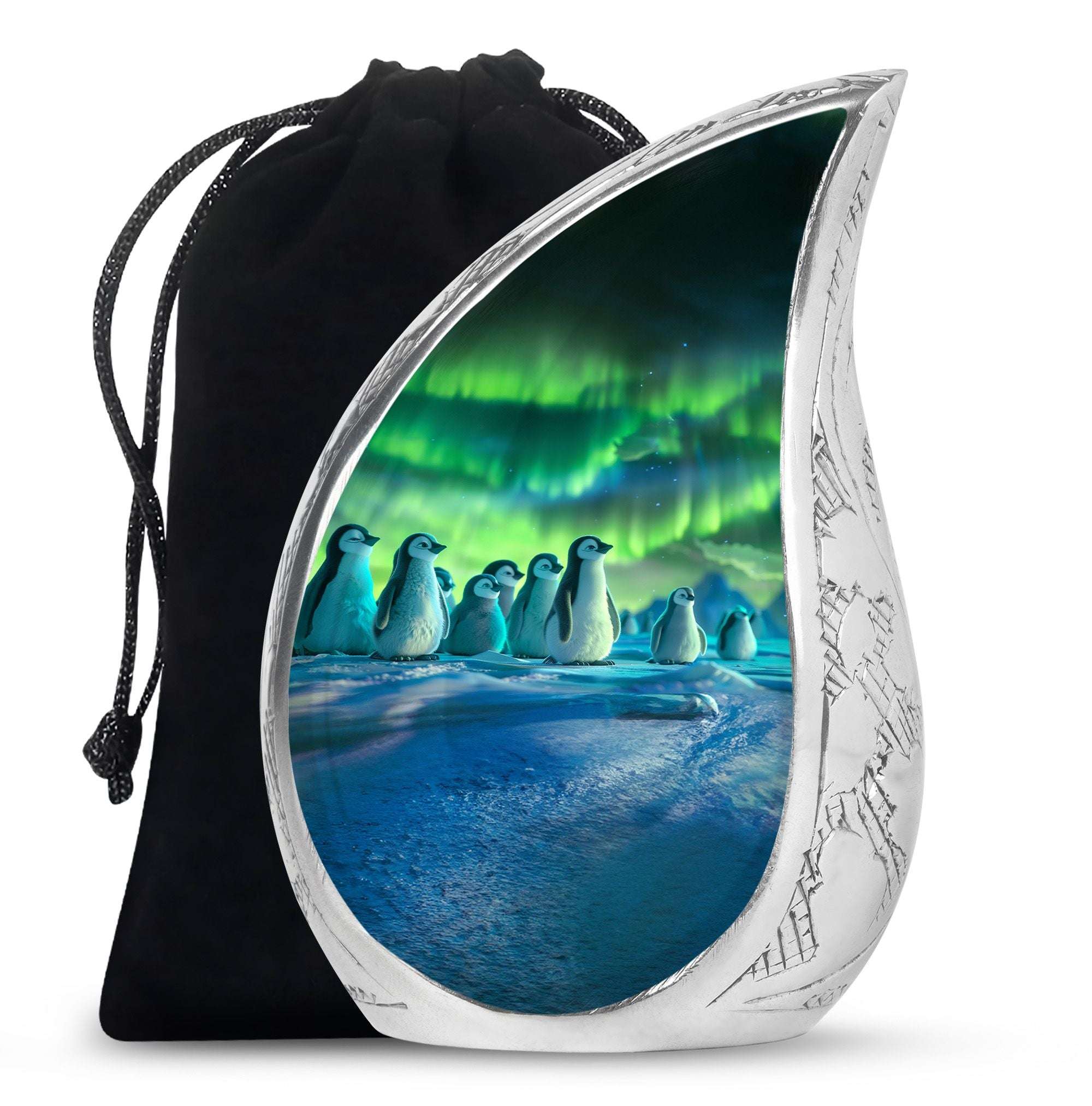 This penguin cremation urn is a meaningful way to honor the life of a loved one with dignity and care. Symbolizing loyalty, love, and togetherness, it provides families with a lasting memorial that brings peace and remembrance. Designed as a funeral urn adult, it is suitable for men or women and makes a unique urn for human ashes.