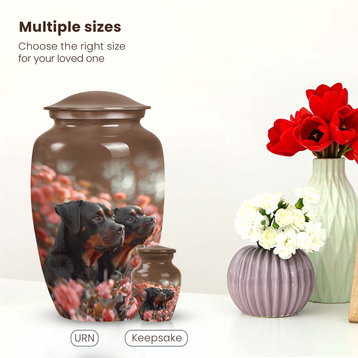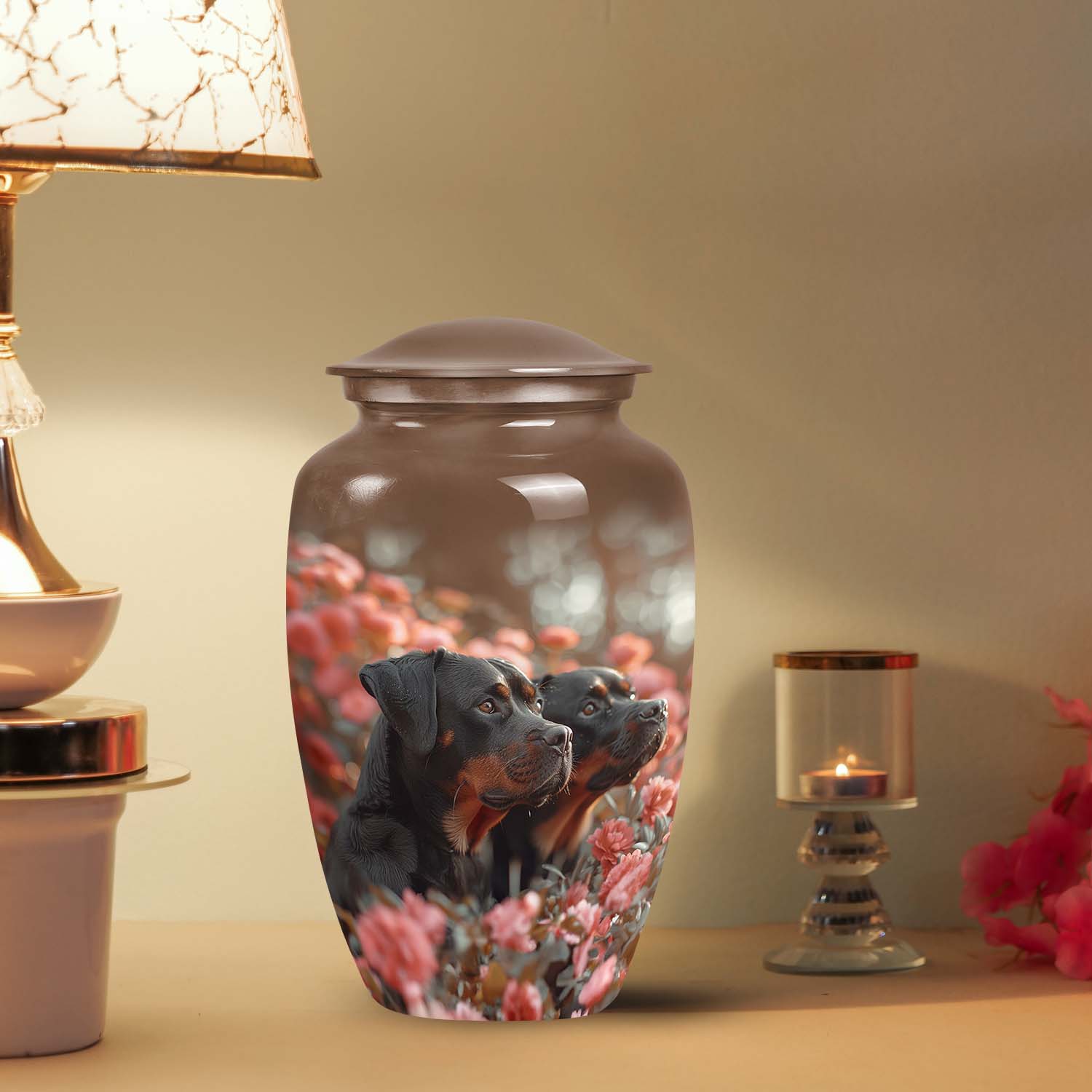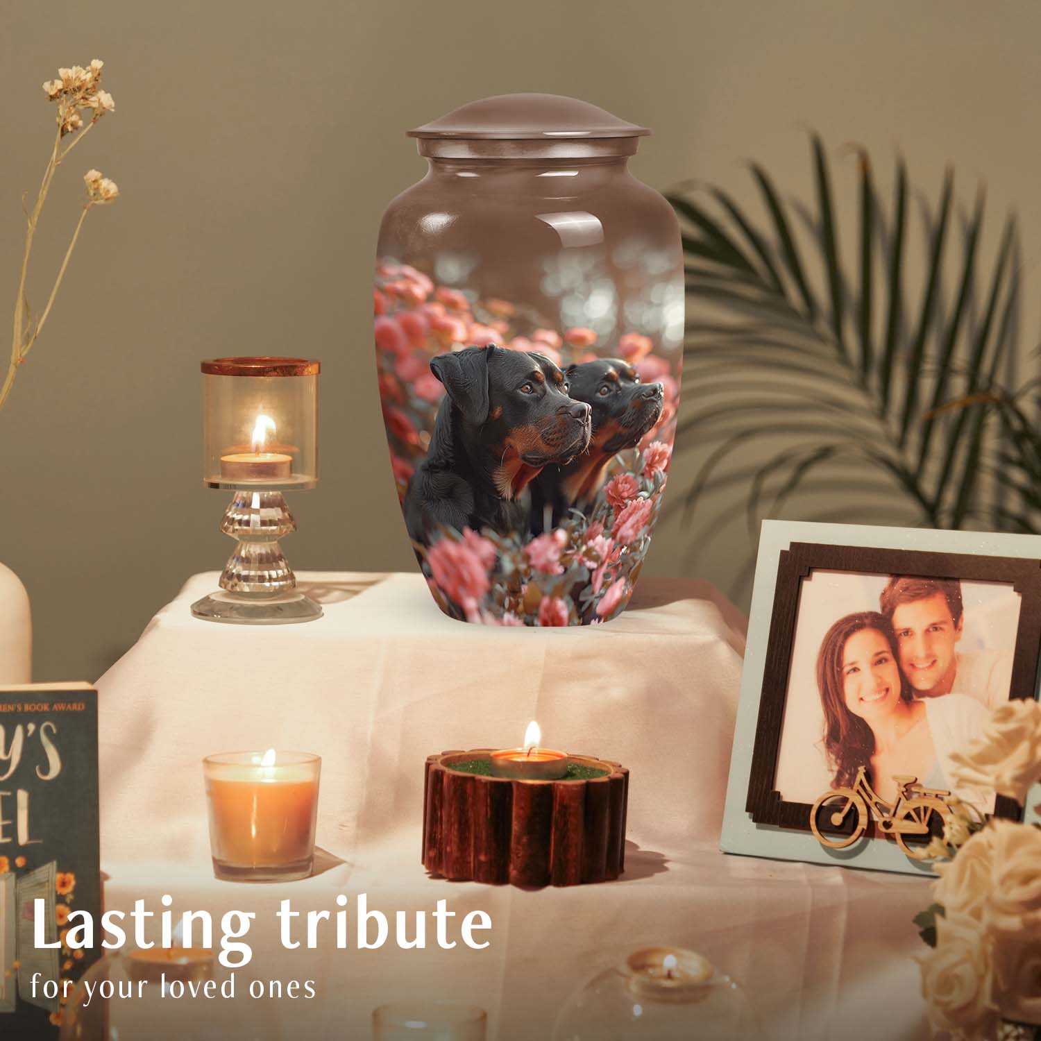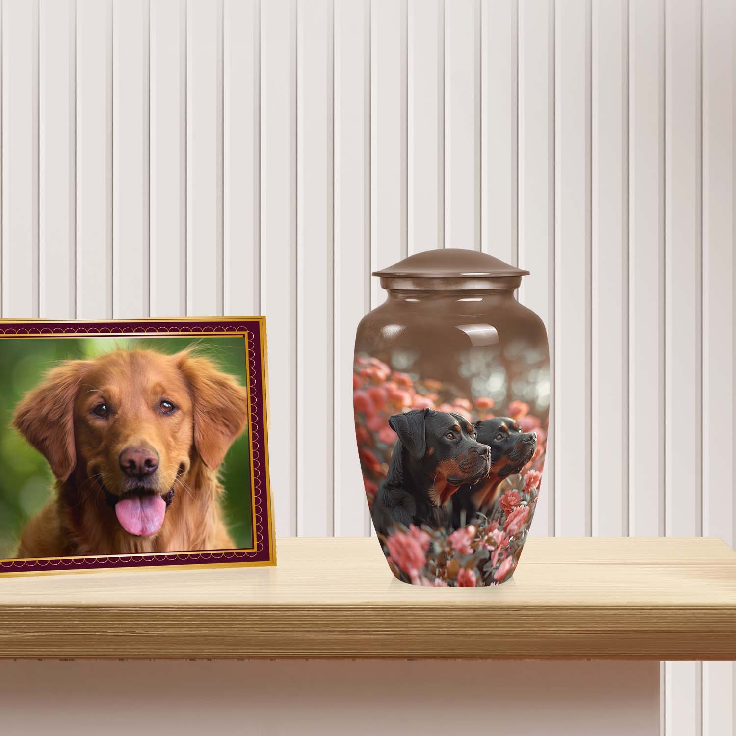 Two hearts, one lasting bond — this Two Rottweilers Dog Urn for Ashes – Brown Pet Memorial Keepsake beautifully commemorates the companionship shared between your loyal dogs. Crafted with compassion and care, it’s part of the Perfect Memorials Pet Urns collection and serves as a timeless expression of love and devotion.