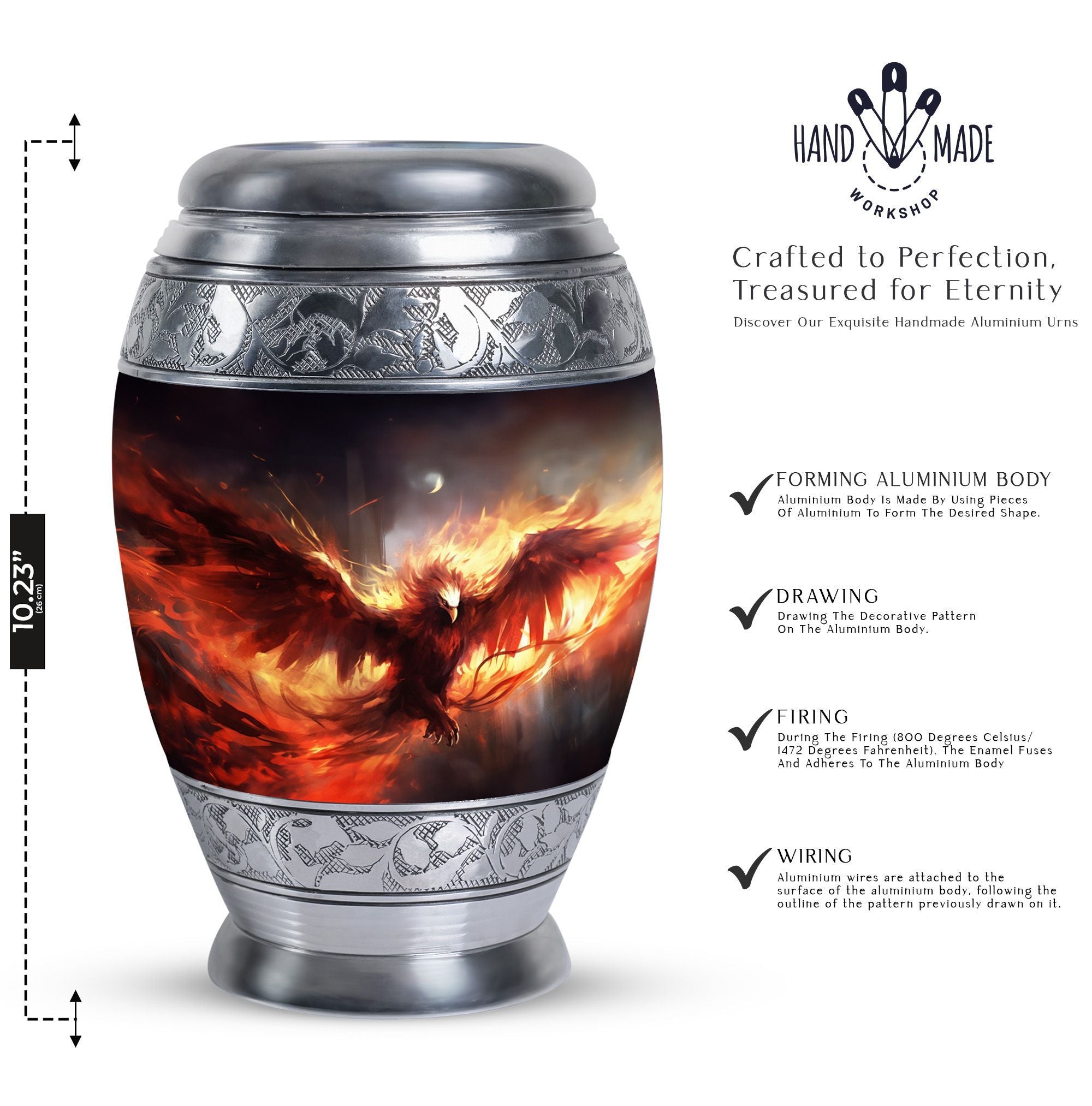 A phoenix symbolizes hope, transformation, and eternal life—making this urn a heartfelt tribute. Its bold design and thoughtful craftsmanship ensure your loved one’s memory is honored with grace and dignity through this remarkable large urn for human ashes.