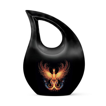Crafted from premium-grade aluminum, this urn showcases the majestic phoenix bird—a symbol of immortality and renewal—against a sleek black finish. Skilled artisans polish every surface to a mirror-like shine, giving it both sophistication and depth. Ideal as a men urns for human ashes or urn for ashes adult female, it combines emotional beauty with practical strength. The design’s detailing and sturdy structure make it suitable for display at home, burial, or memorial services.