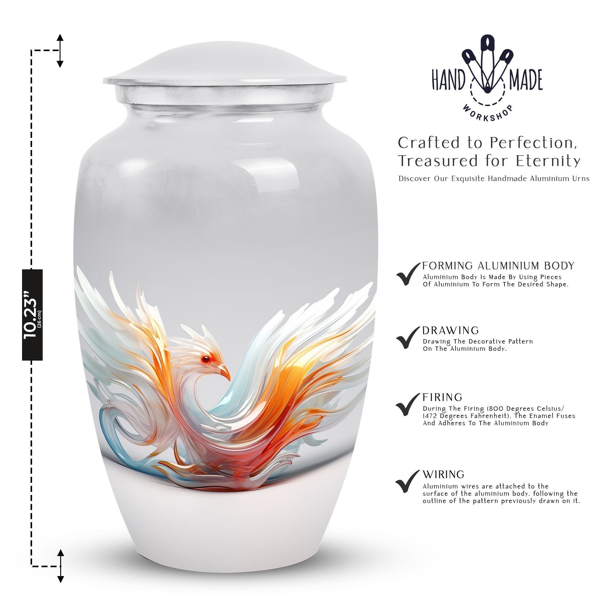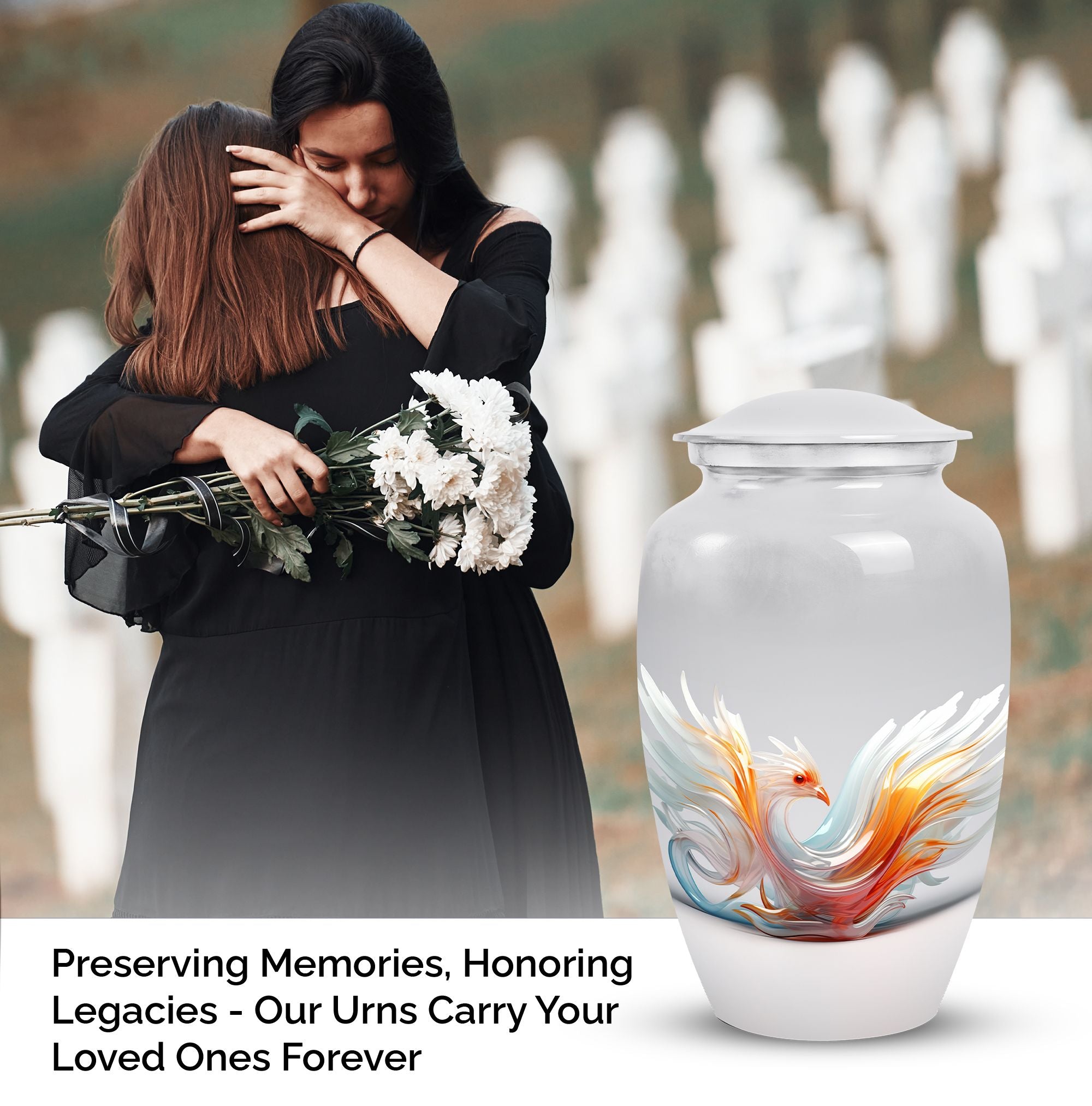 Honor your beloved kin with our Phoenix Urn, meticulously designed as an enduring tribute to a cherished life. Carefully crafted with a palpable sense of reverence, this funerary urn bears the weight of your bereavement with a solemn dignity that perfectly memorializes your departed. This masterfully created vessel is not just an Urn for Dad; its universal appeal ensures it's suitable for anyone who has touched your life in significant ways. Each of our adult urns is a beacon of memory, enshrining the ashes of your loved one in a tangible manifestation of love and respect. Invite an aura of commemoration and healing into your household with this poignant memorial ceremonial piece. Unique, carefully designed, and sensitive, the Phoenix Urn from Perfect Memorials makes an impactful statement. Boasting an unmatched level of craftsmanship, each urn becomes a symbol of life and love, keeping the essence of those we hold dear alive in our hearts. Stand out in your vivid memorialization journey, both grounding and uplifting.