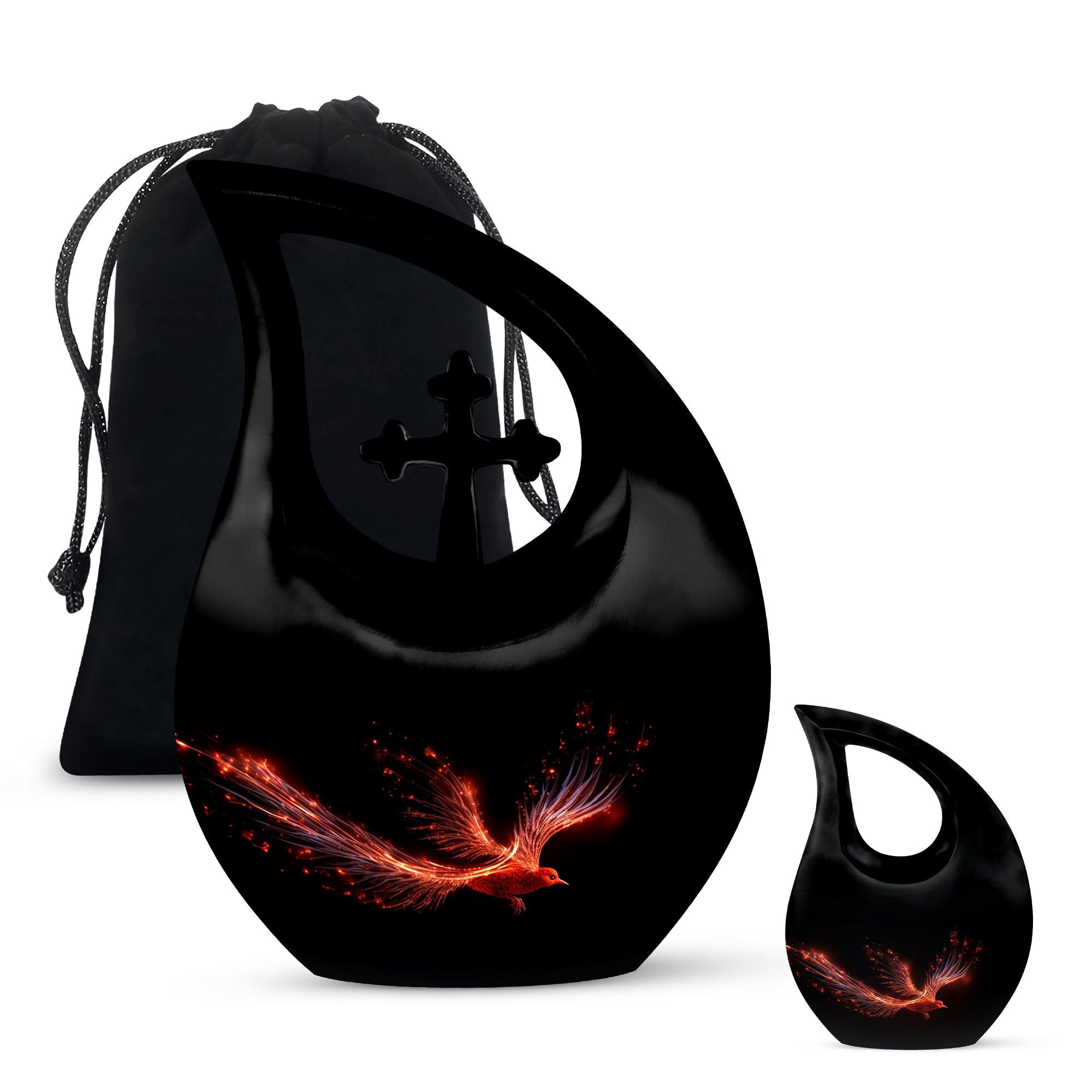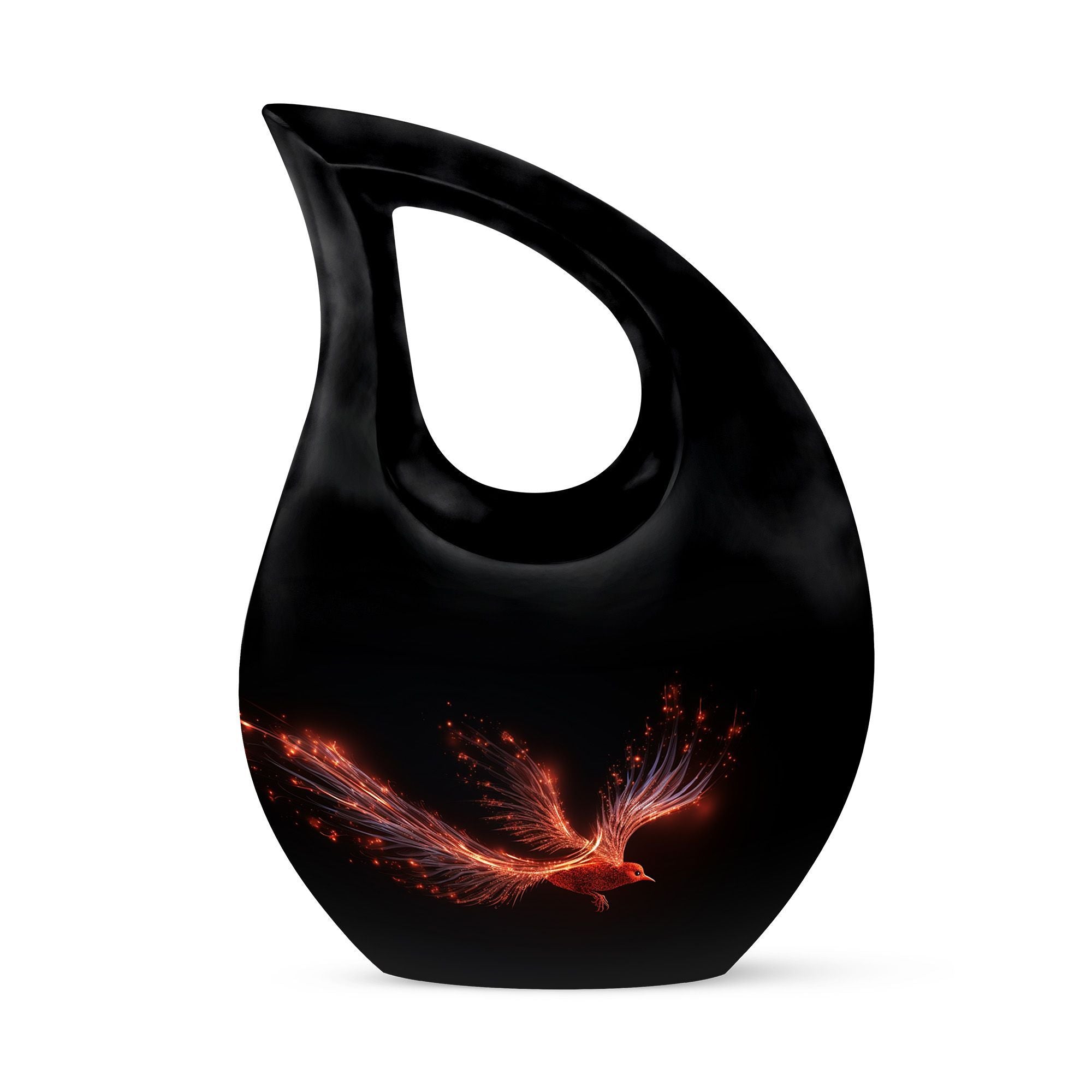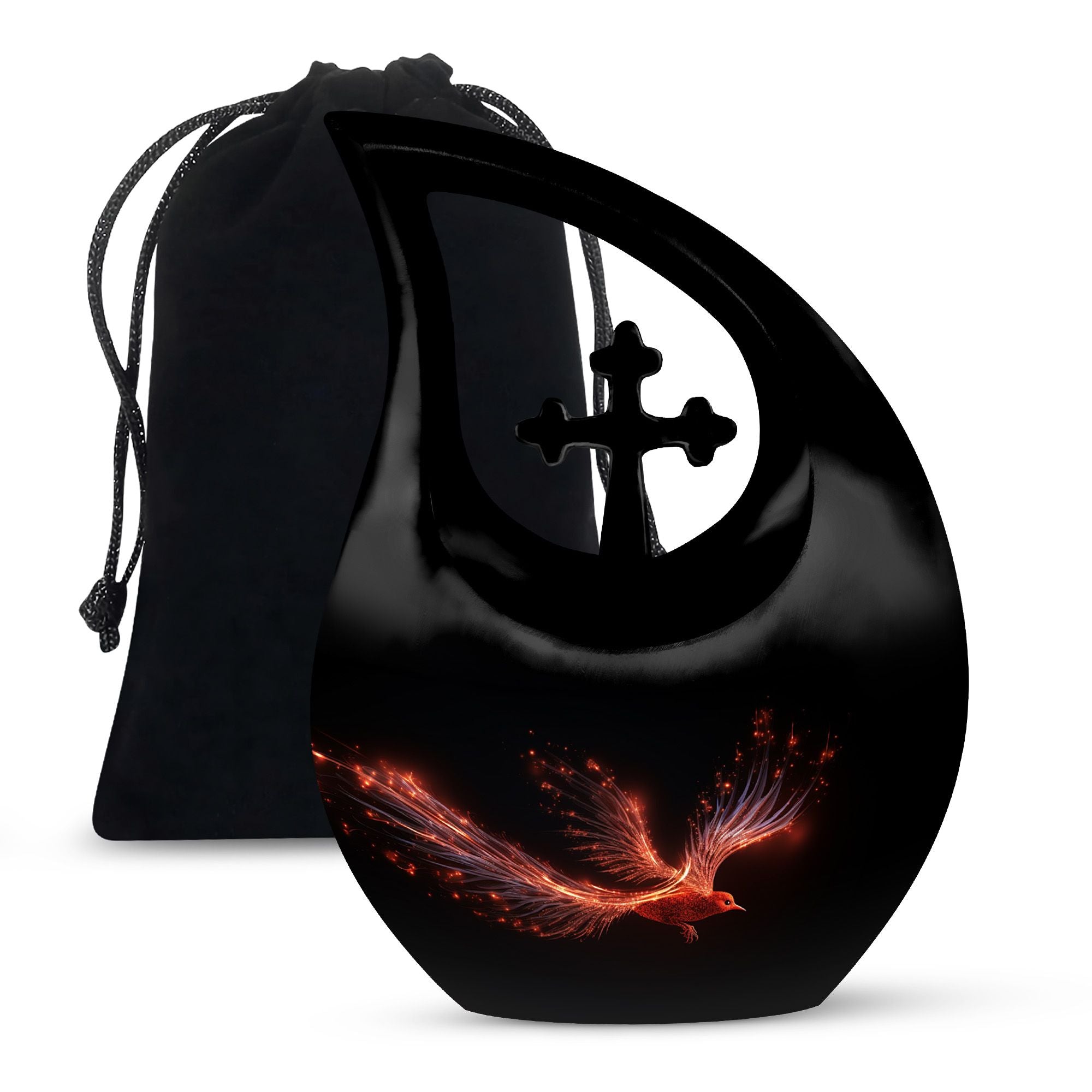Celebrate the eternal spirit of your loved one with this Black Teardrop Funeral Urn, beautifully adorned with a glowing phoenix — a powerful emblem of hope, rebirth, and everlasting love. Designed with grace and compassion, this urn offers a peaceful resting place for your beloved, making it a timeless choice among cremation urns for human ashes adult black and cremations urns for adults.