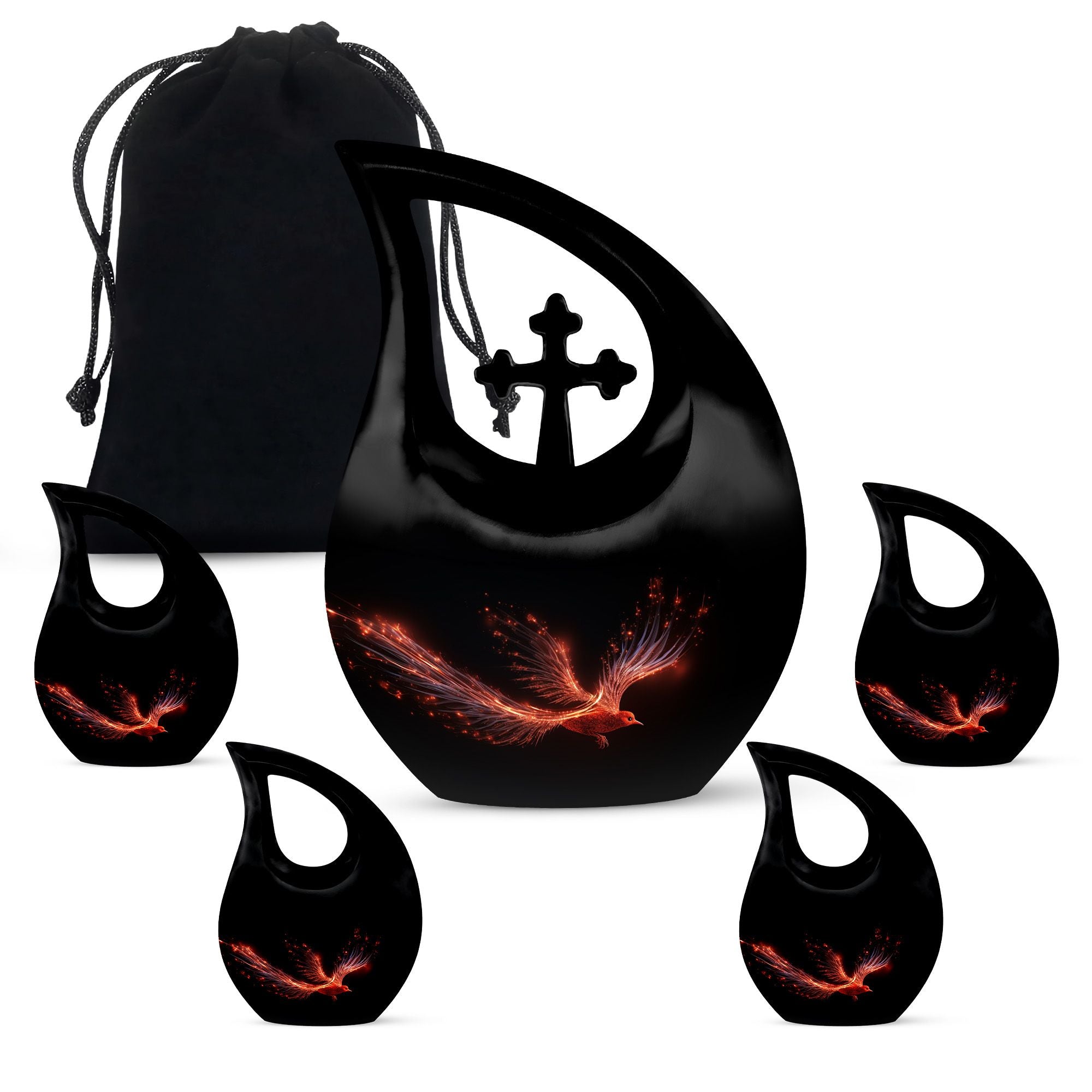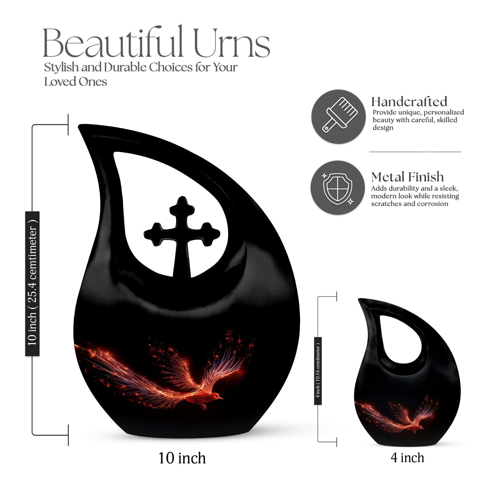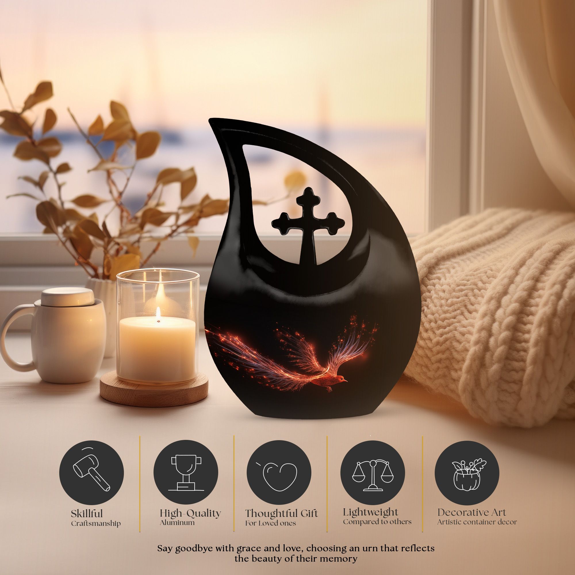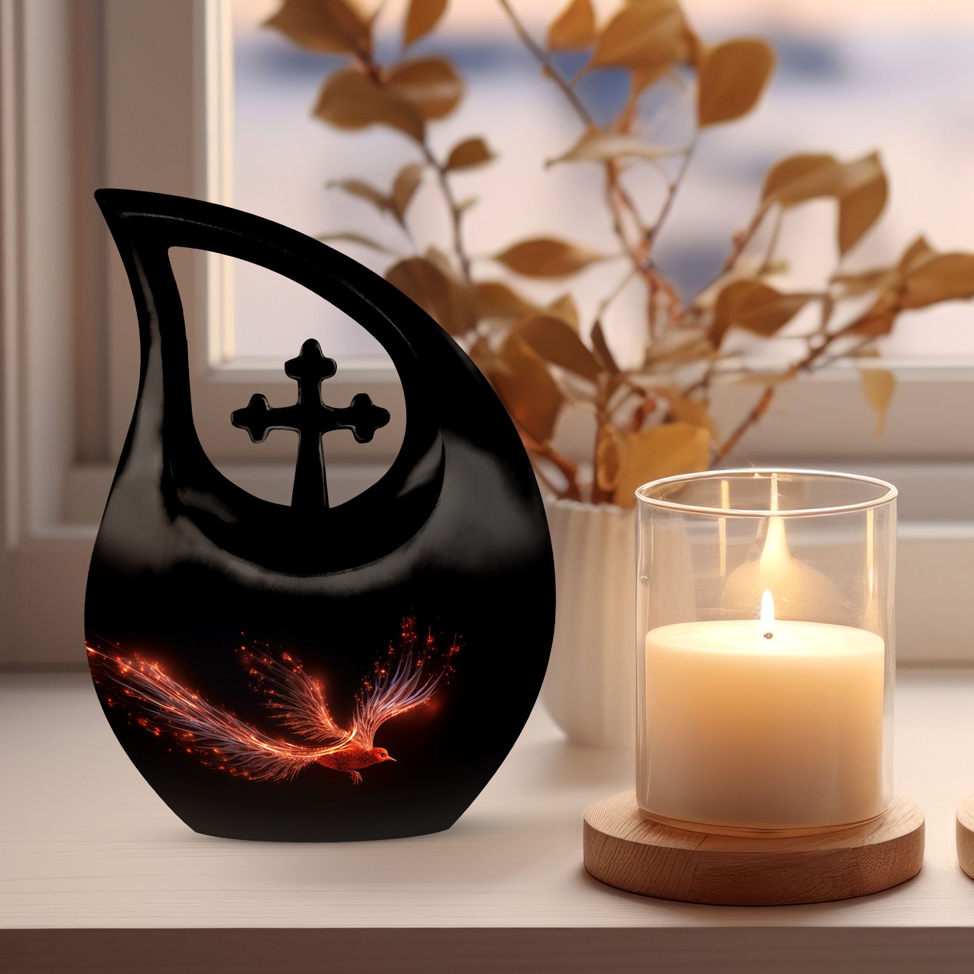 Celebrate the eternal spirit of your loved one with this Black Teardrop Funeral Urn, beautifully adorned with a glowing phoenix — a powerful emblem of hope, rebirth, and everlasting love. Designed with grace and compassion, this urn offers a peaceful resting place for your beloved, making it a timeless choice among cremation urns for human ashes adult black and cremations urns for adults.