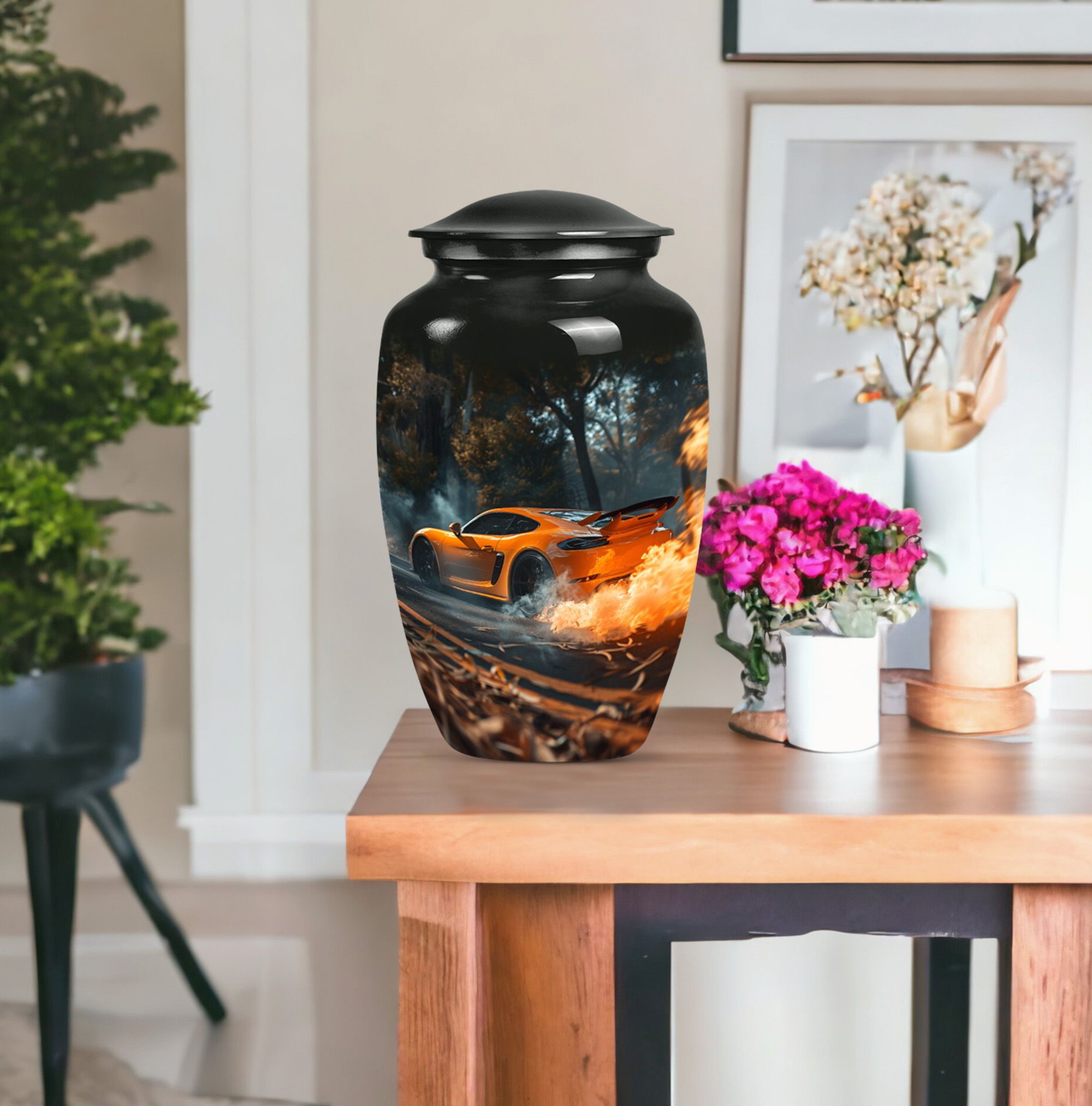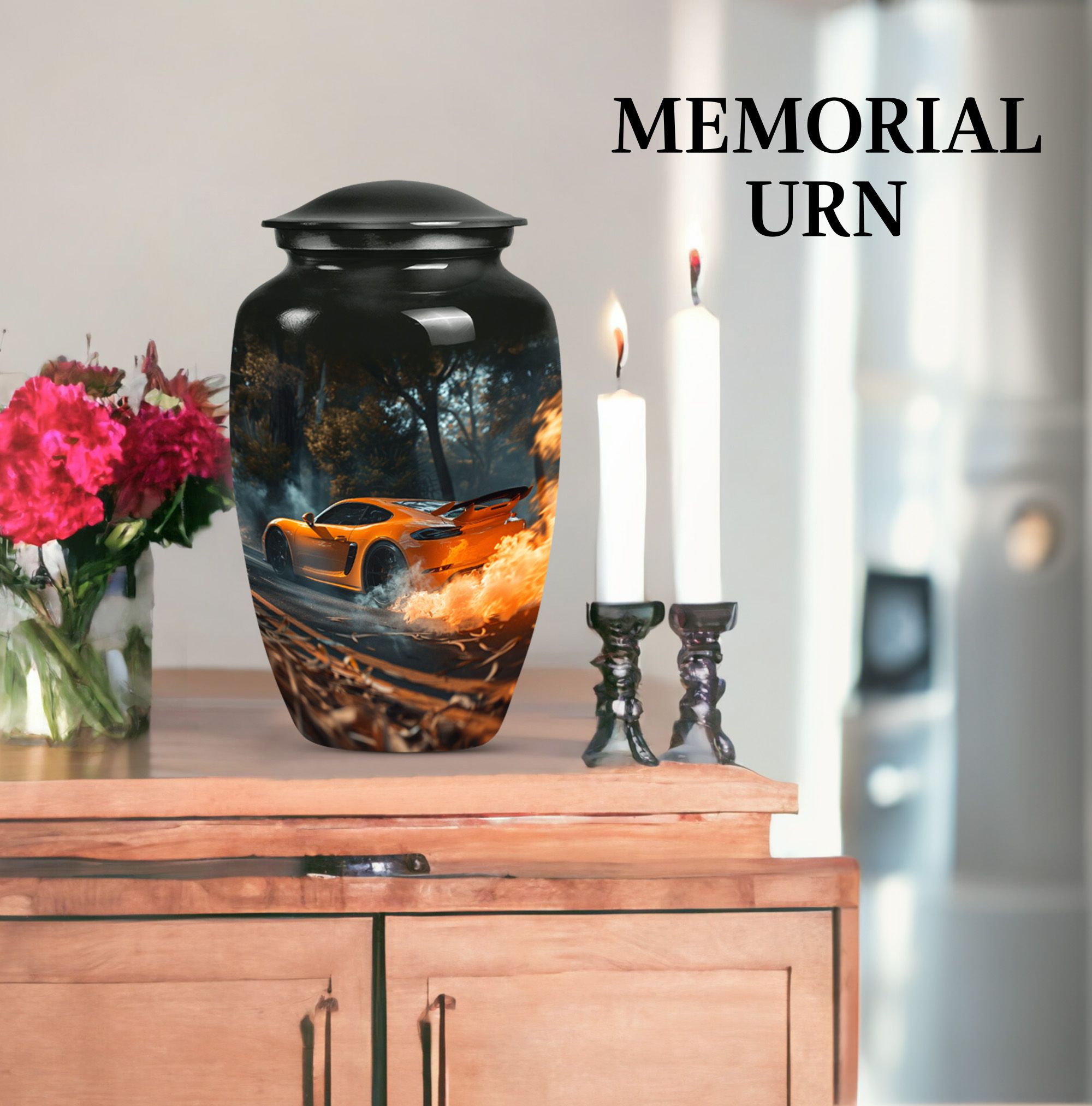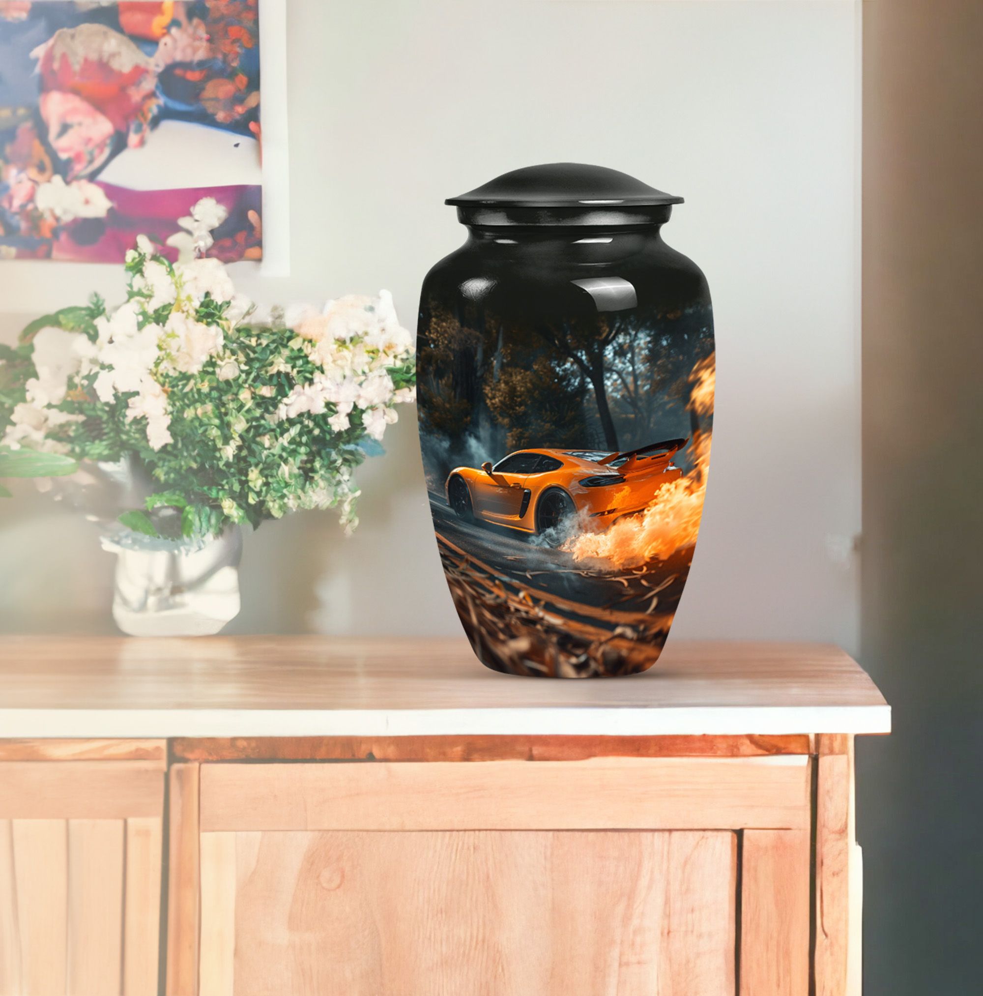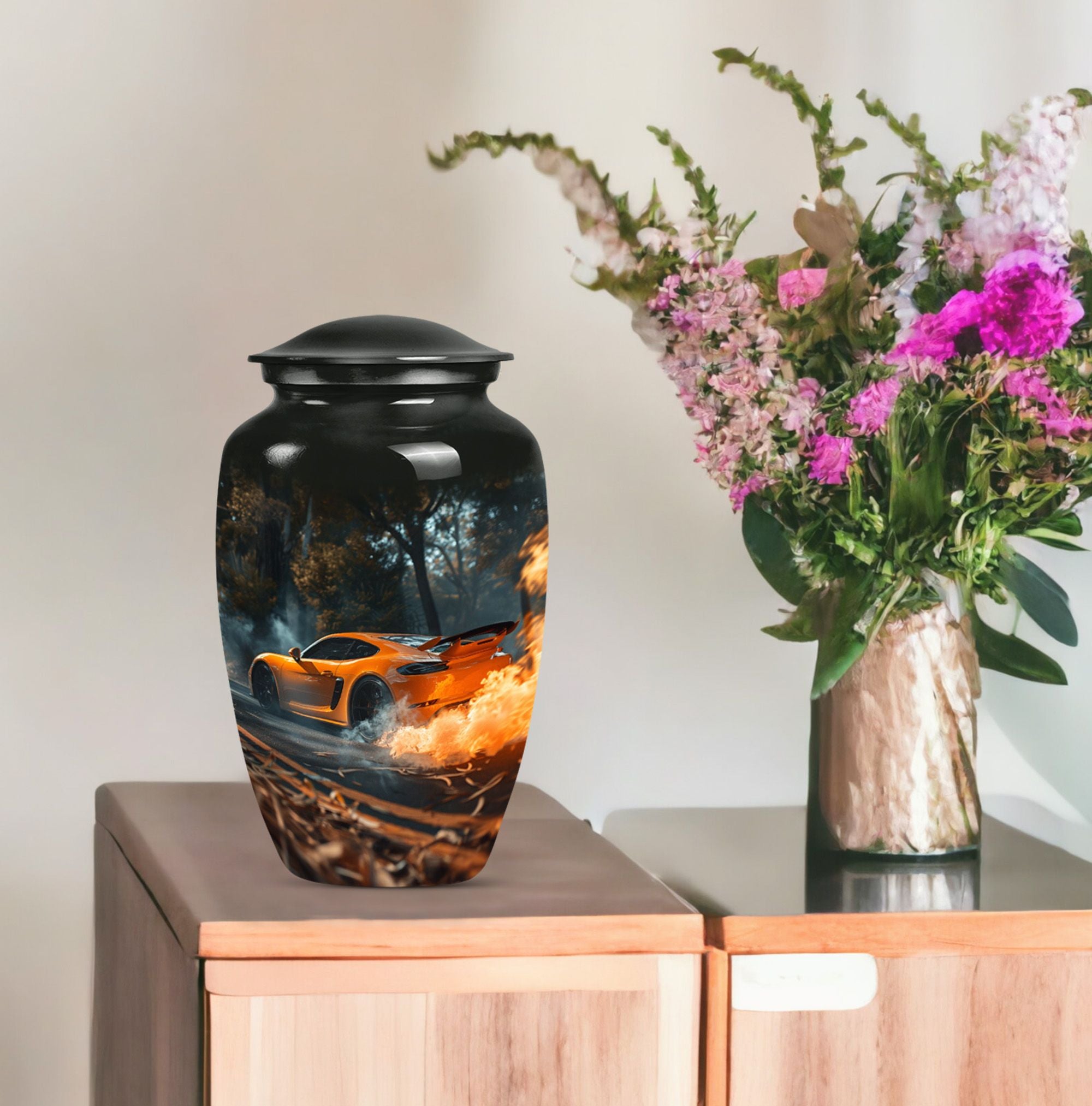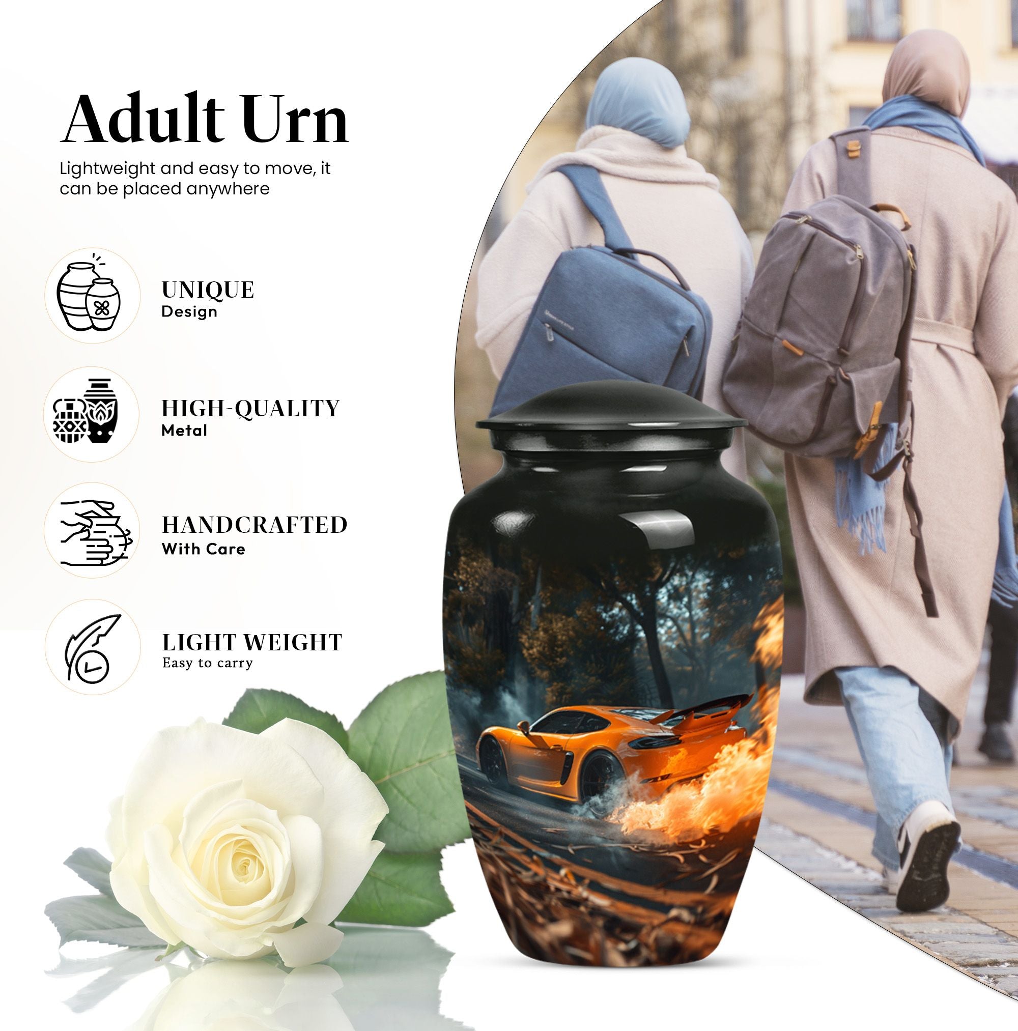 Presenting a unique find in our religious and ceremonial memorial ceremony supplies— the large, 10-inch Classic Urn, ingeniously crafted for those in search of an exceptional 'cremation urn.' This high-quality aluminium Car Urn is meticulously designed with the ethereal theme of a butterfly, giving it an incomparable touch. As a cremation urn tailored for men, it offers ample space with a capacity of 200 cubic inches, ample to preserve human ashes securely. Weighing 3.3 pounds with dimensions standing at 10 inches in height, its durability is undeniable. Outstanding amongst other large urns, it comes well-packed in a velvet pouch for safe containment of cherished ashes. Going a step ahead, this cremation urn provides an option for personalization— now engrave names to add that personal touch, making it a truly meaningful keepsake. This uniquely crafted urn for human ashes adult men is not merely an urn but a timeless tribute capturing the essence of your loved one.